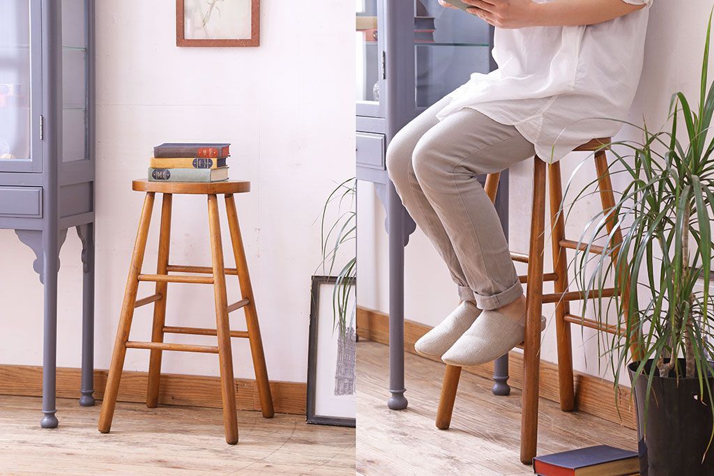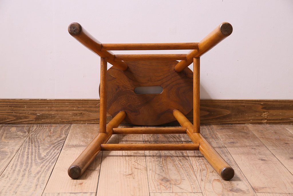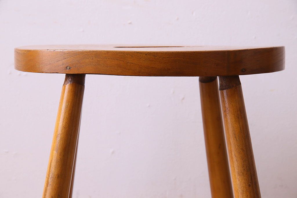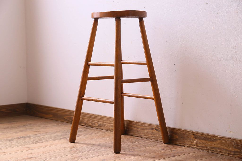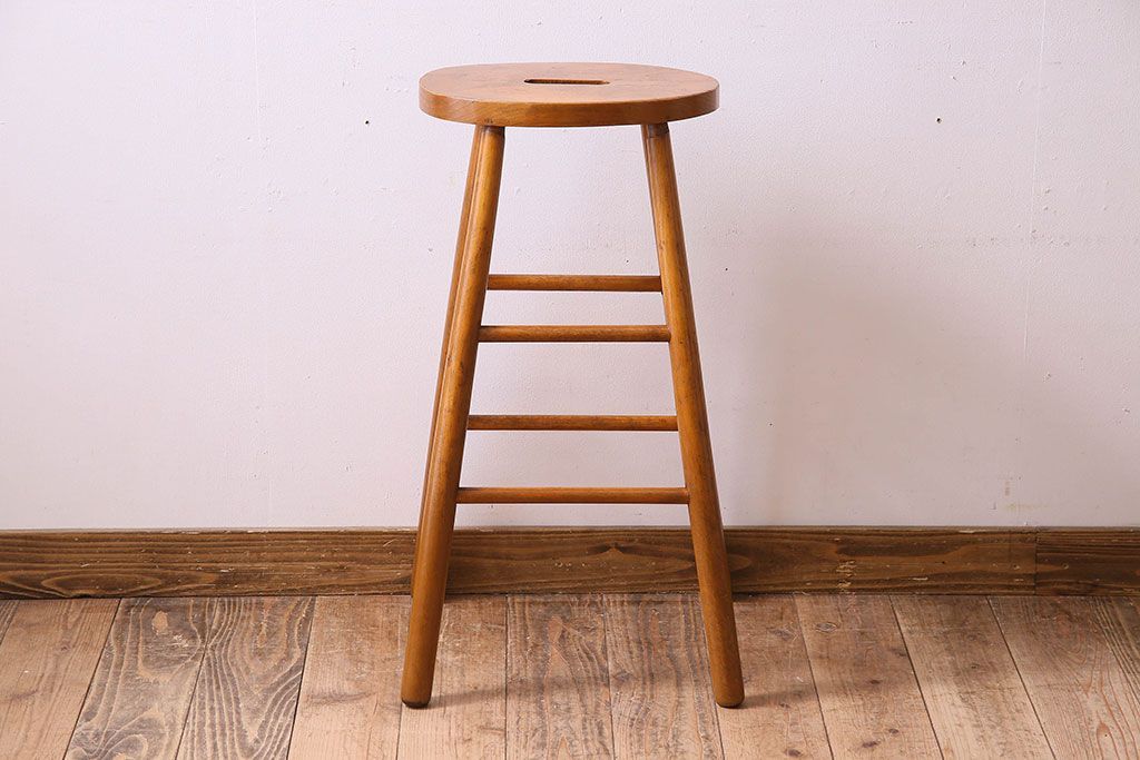 アンティーク家具 イギリスアンティーク ビーチ・ニレ材 ナチュラルなハイスツール(丸椅子、イス、チェア)