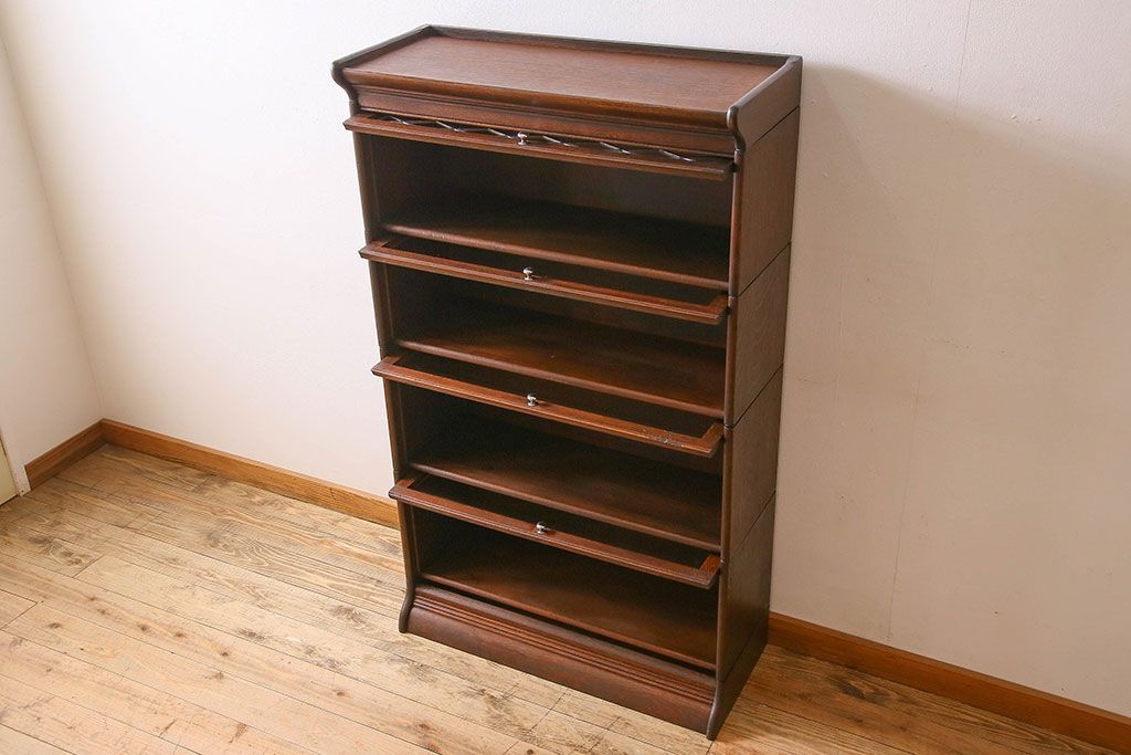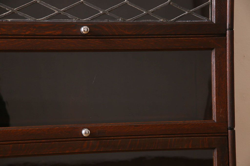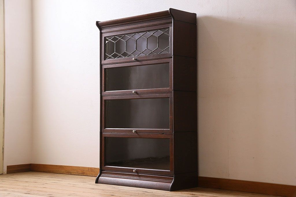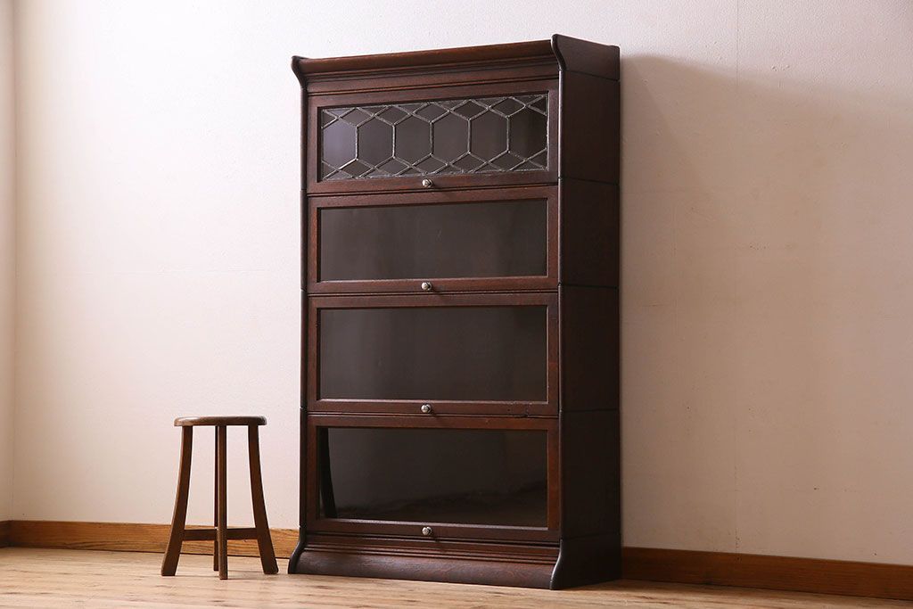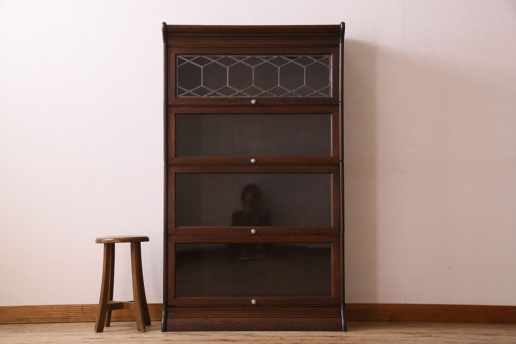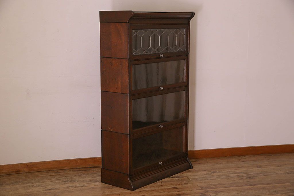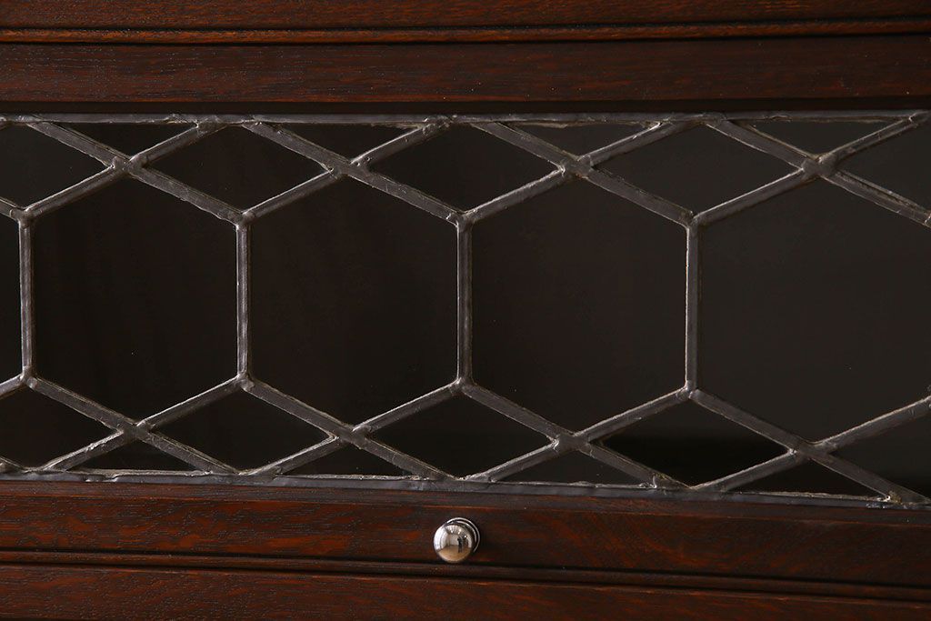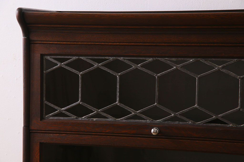 アンティーク家具 オーク材 ステンドガラスがおしゃれなスタッキングブックケース(本箱)