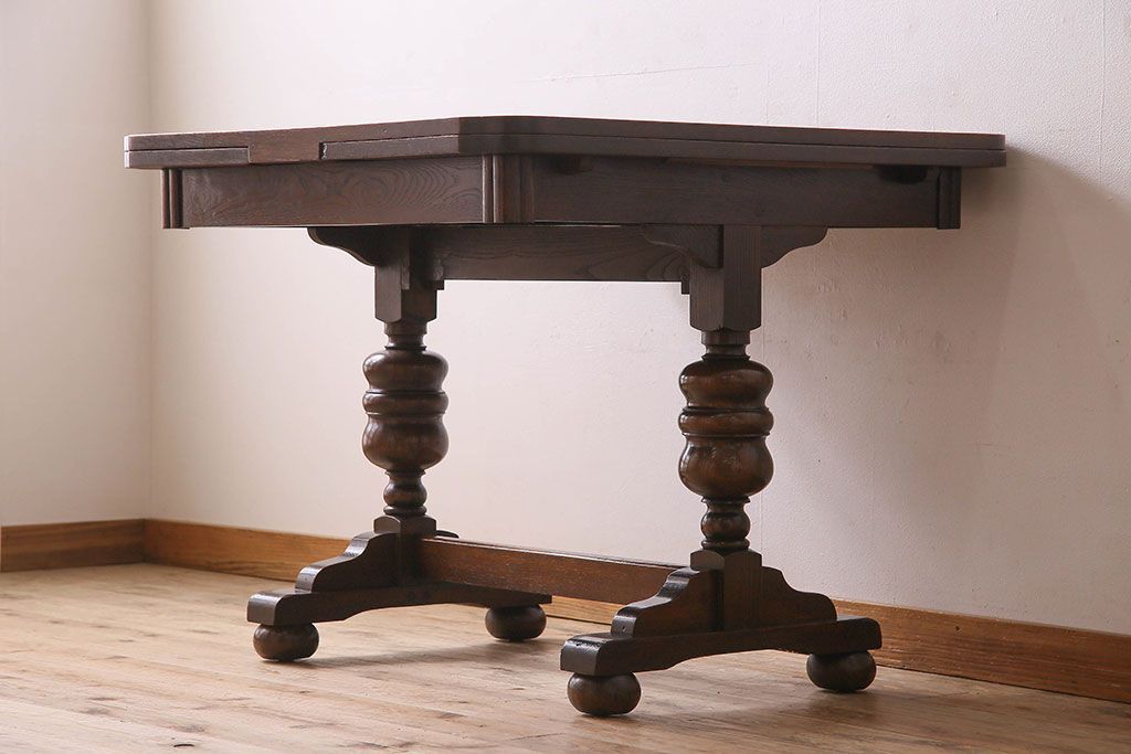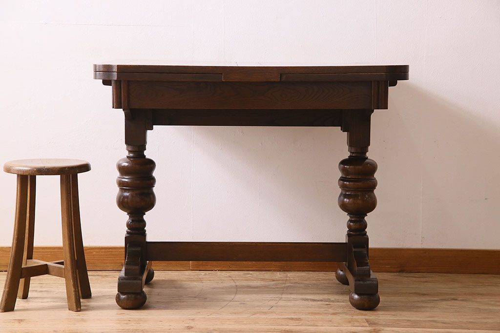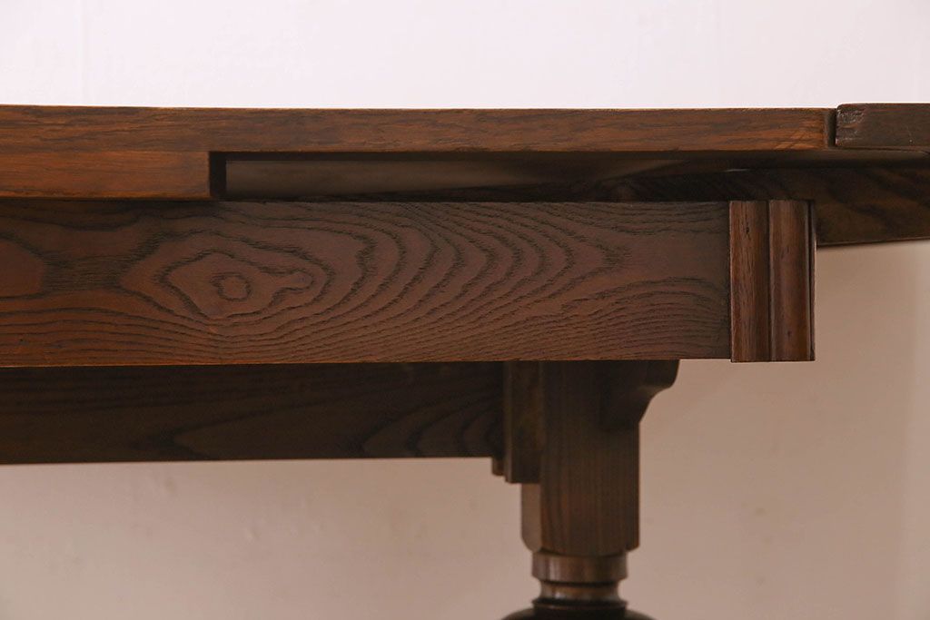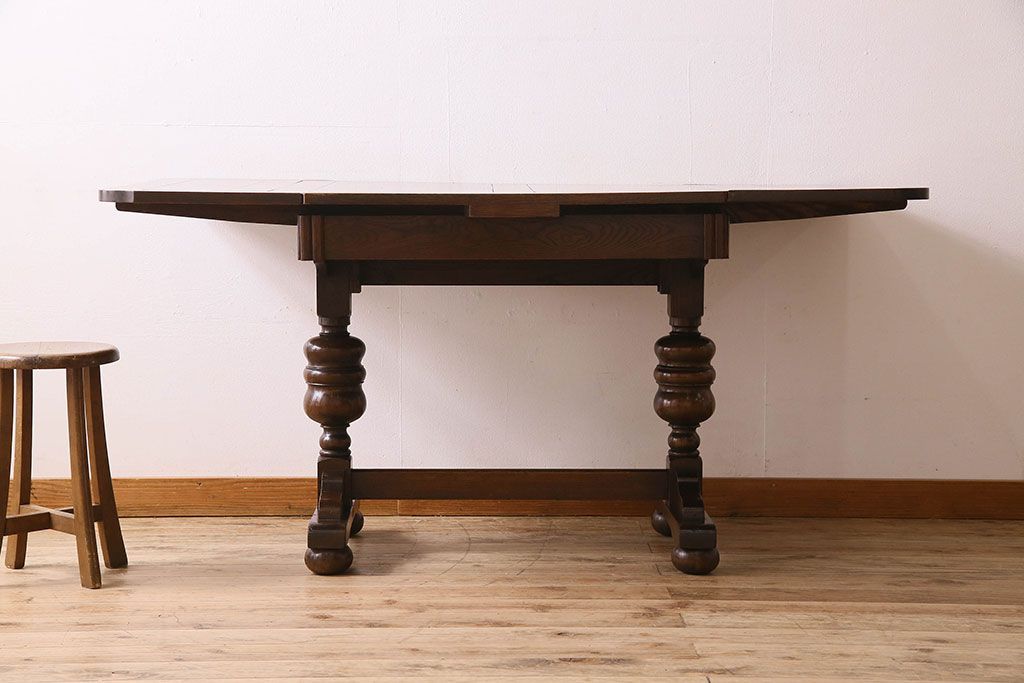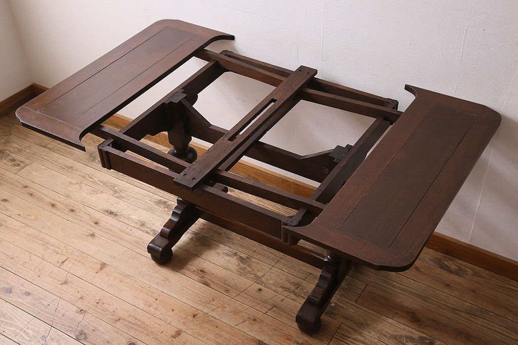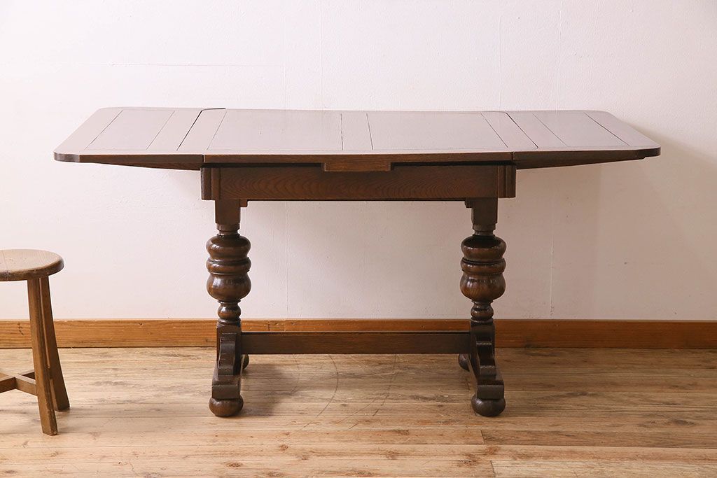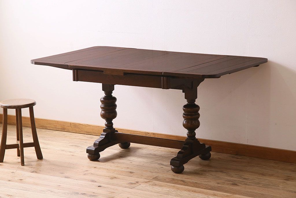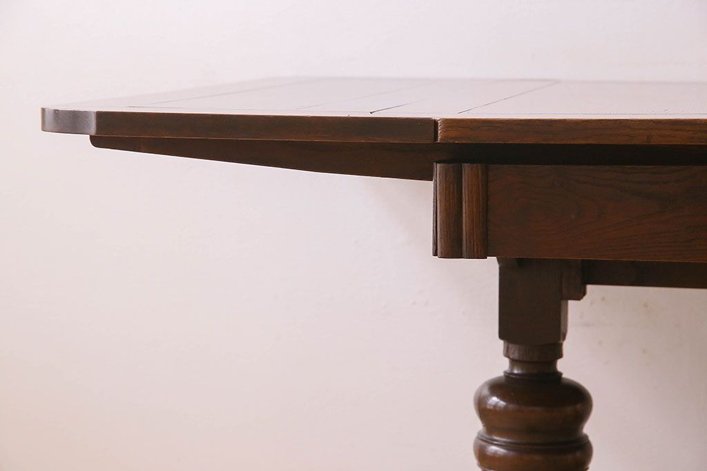 アンティーク家具 イギリスアンティーク オーク材 ドローリーフテーブル(エクステンションテーブル)
