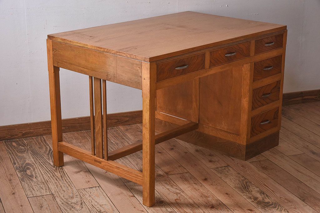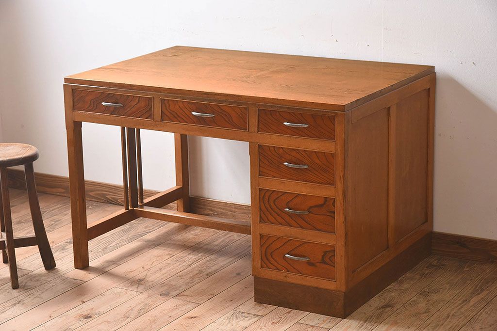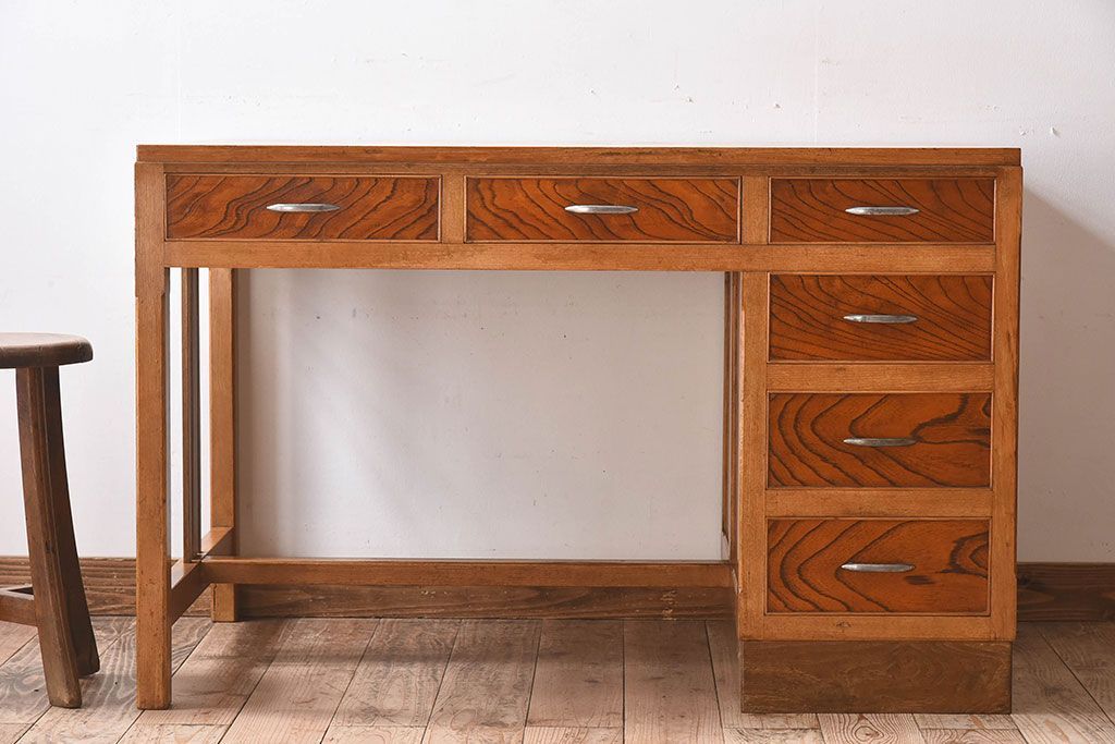 ラフジュ工房> デスク> 片袖机・両袖机 > アンティーク家具 和製アンティーク 栗材 上品な佇まいの片袖机
