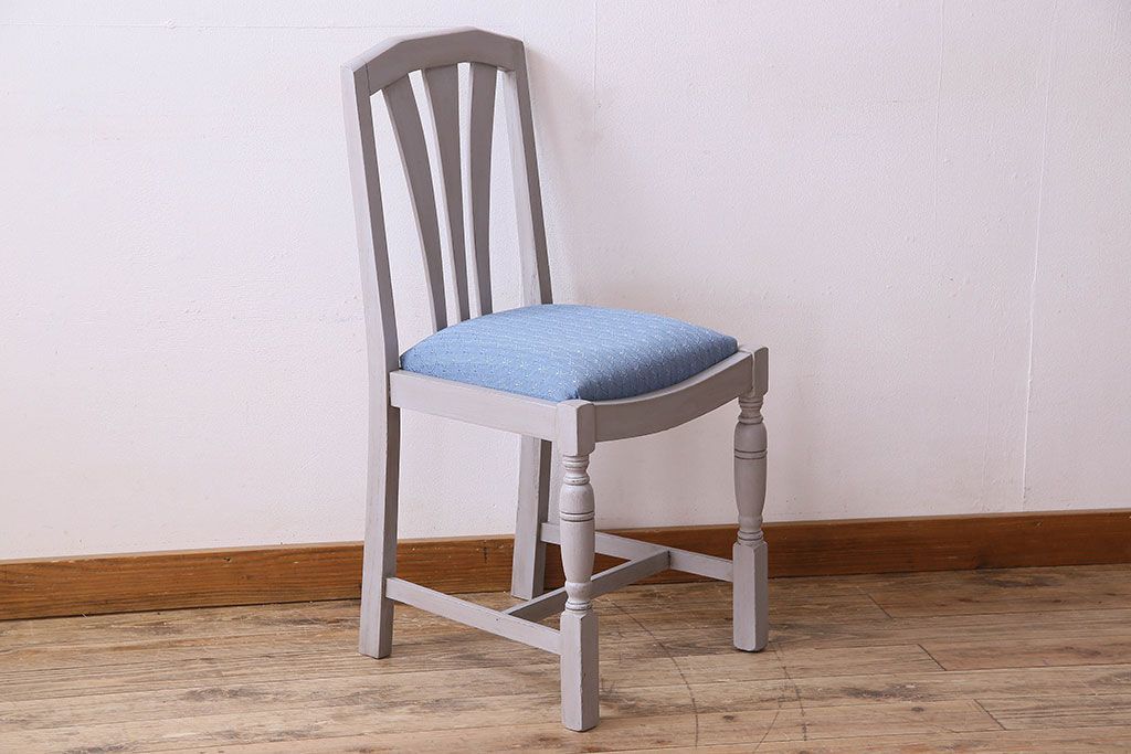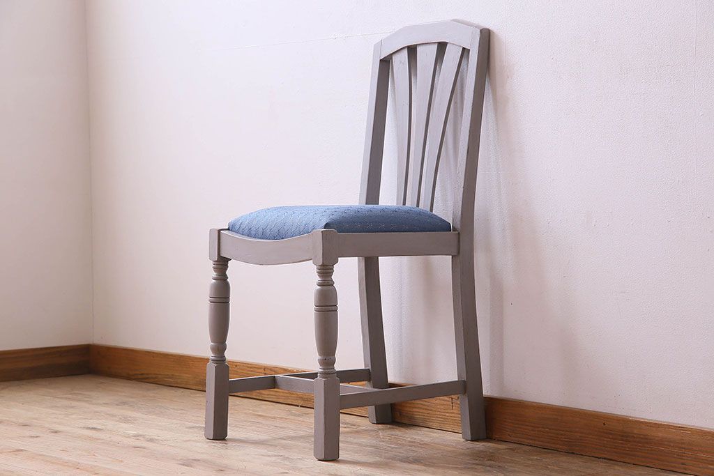 アンティーク家具 ペイント オーク材 シックなイギリスアンティークチェア(2)