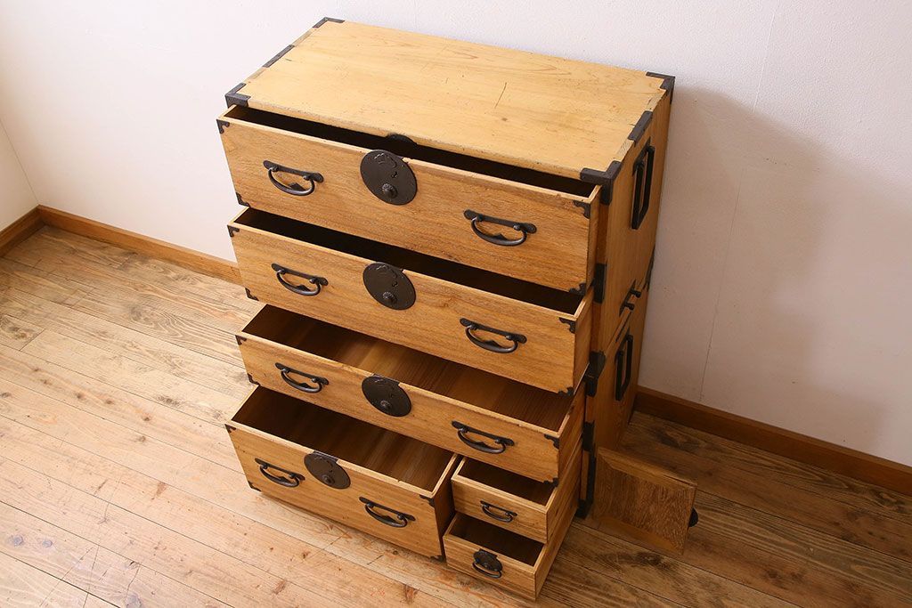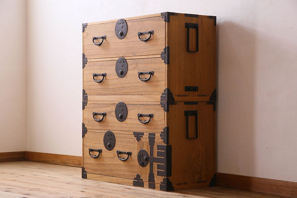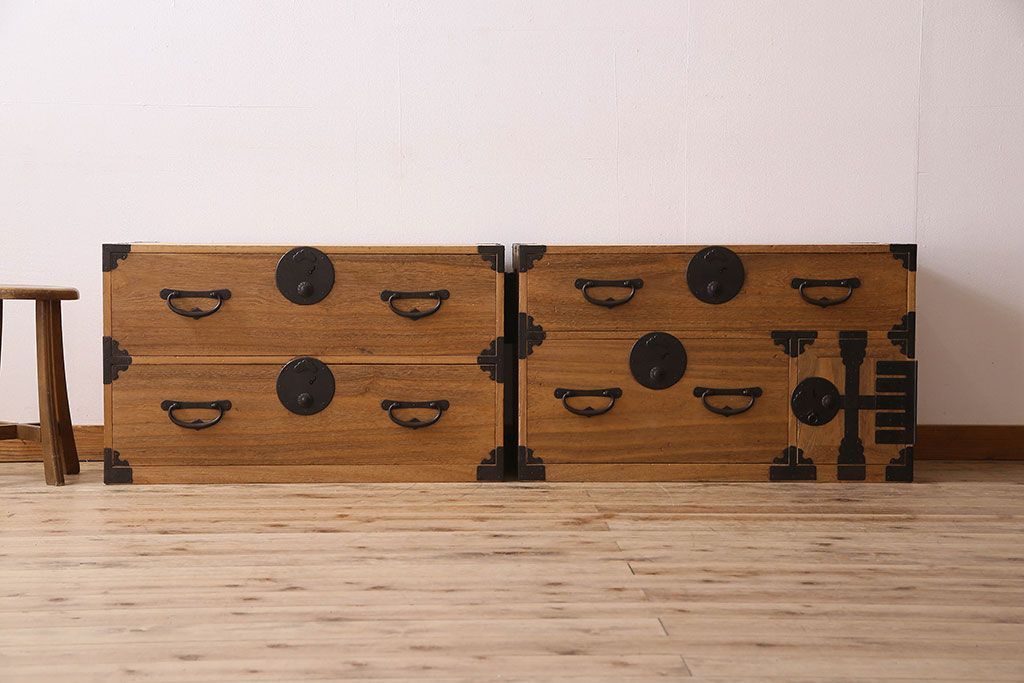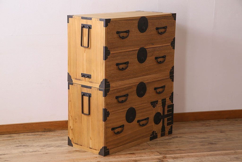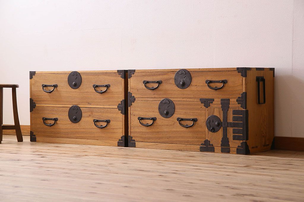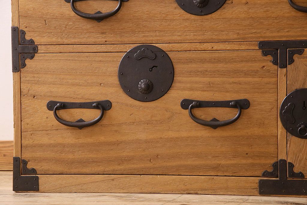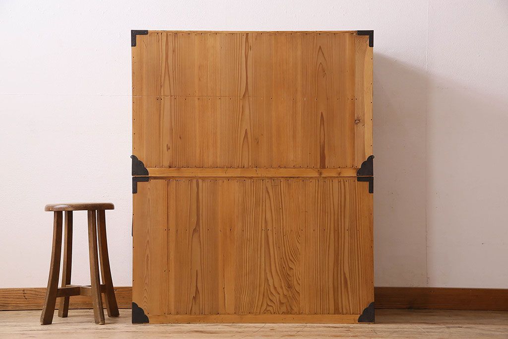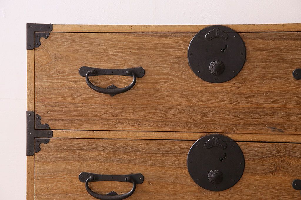 ラフジュ工房> 和箪笥 > アンティーク家具 和製アンティーク 前面桐材製の小振りな重ね二本松箪笥(衣装箪笥、桐箪笥、桐たんす)