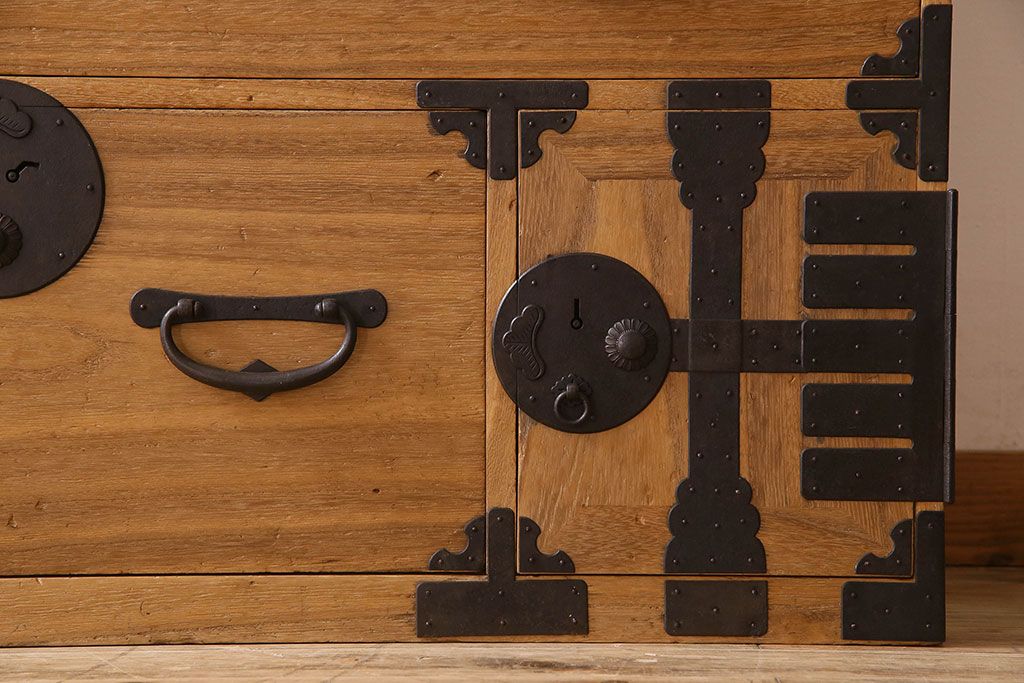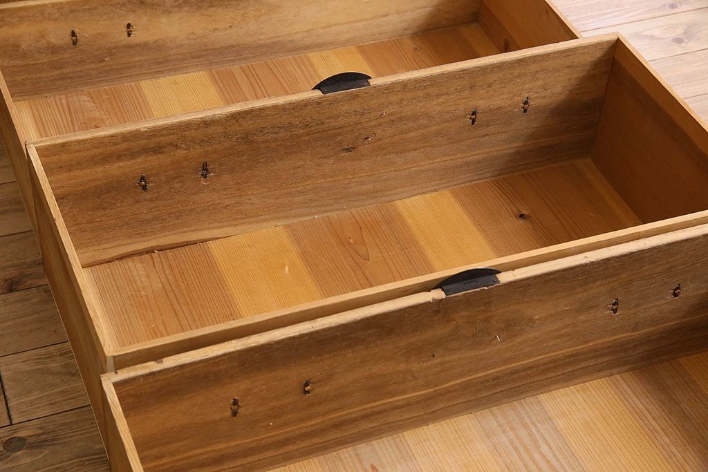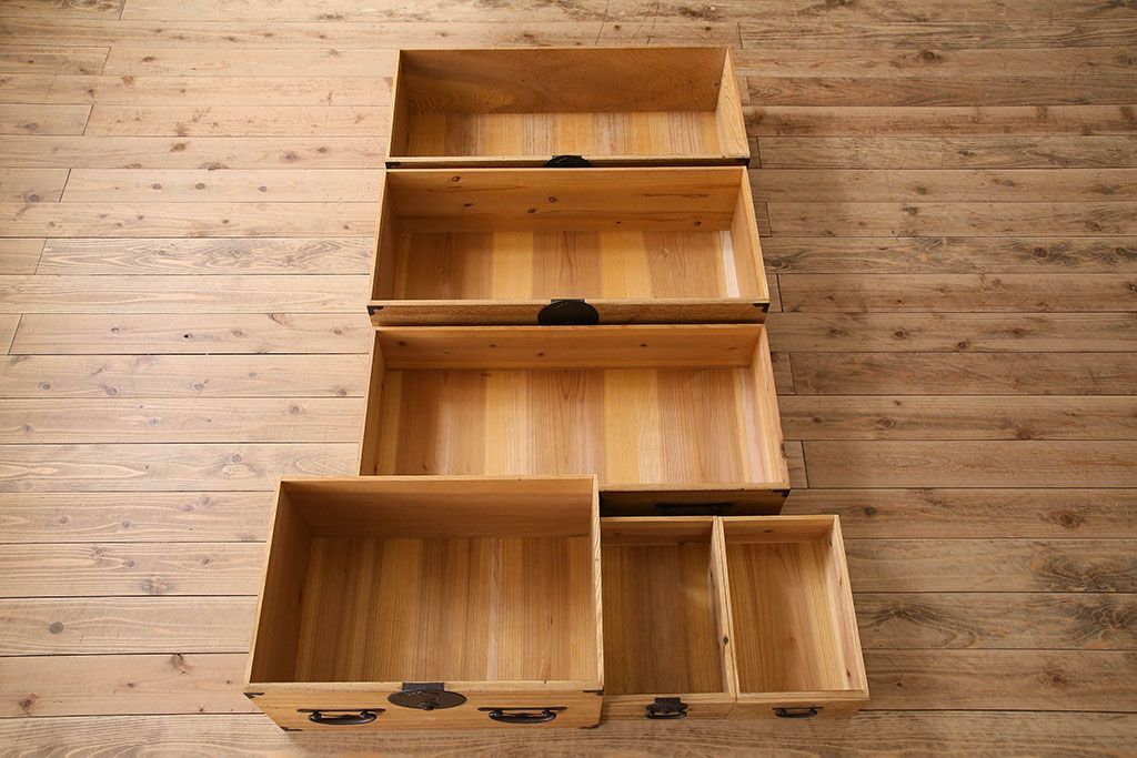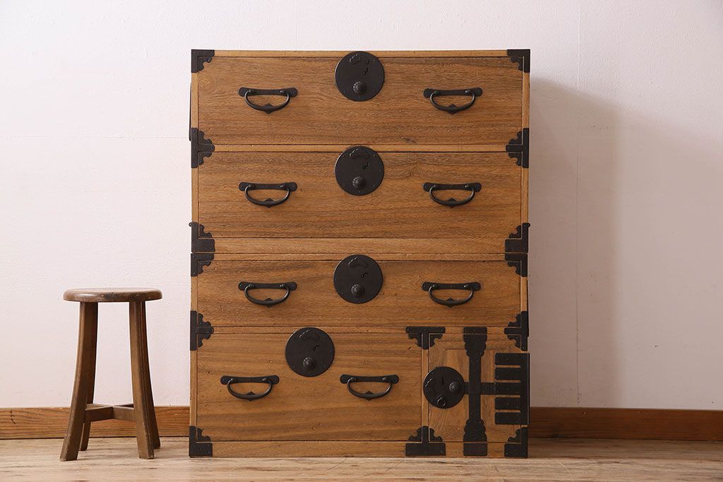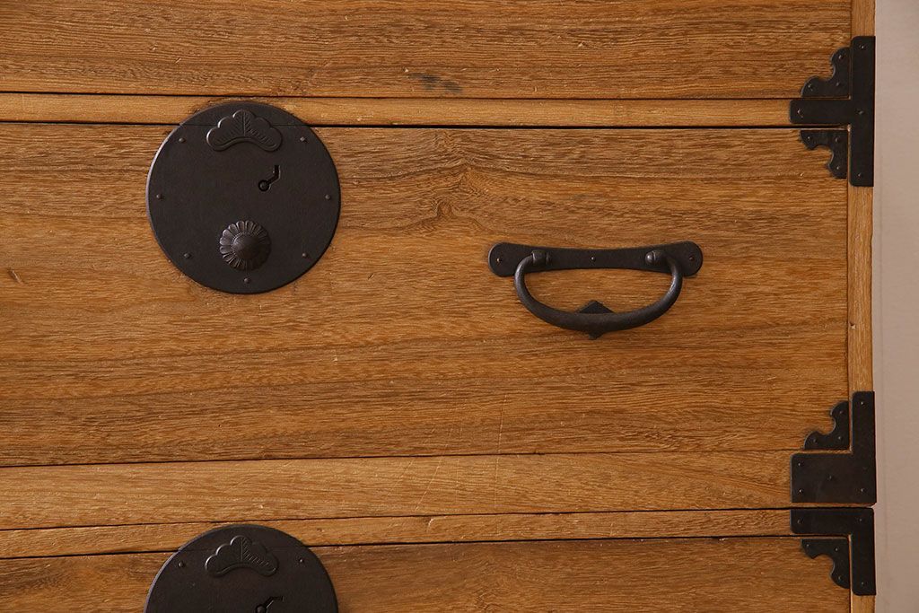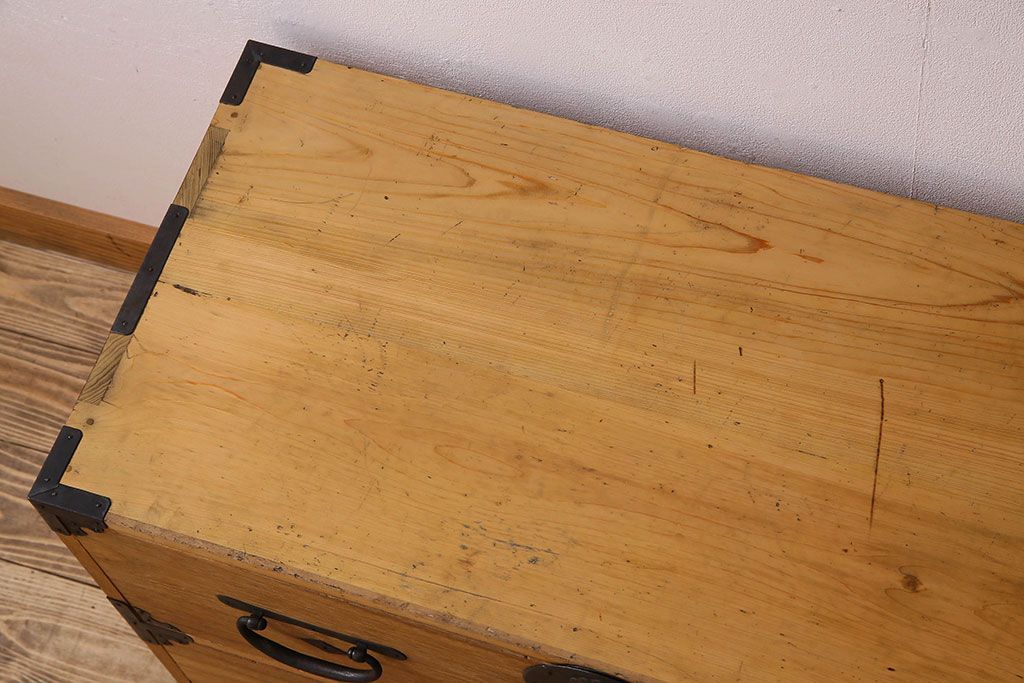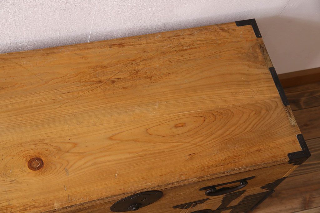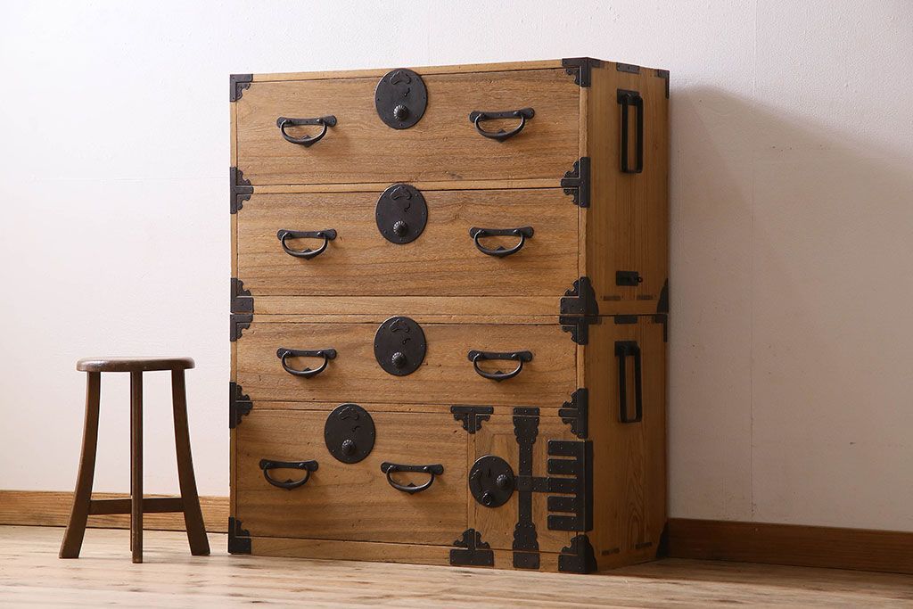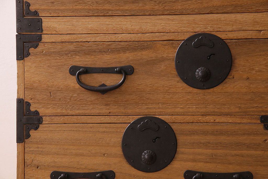 ラフジュ工房> 和箪笥 > アンティーク家具 和製アンティーク 前面桐材製の小振りな重ね二本松箪笥(衣装箪笥、桐箪笥、桐たんす)