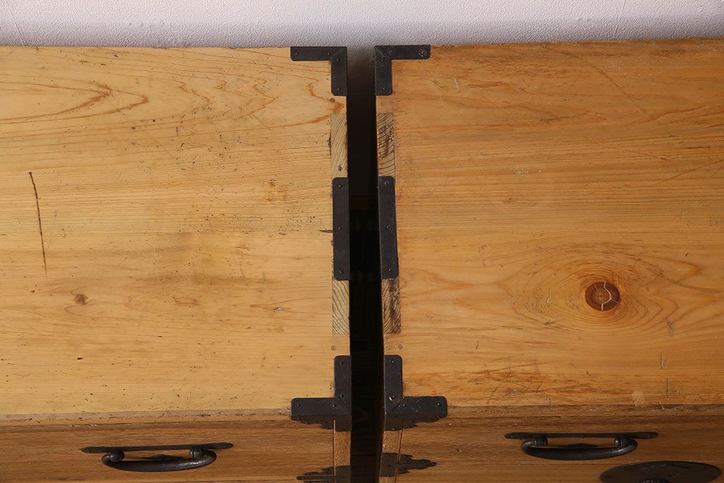 アンティーク家具 和製アンティーク 前面桐材製の小振りな重ね二本松箪笥(衣装箪笥、桐箪笥、桐たんす)