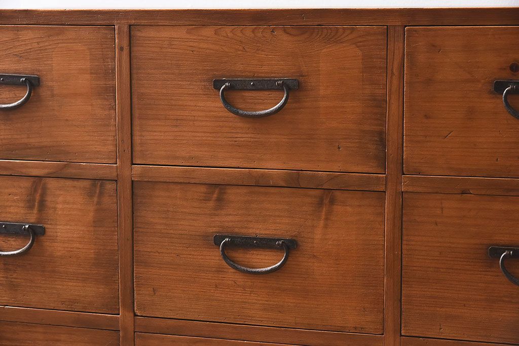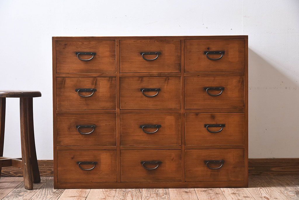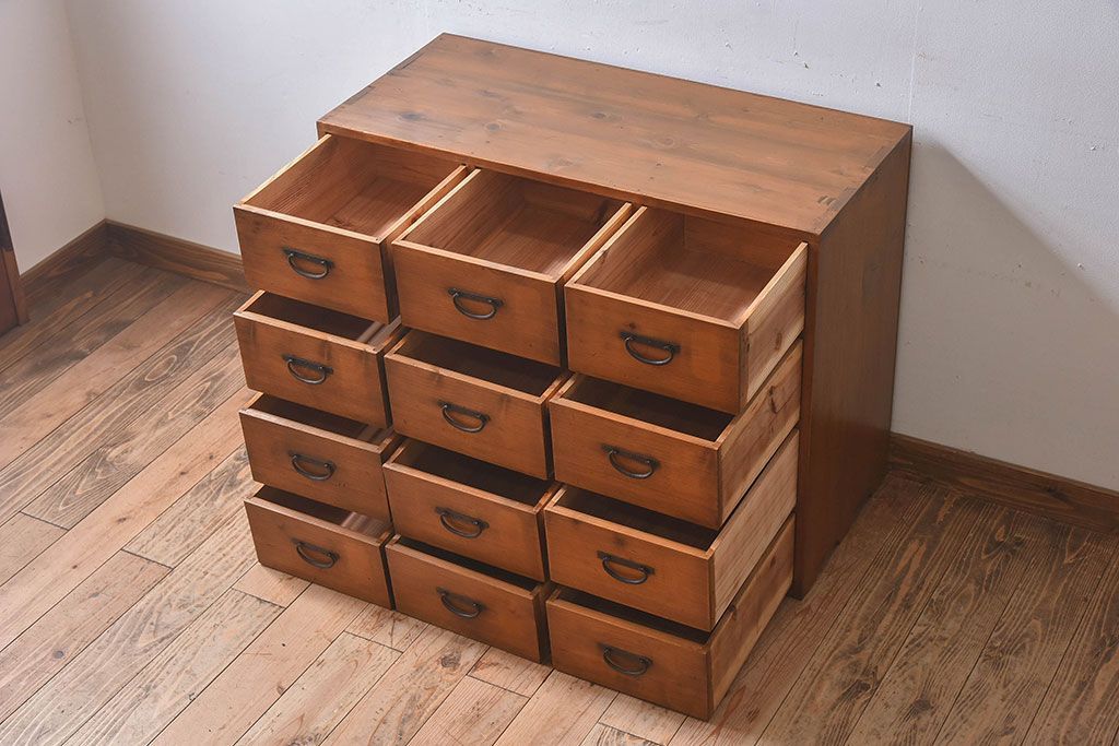 アンティーク家具 和製アンティーク 檜材製12杯引き出し(ドロワー、チェスト)(1)