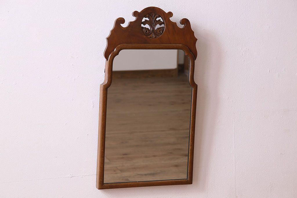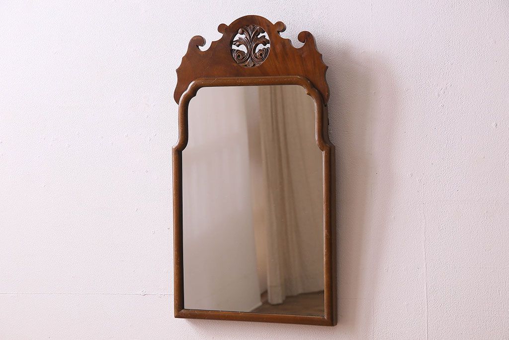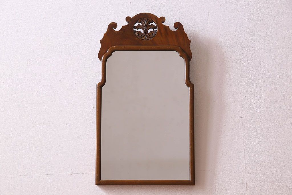 アンティーク雑貨 イギリスアンティーク マホガニー材製 壁掛けミラー(鏡)