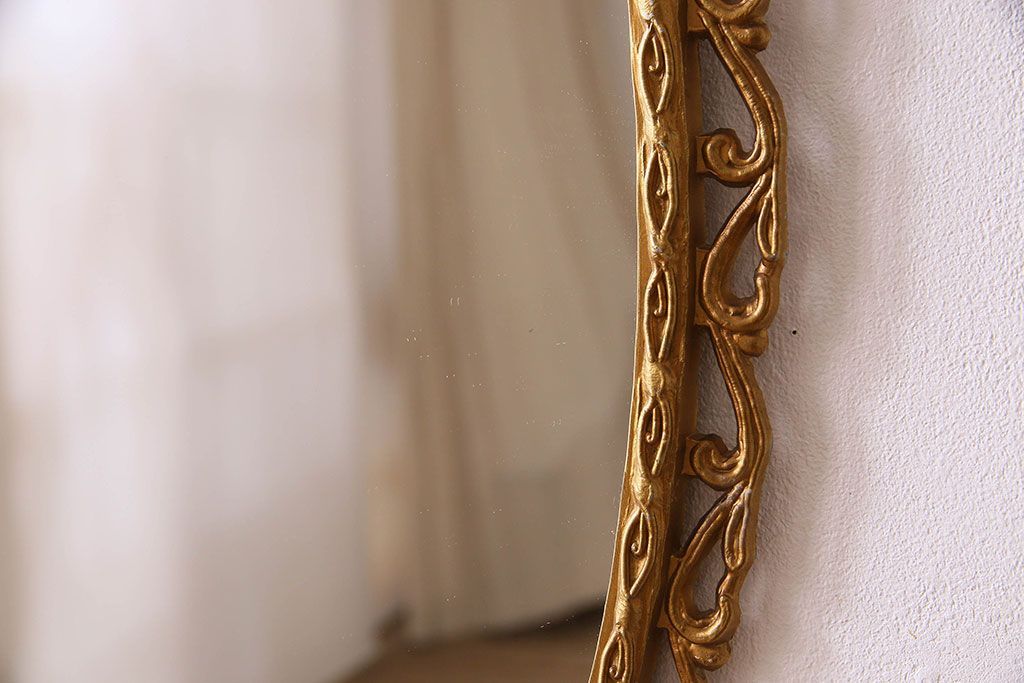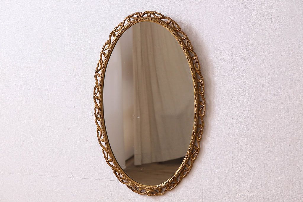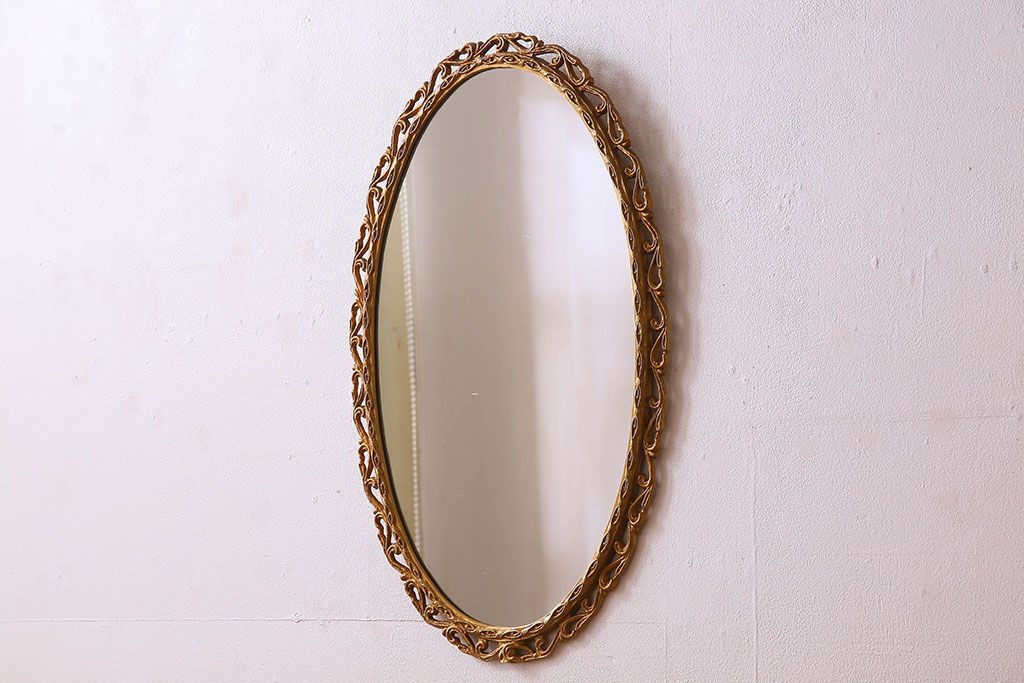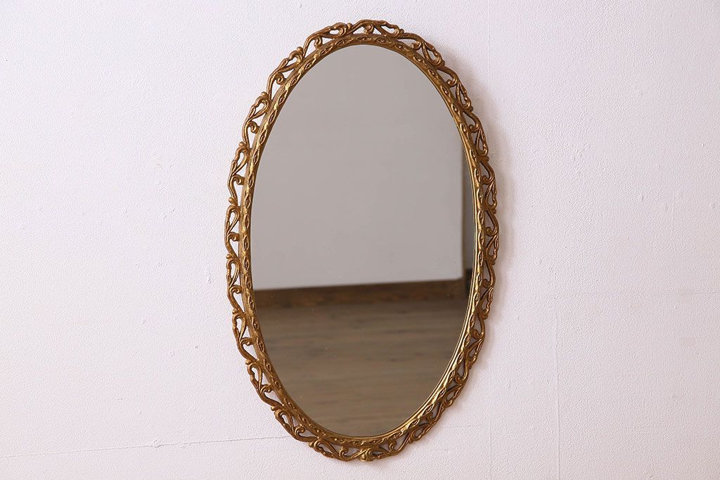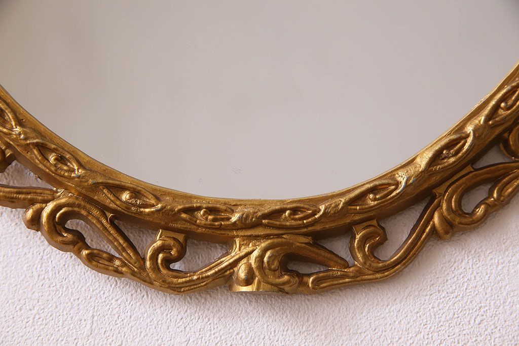 アンティーク雑貨 イギリスビンテージ レリーフがお洒落な壁掛けミラー(鏡)