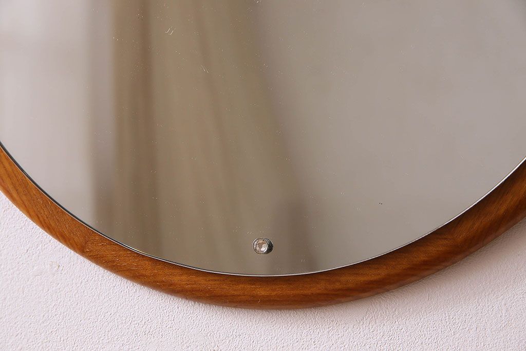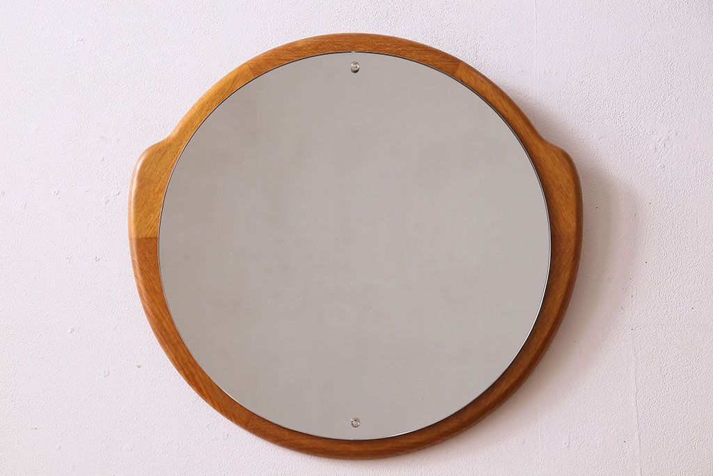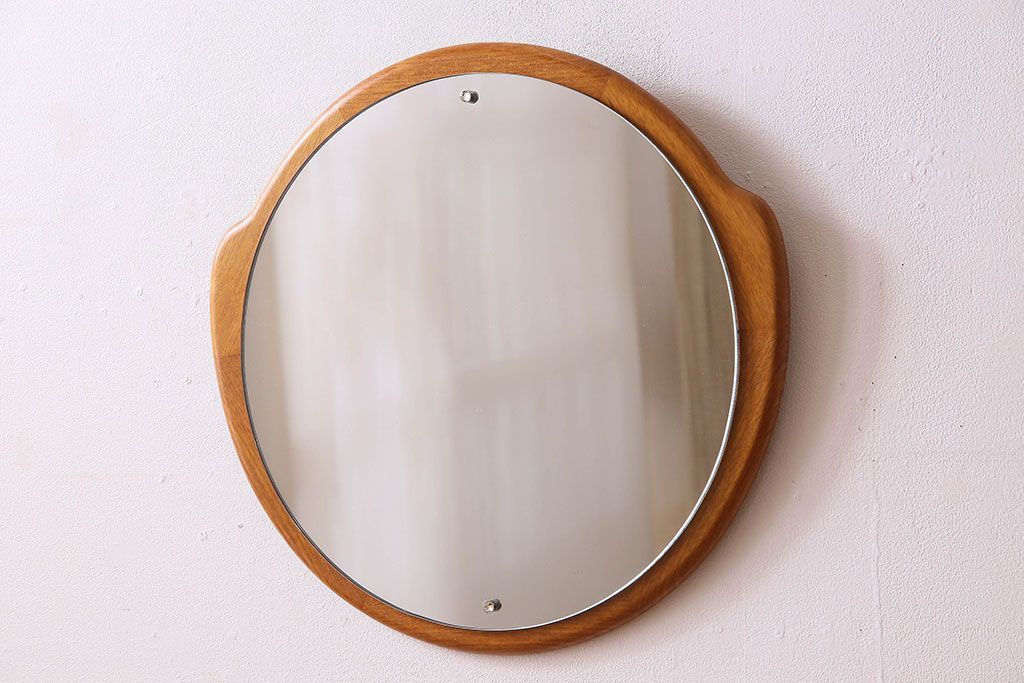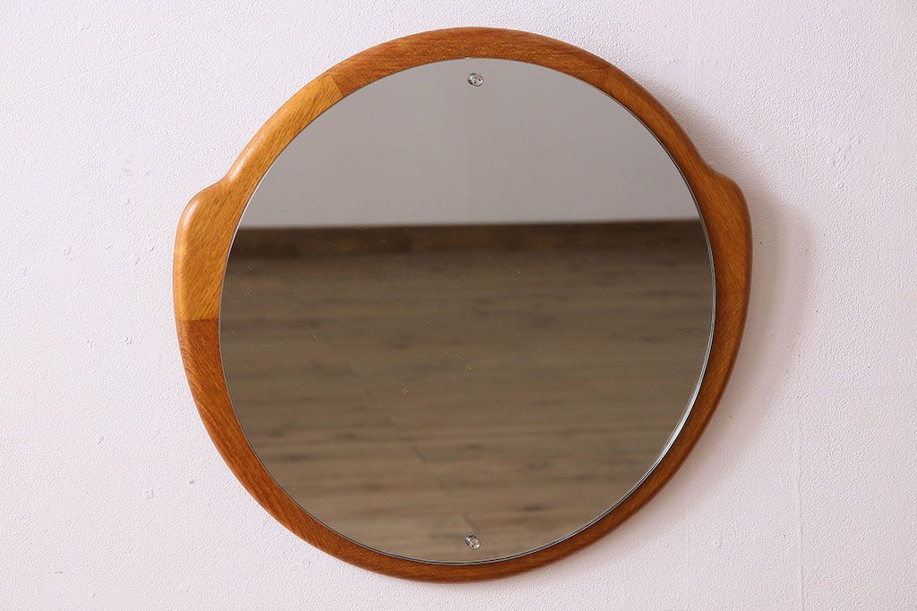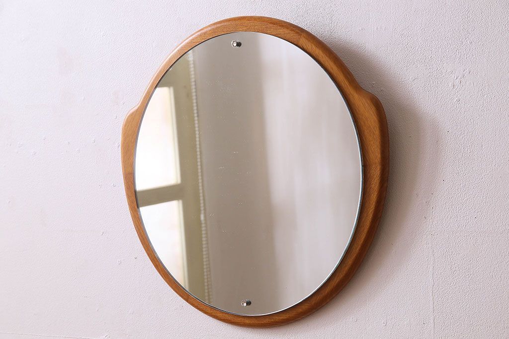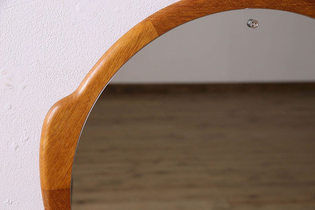 アンティーク雑貨 北欧家具 チーク材製 おしゃれなフレームの壁掛けミラー(鏡)(1)