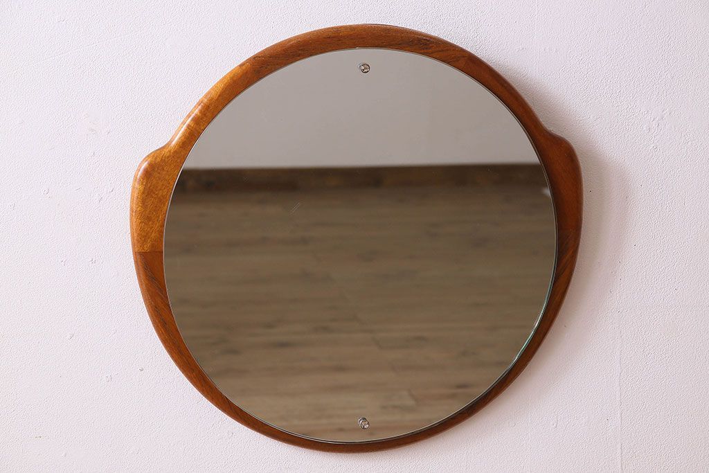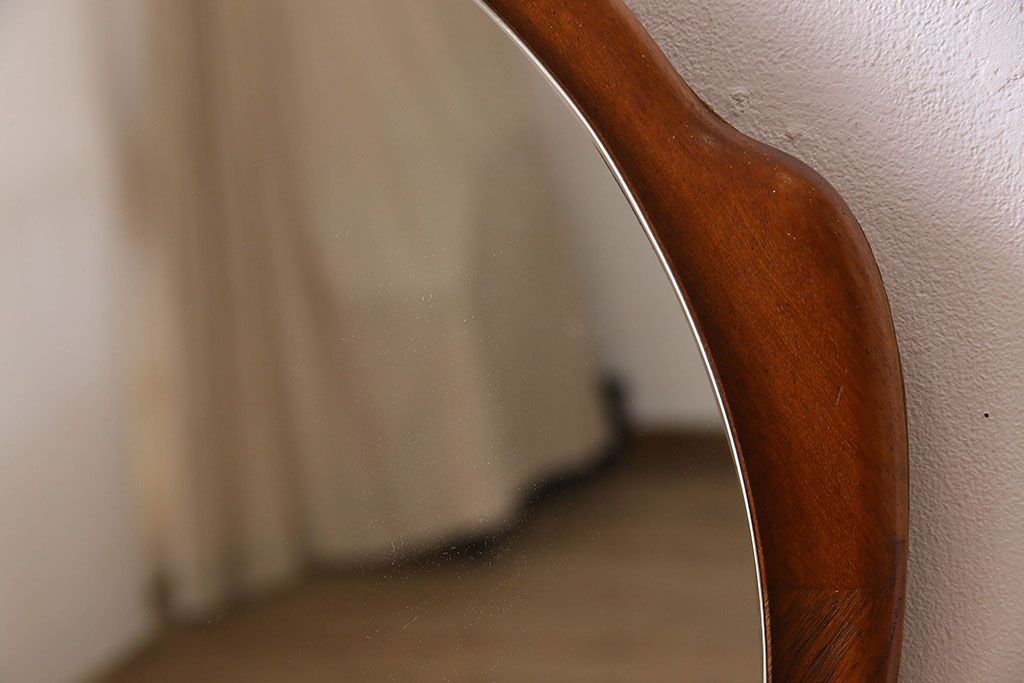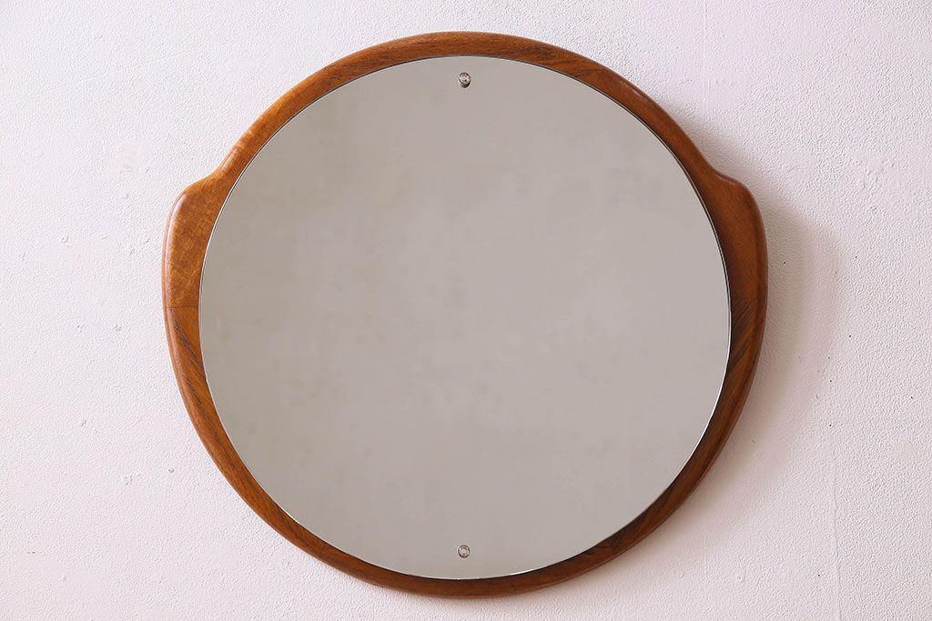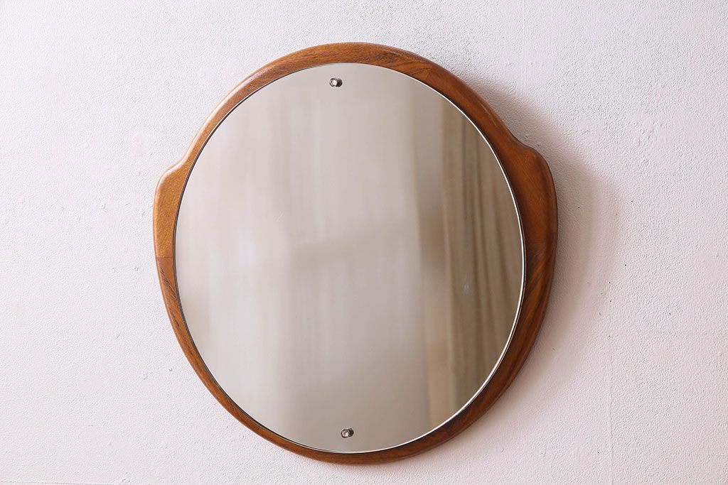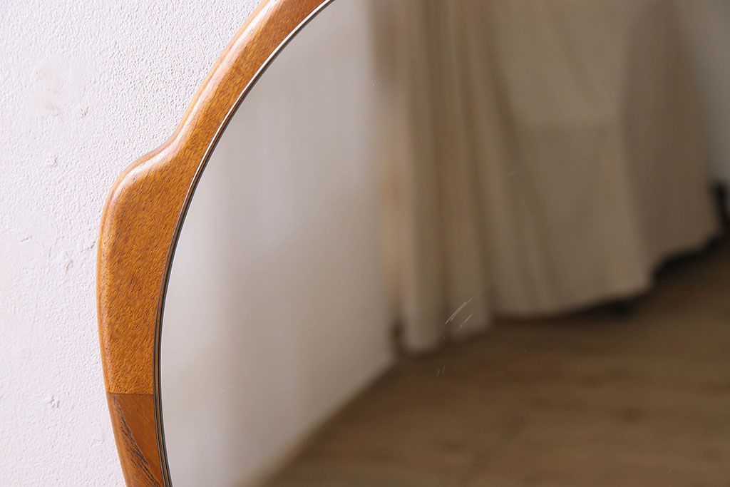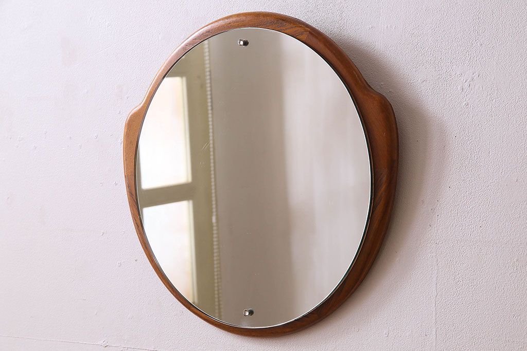 アンティーク雑貨 北欧家具 チーク材製 おしゃれなフレームの壁掛けミラー(鏡)(3)