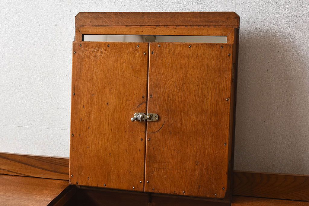 ラフジュ工房> チェスト・引き出し> サイドチェスト > ヴィンテージ家具 イギリスビンテージ オーク材製!格納式ドレッサー