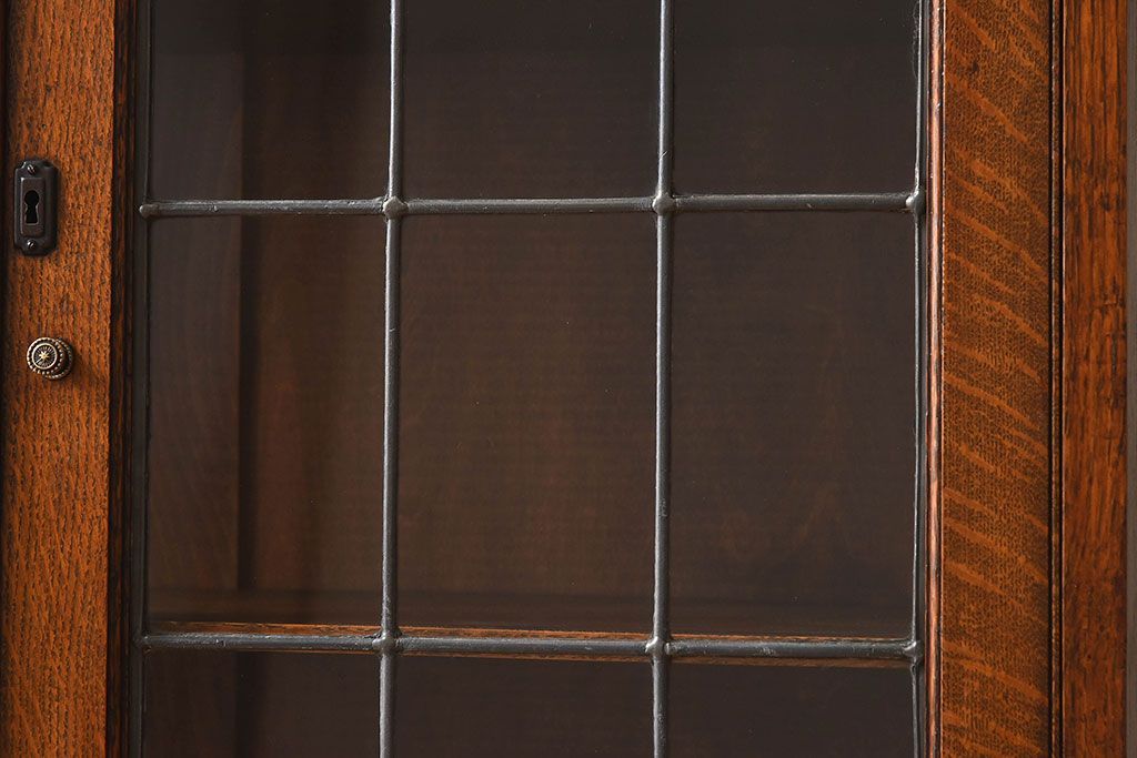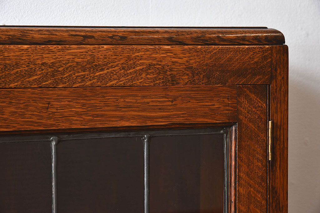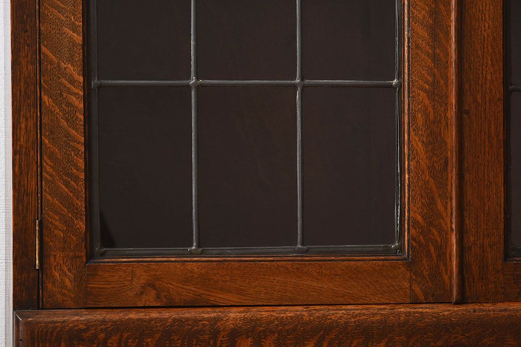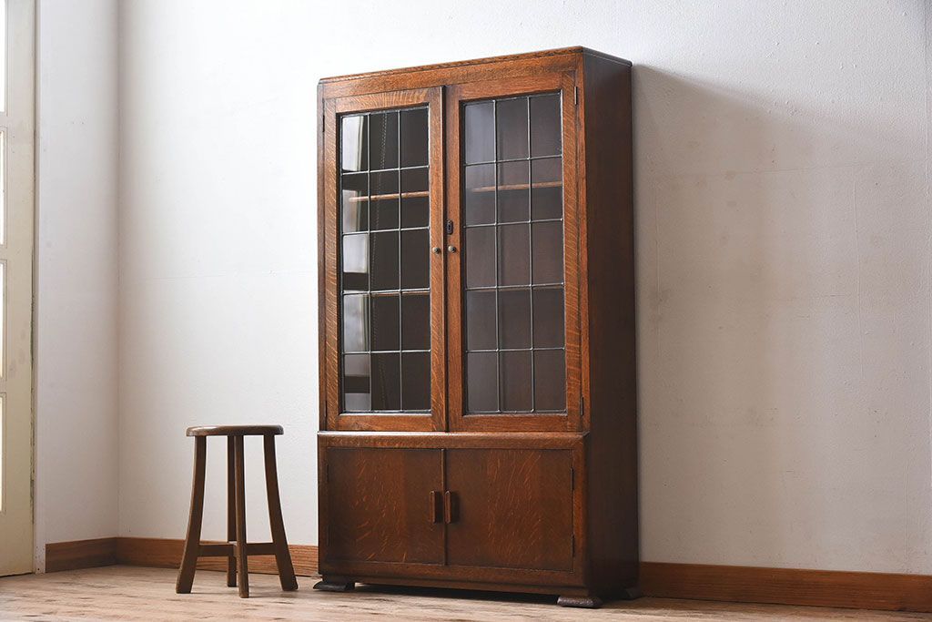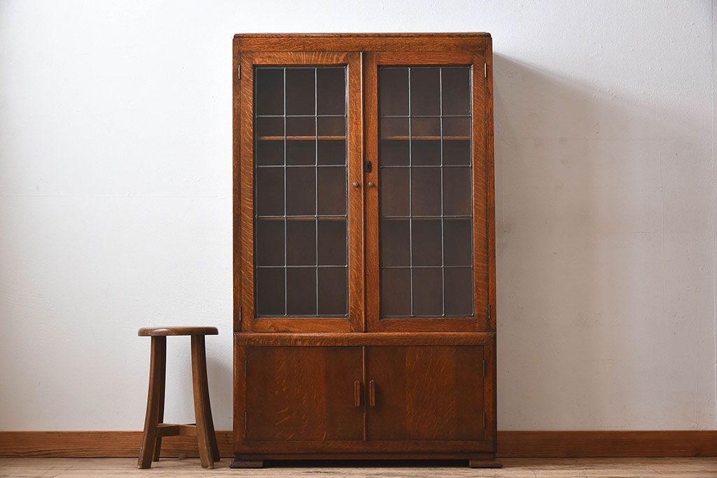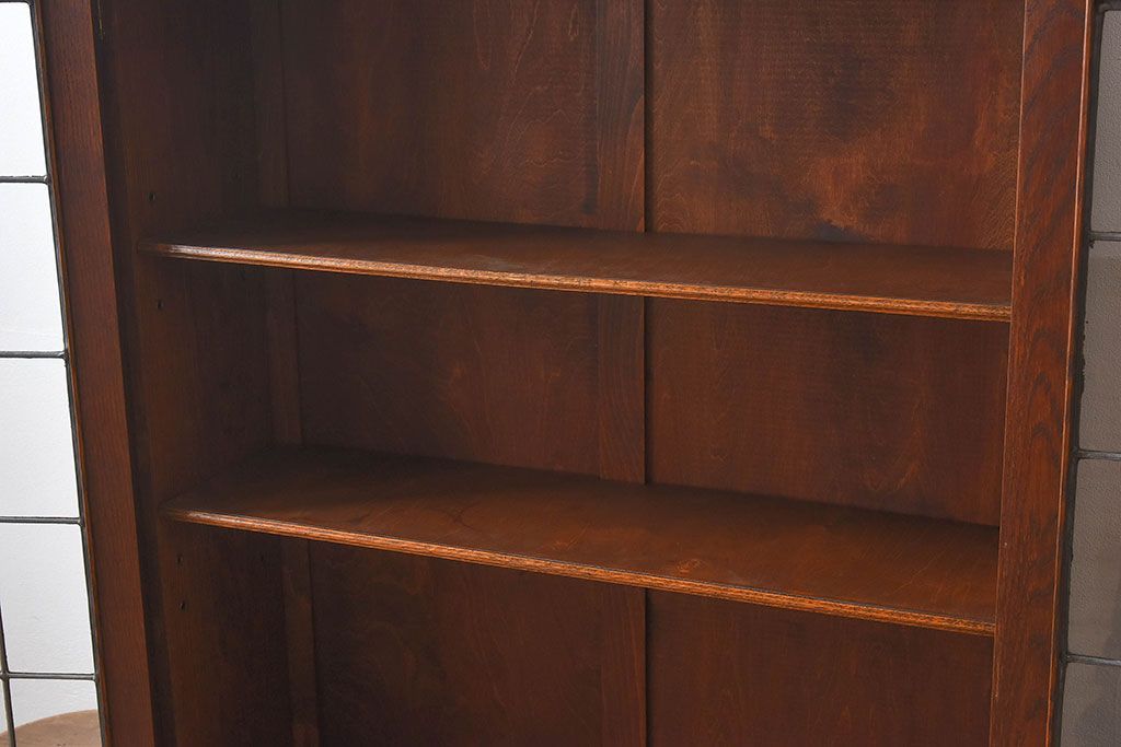 アンティーク家具 イギリスアンティーク オーク材製!ステンドグラス戸がお洒落な本箱(ブックケース、収納棚)