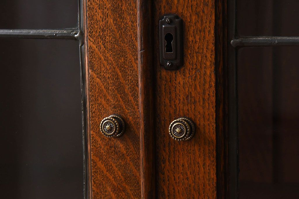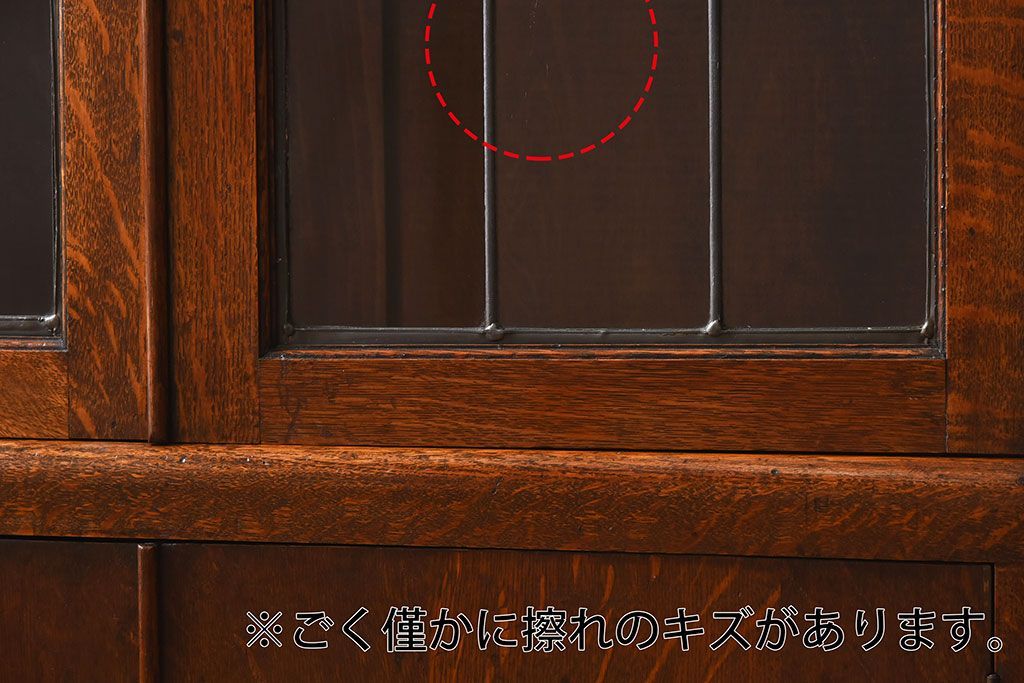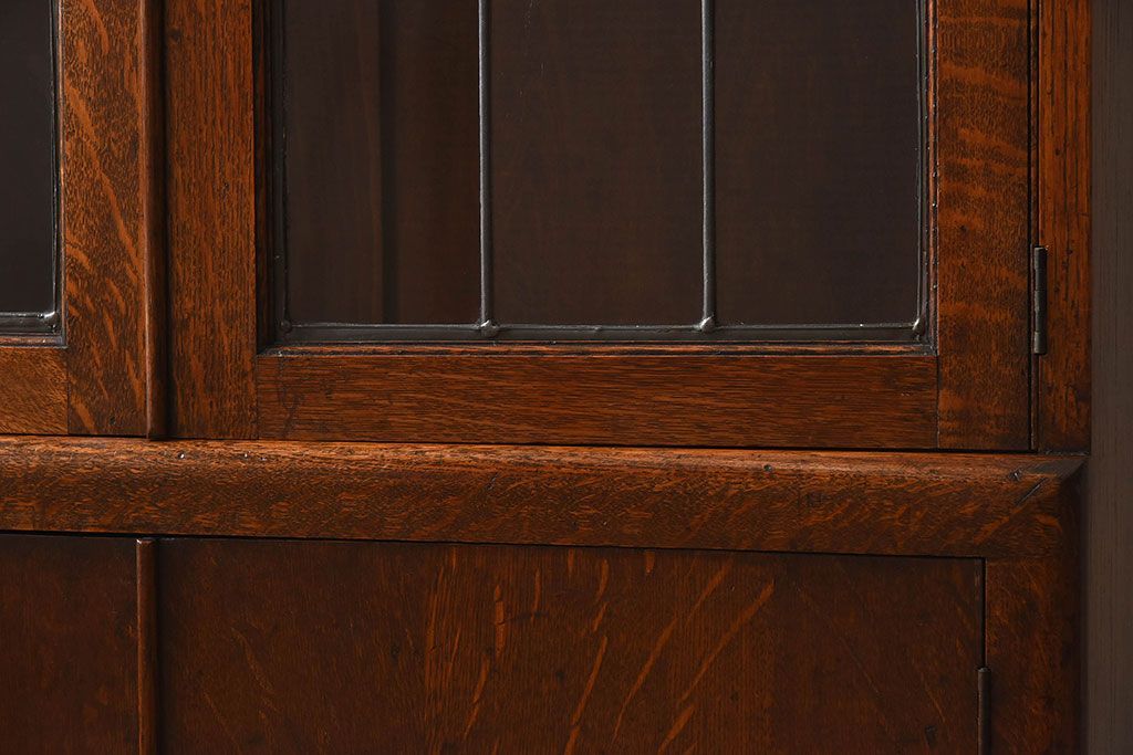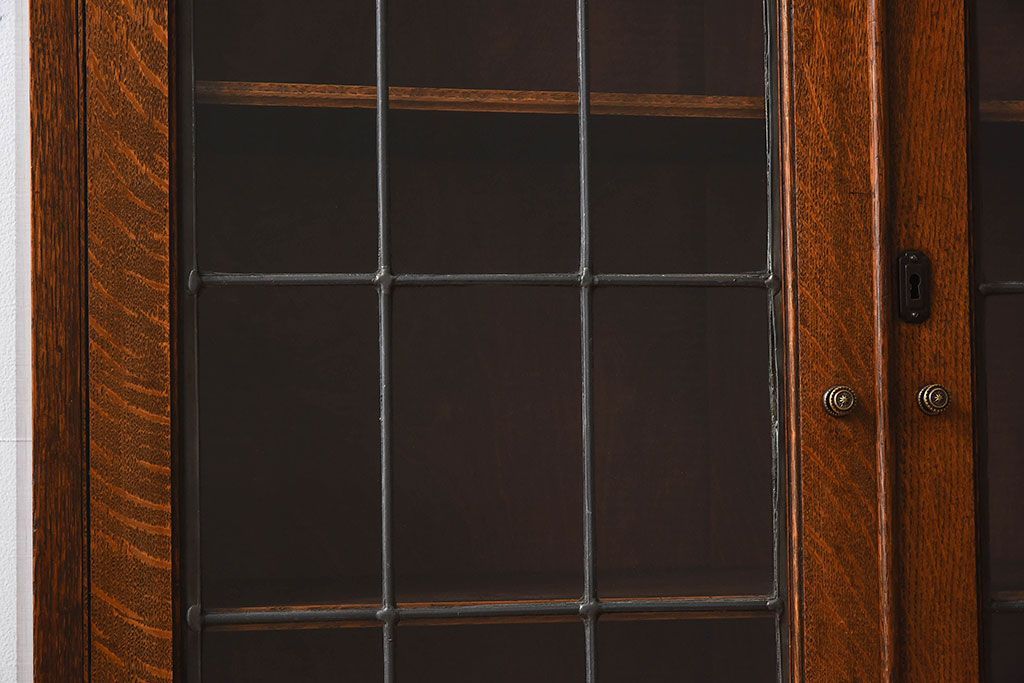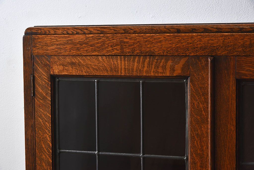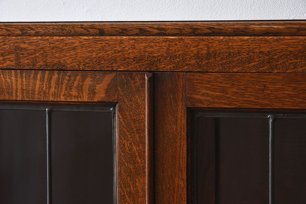 アンティーク家具 イギリスアンティーク オーク材製!ステンドグラス戸がお洒落な本箱(ブックケース、収納棚)