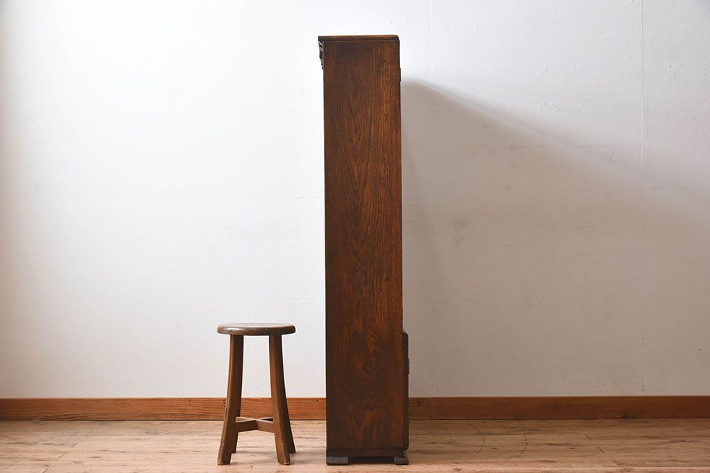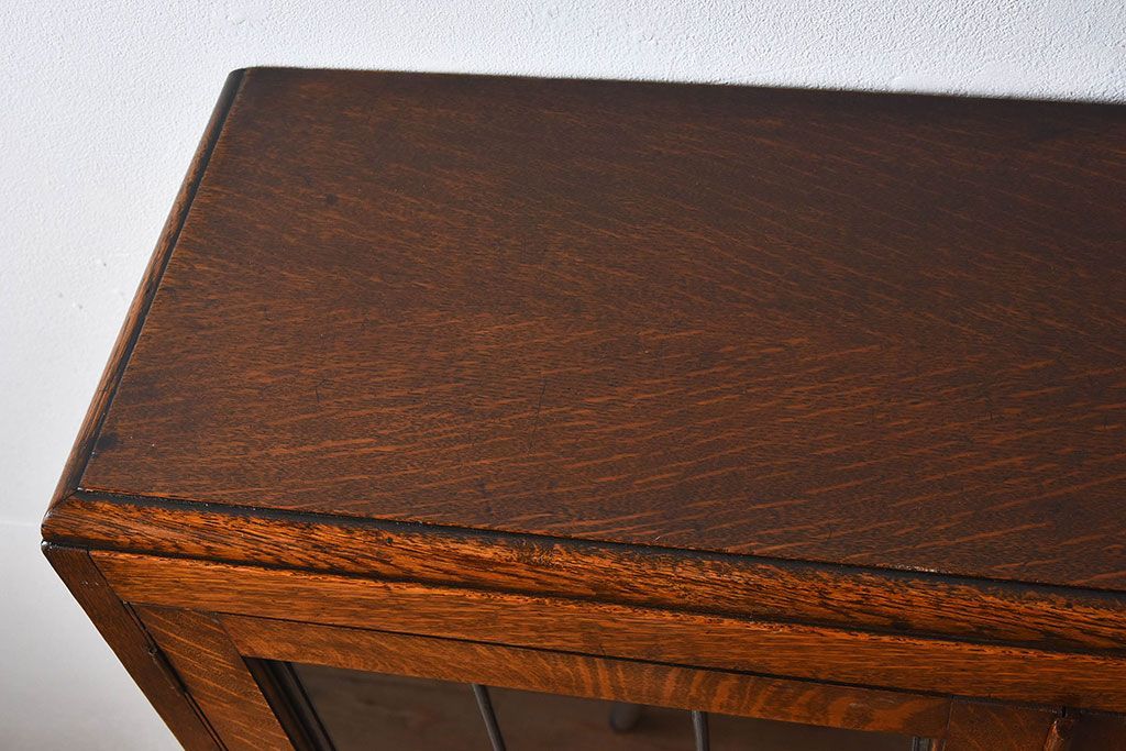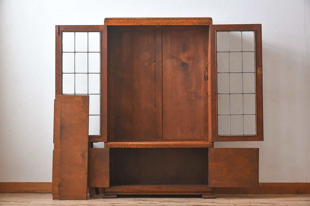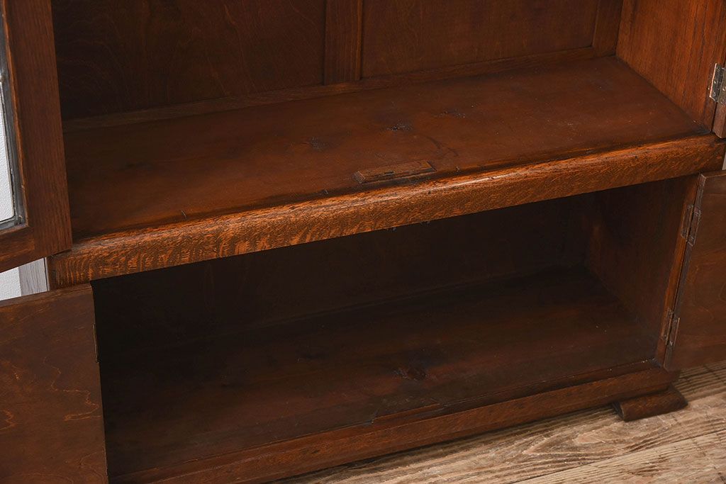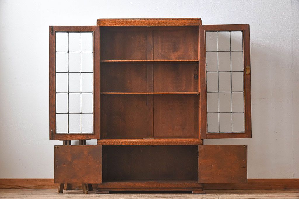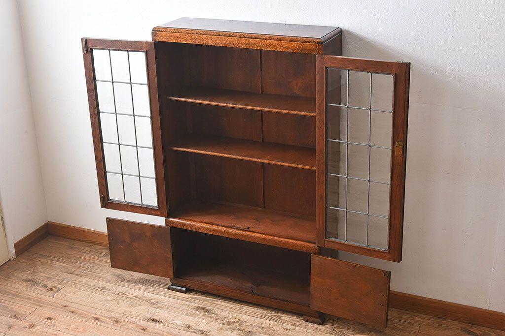 アンティーク家具 イギリスアンティーク オーク材製!ステンドグラス戸がお洒落な本箱(ブックケース、収納棚)
