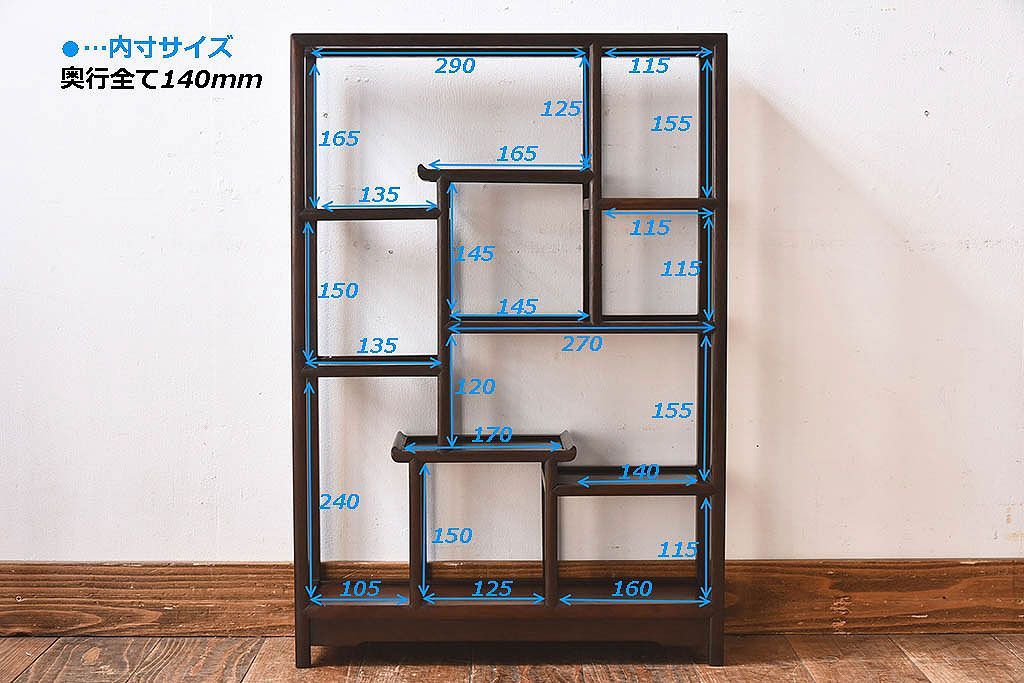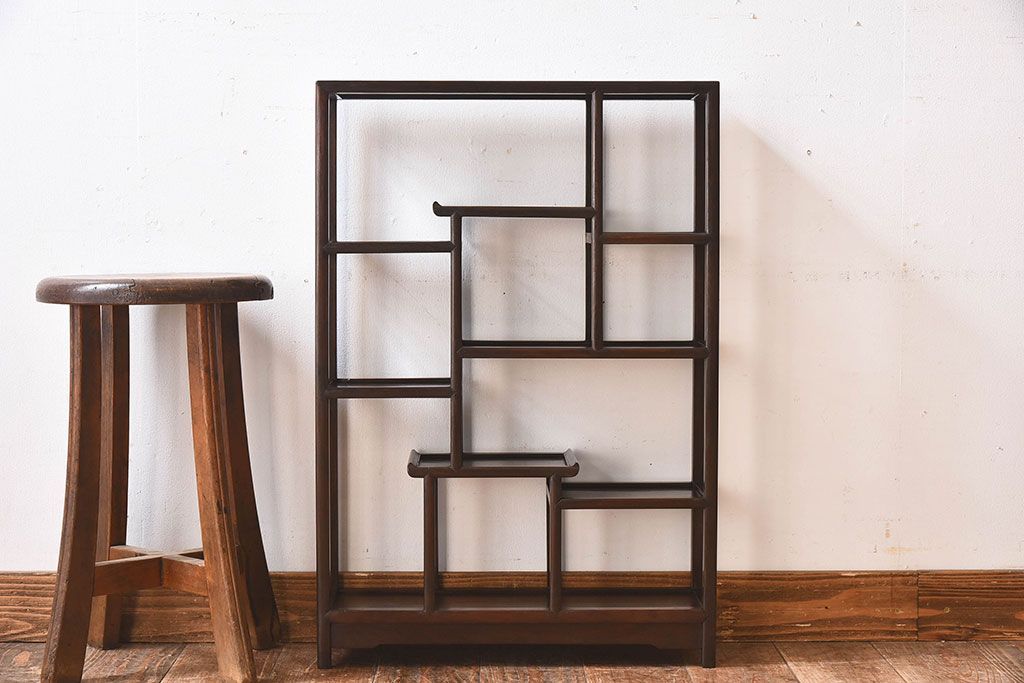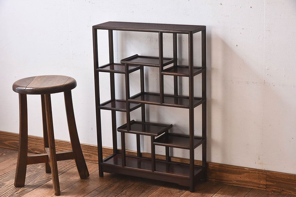 アンティーク家具 和製アンティーク 唐木材製 小振りな飾り棚(陳列棚、違い棚)