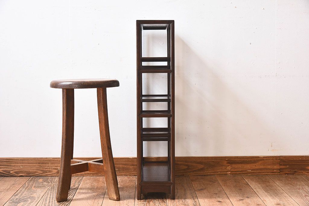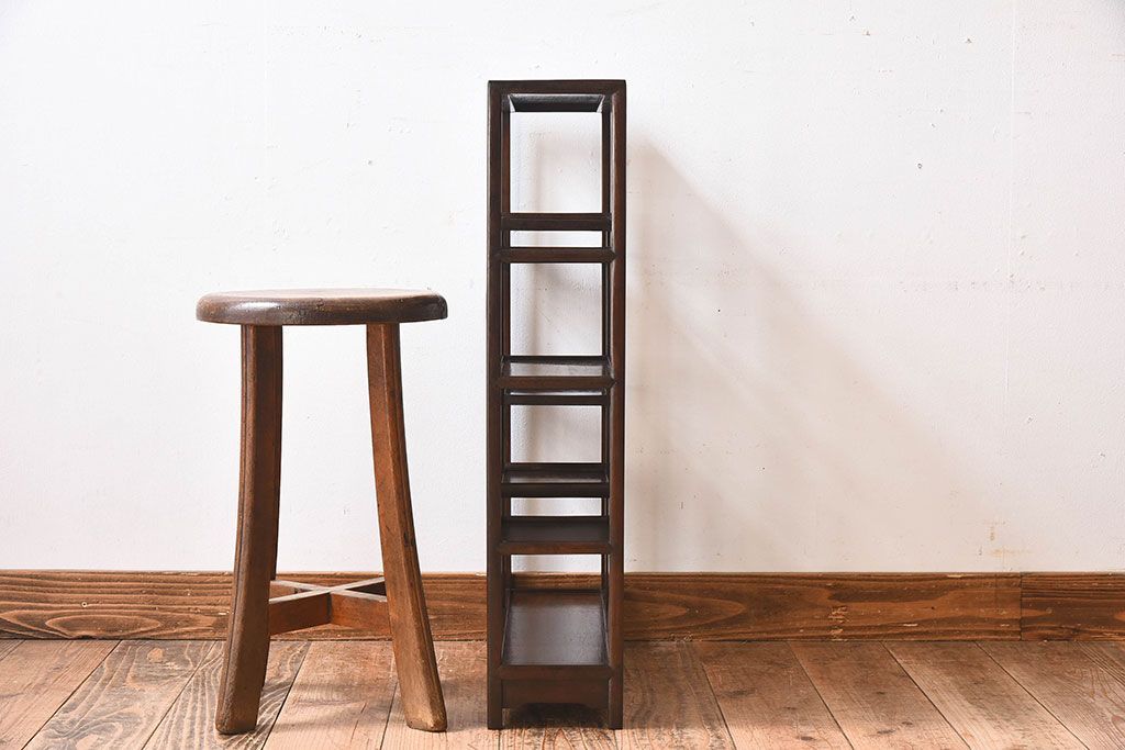 和製アンティーク 唐木材製 小振りな飾り棚(陳列棚、違い棚)です。