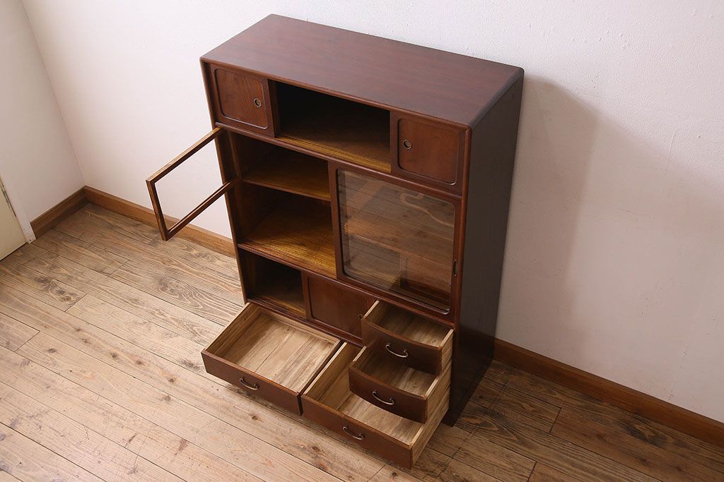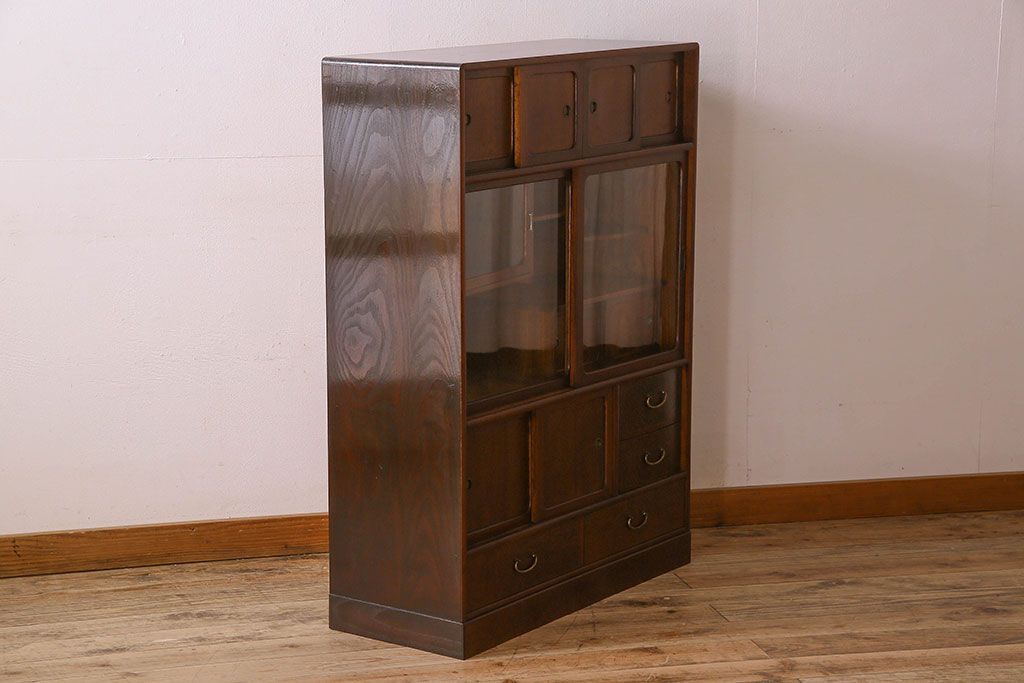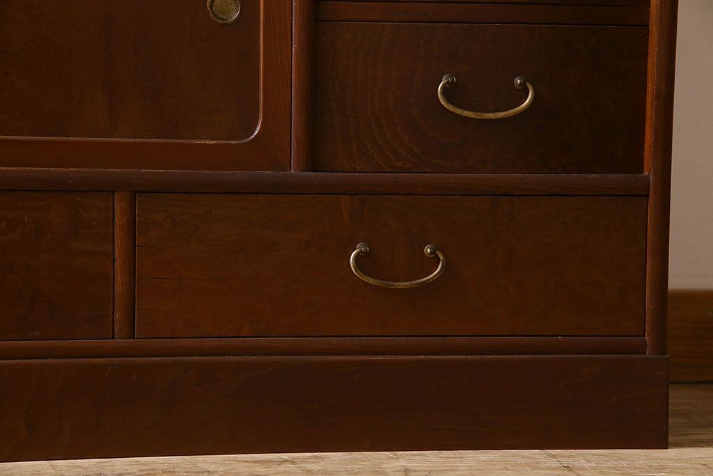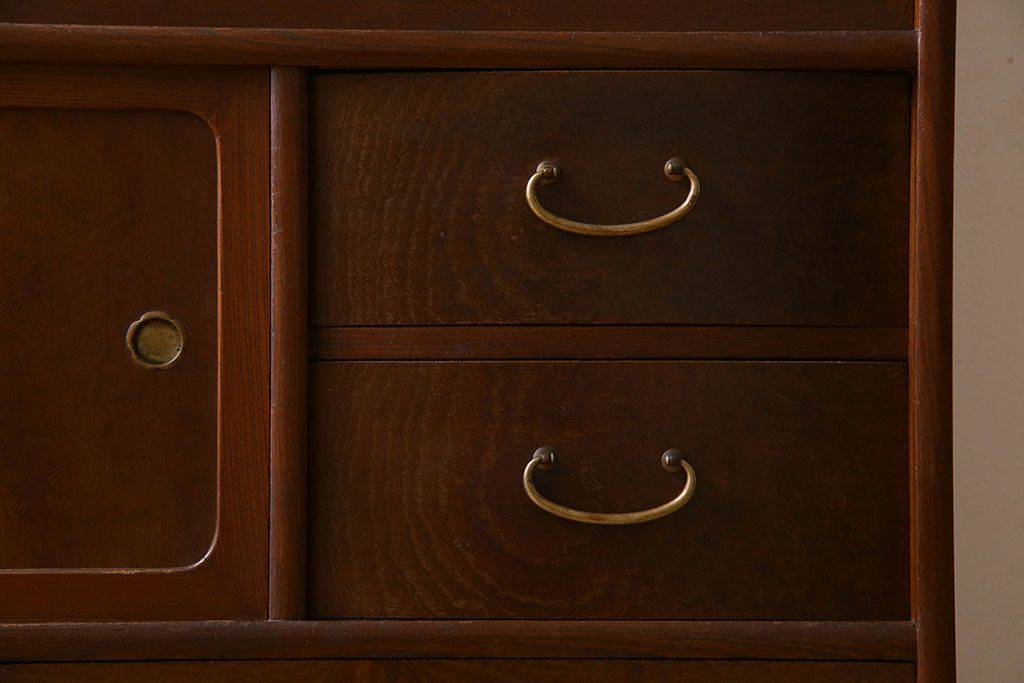 アンティーク家具 欅・桐材製 総無垢材 天然の木の温かみが魅力的な茶箪笥(茶棚)