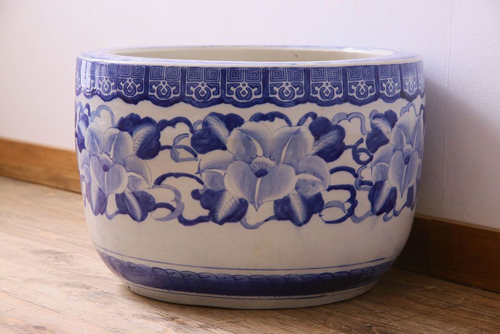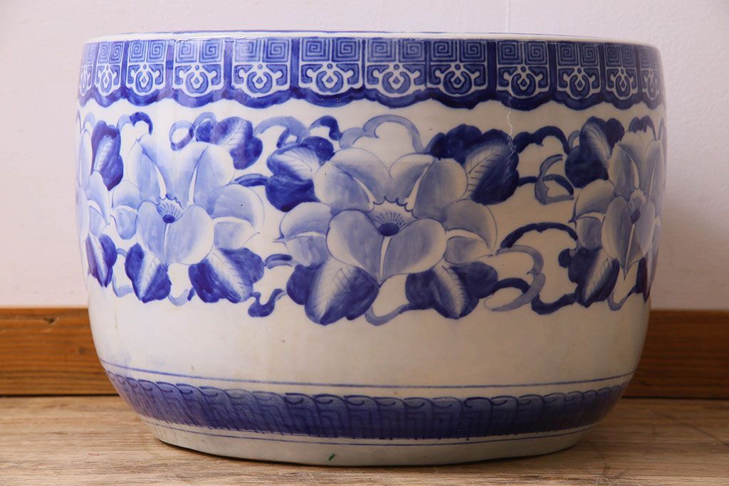 アンティーク雑貨 古民具・骨董 花の図 アンティーク瀬戸火鉢