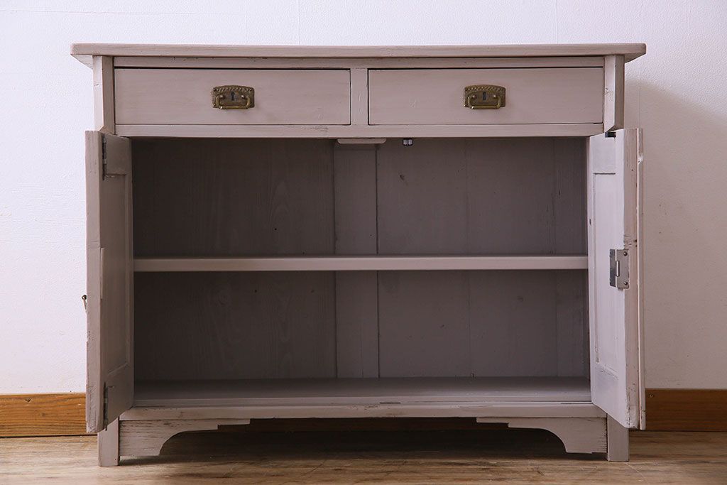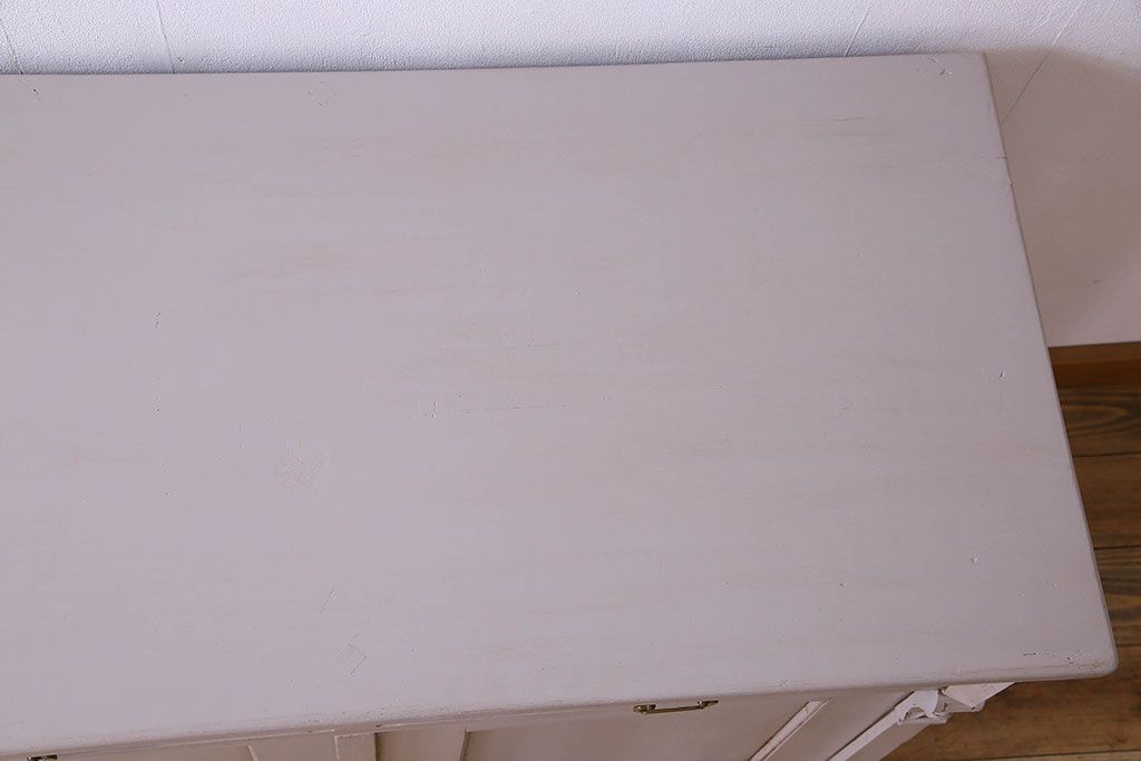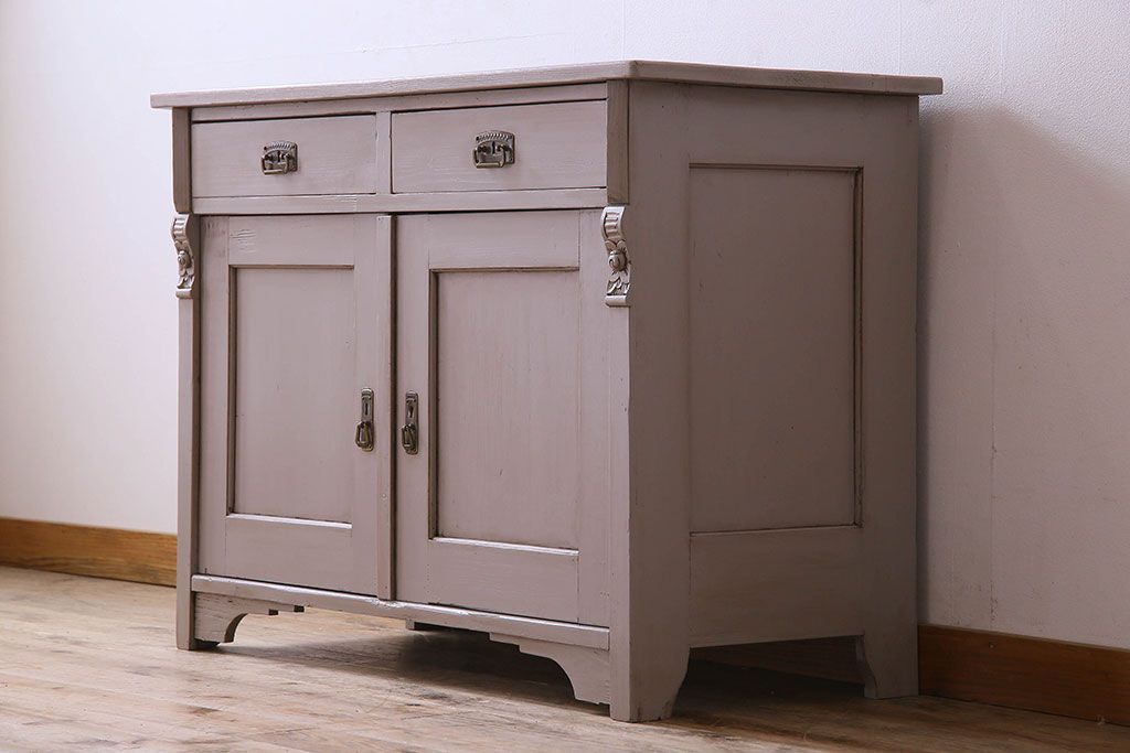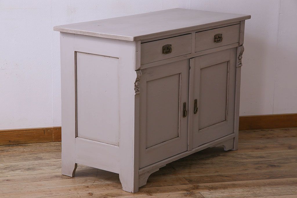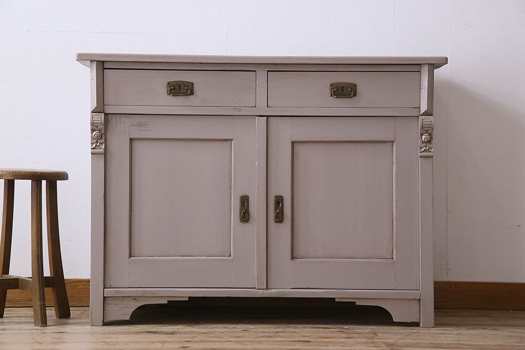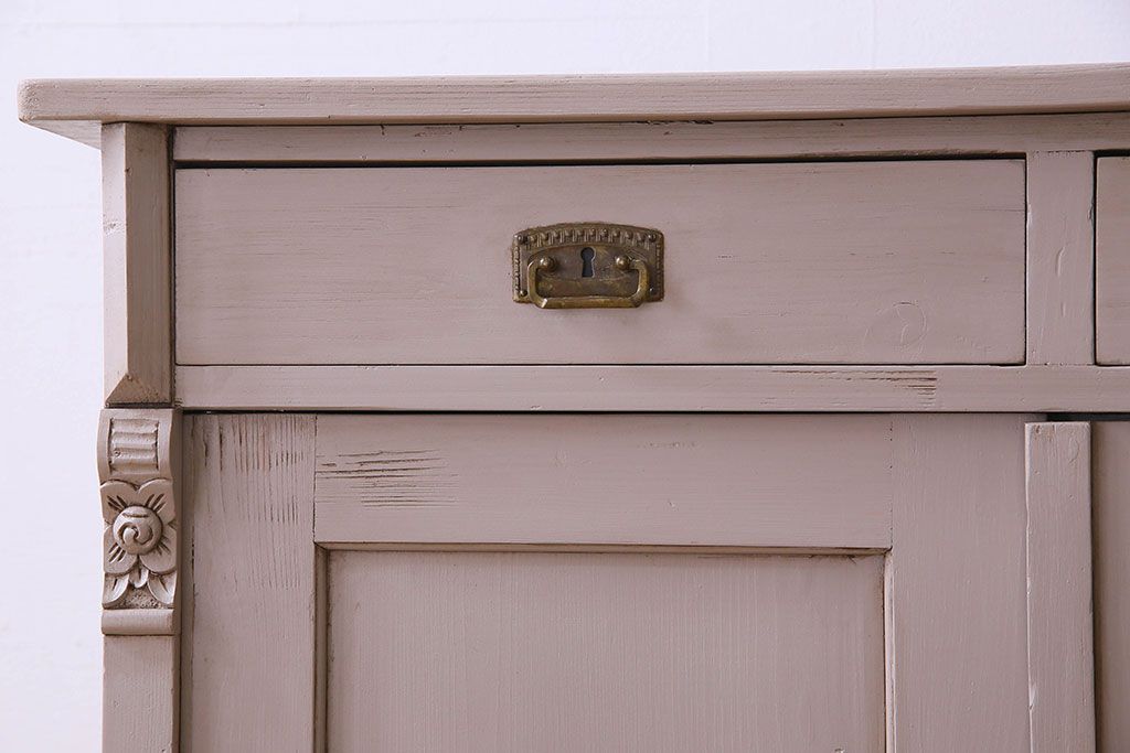 アンティーク家具 フランスアンティーク パイン材 装飾がお洒落なペイントサイドボード(収納棚)