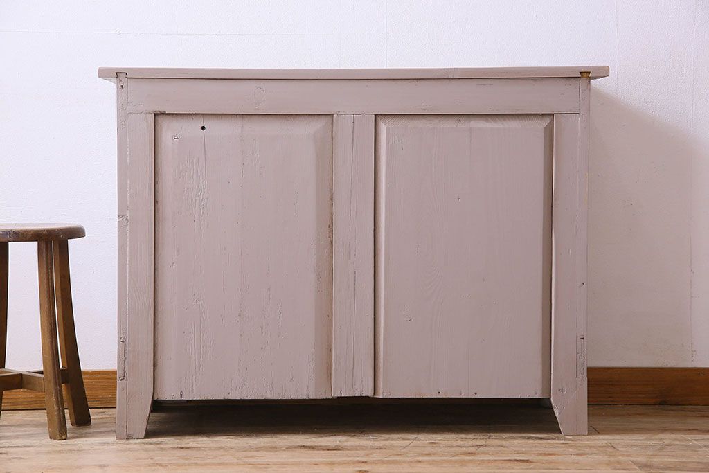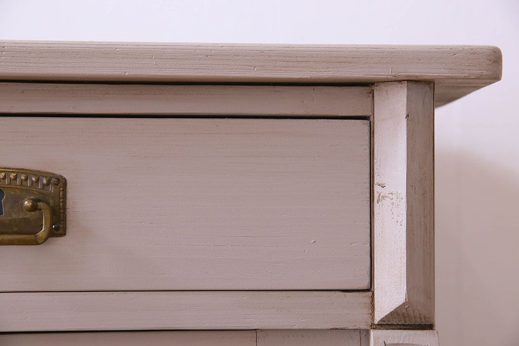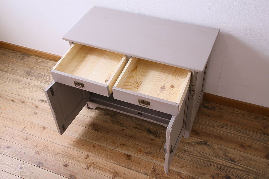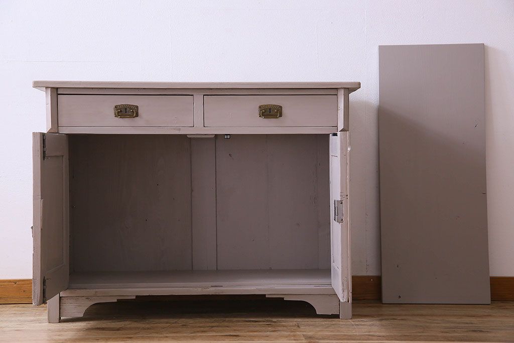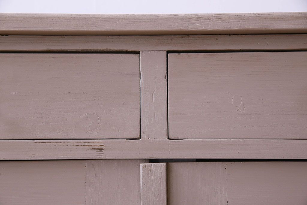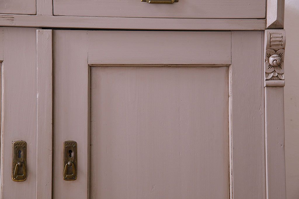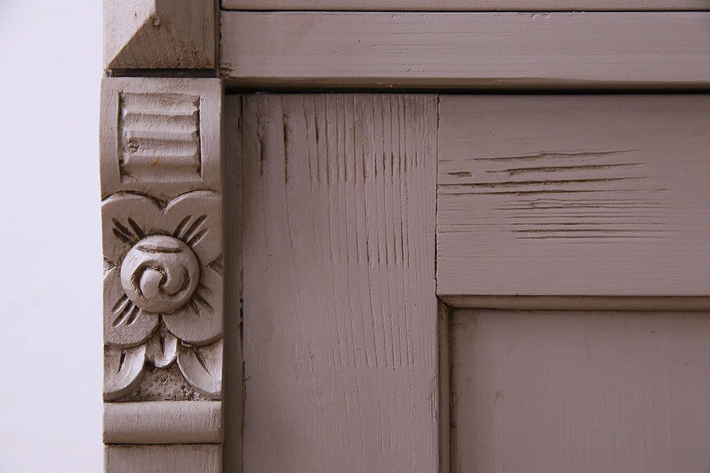 アンティーク家具 フランスアンティーク パイン材 装飾がお洒落なペイントサイドボード(収納棚)