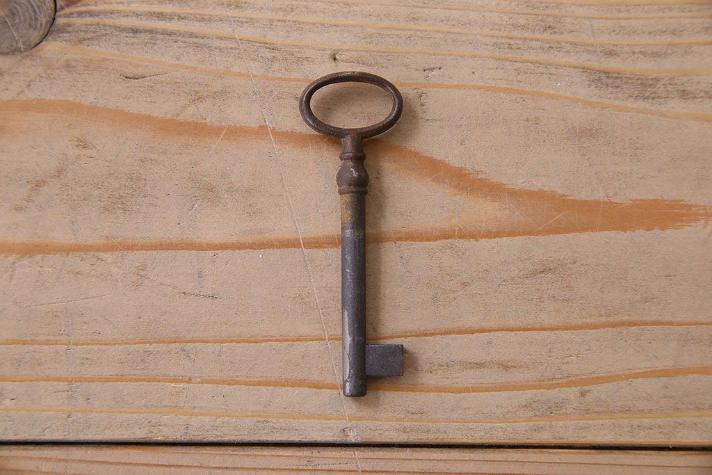 鍵は付属します。画像にありますように、袋に入れお付けします。スムーズに動くように調整していますが、あくまでも古いものや中古品ですので、長期の使用保証は出来かねます。ご購入後不具合が発生した場合は、当店でサポートさせていただきますので、お気軽にご相談くださいませ。