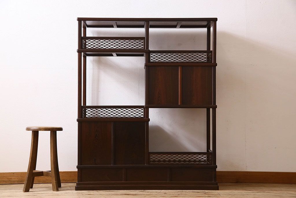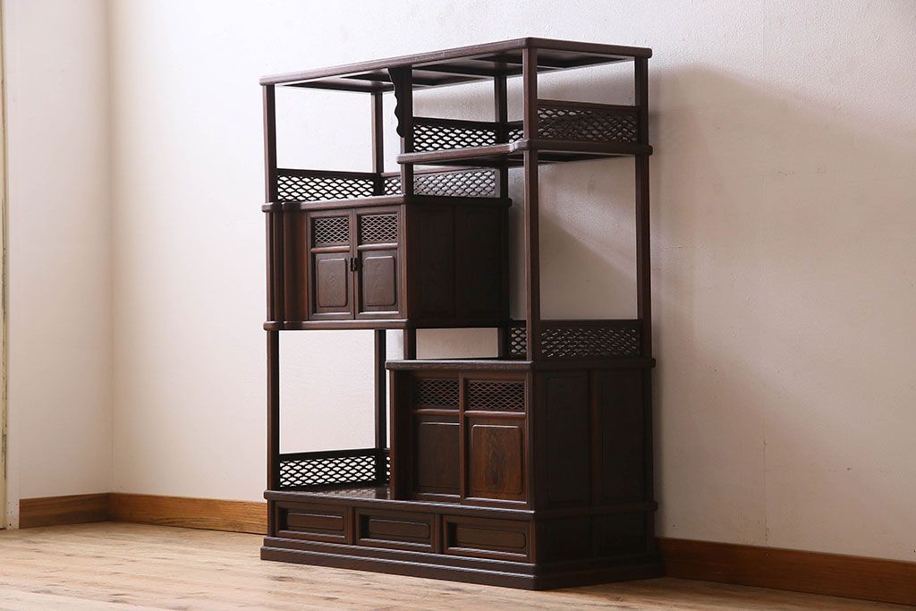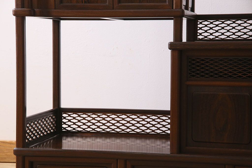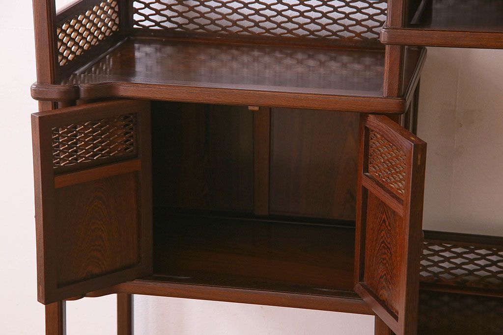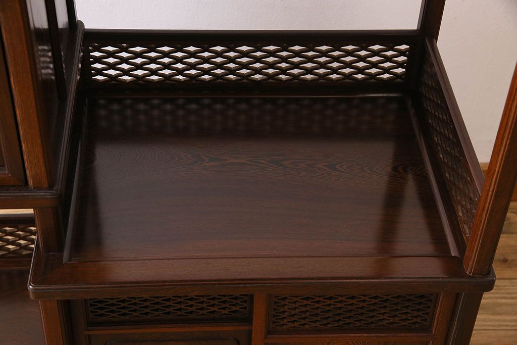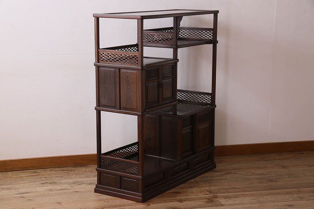 民芸家具 高級品!鉄刀木(タガヤサン)材製の重厚感ある飾り棚(陳列棚)