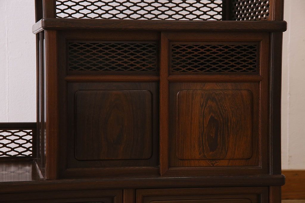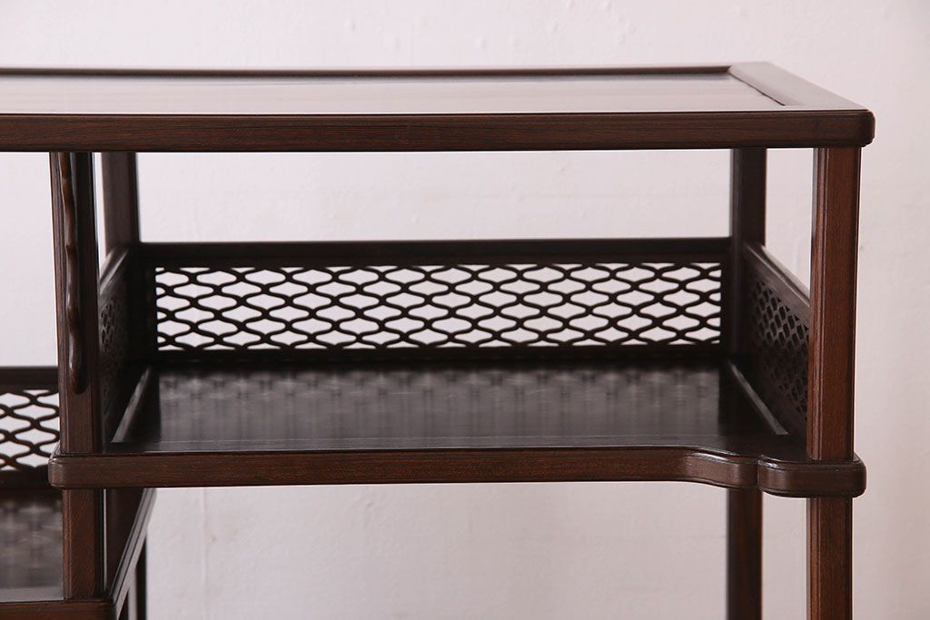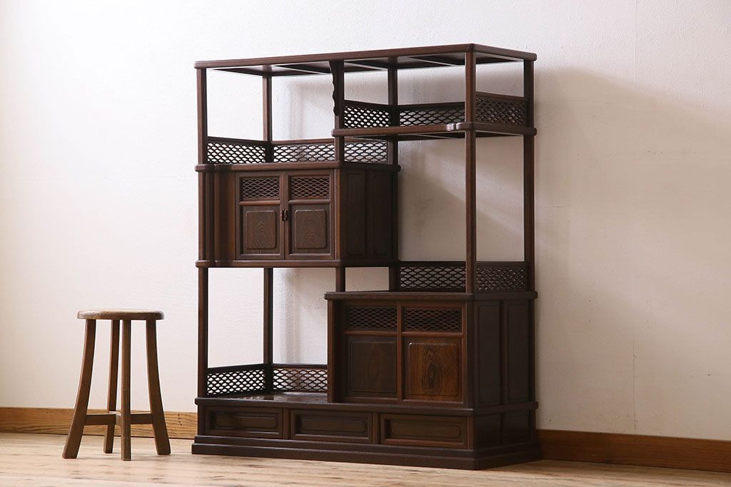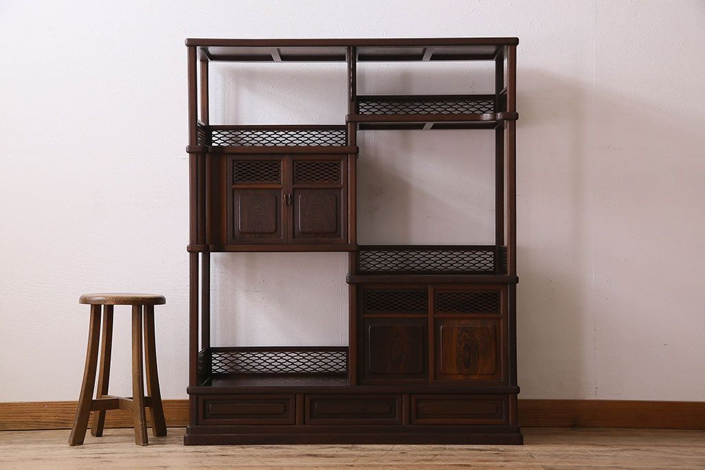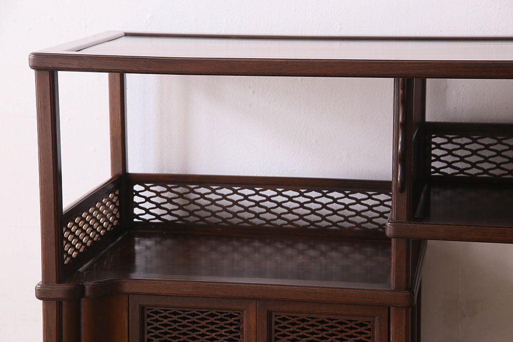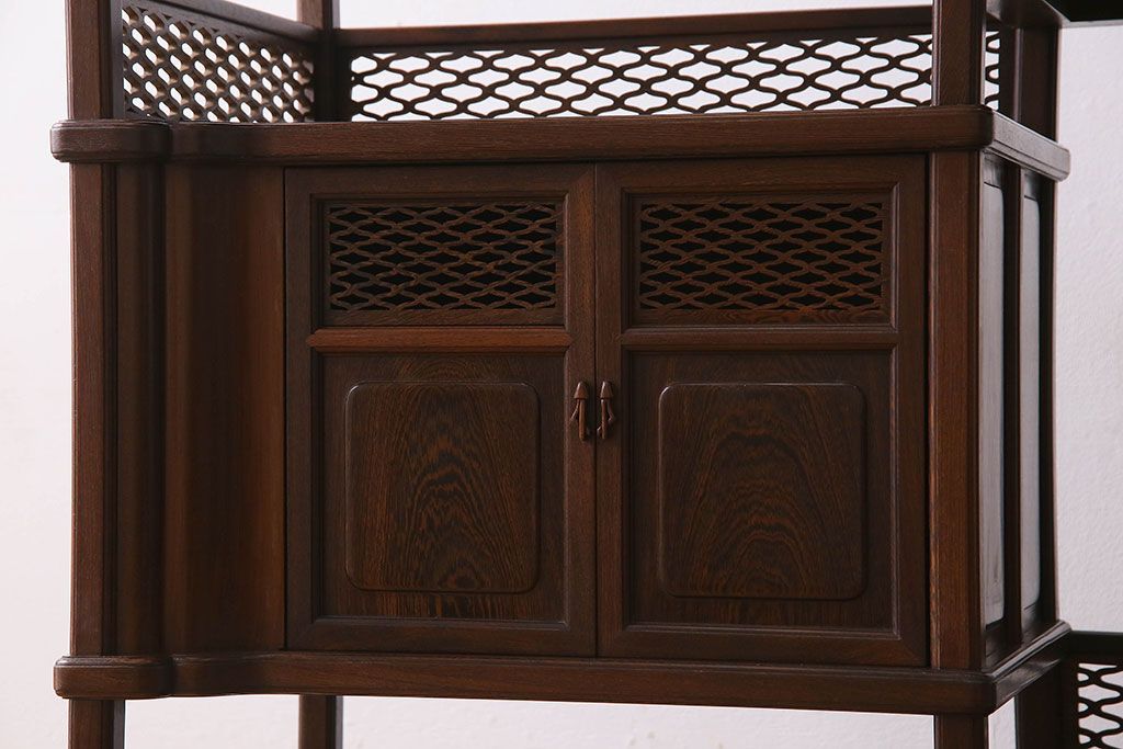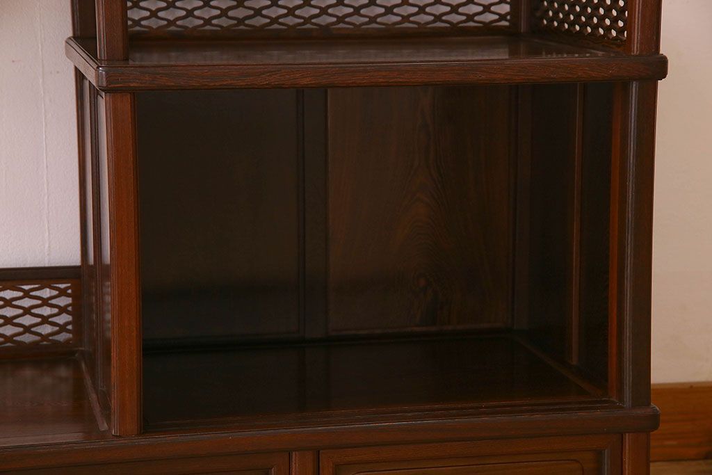民芸家具 高級品!鉄刀木(タガヤサン)材製の重厚感ある飾り棚(陳列棚)