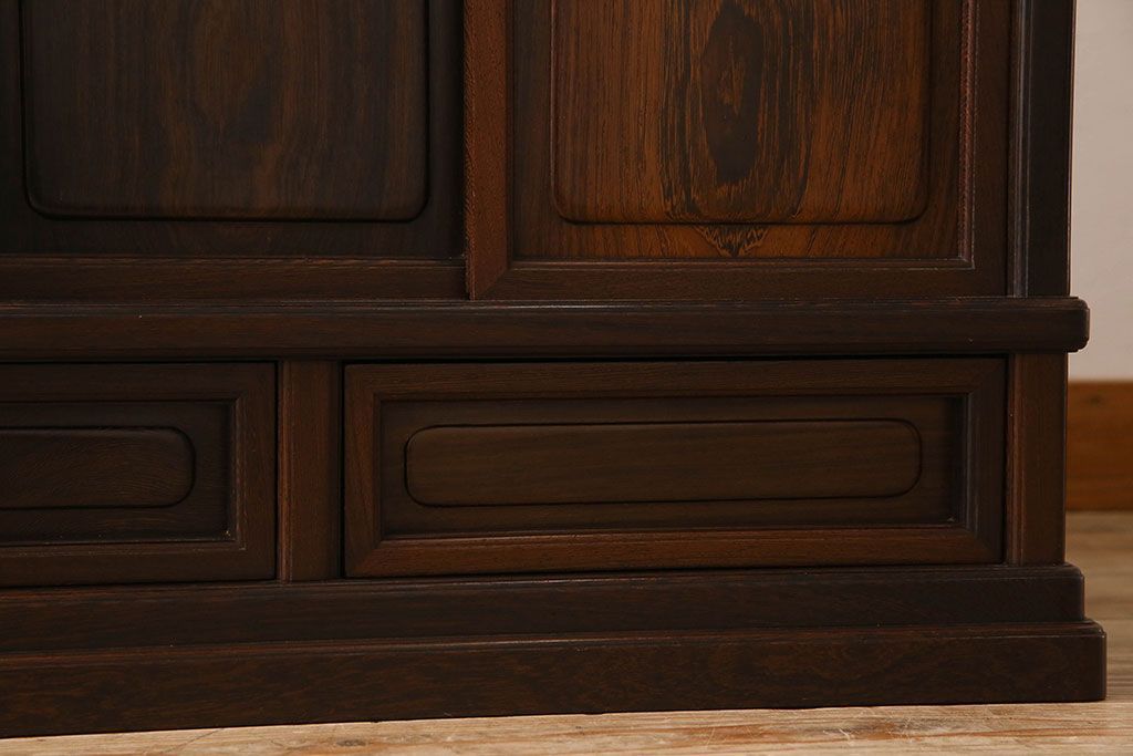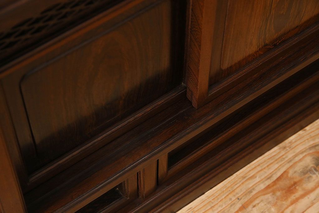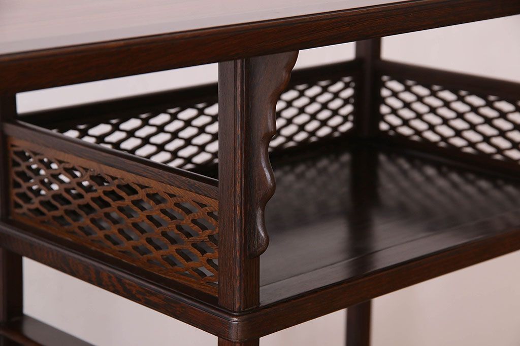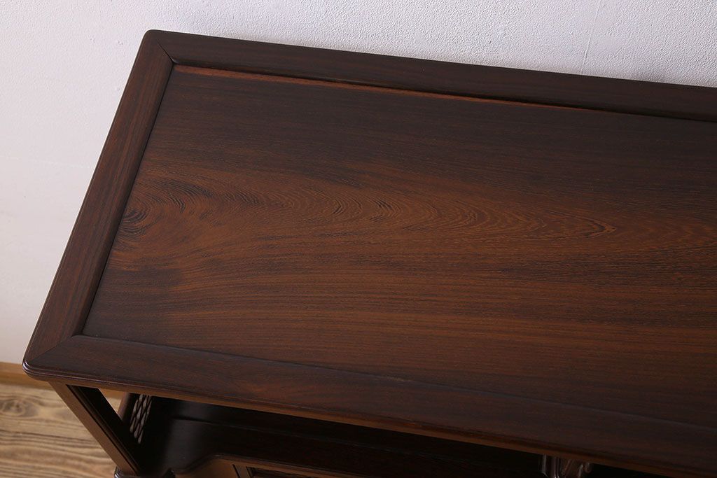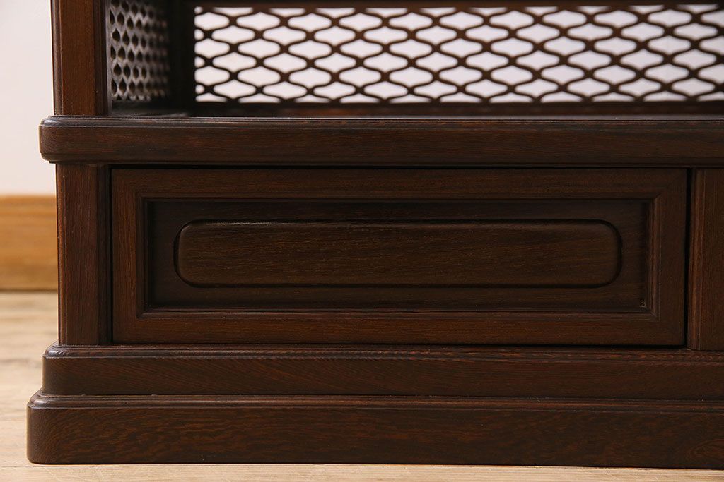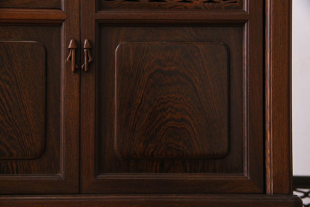 民芸家具 高級品!鉄刀木(タガヤサン)材製の重厚感ある飾り棚(陳列棚)