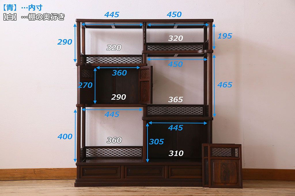 棚の内寸は5枚目の画像に詳しく記載しております。