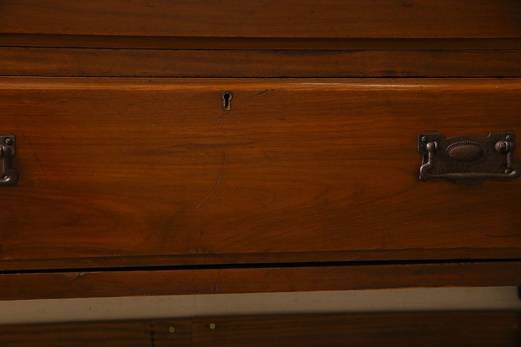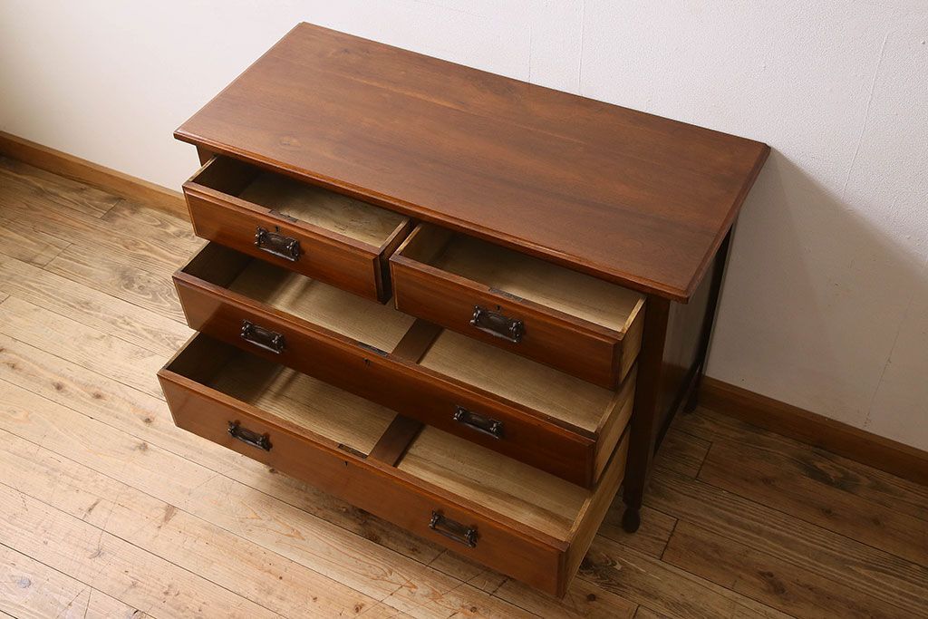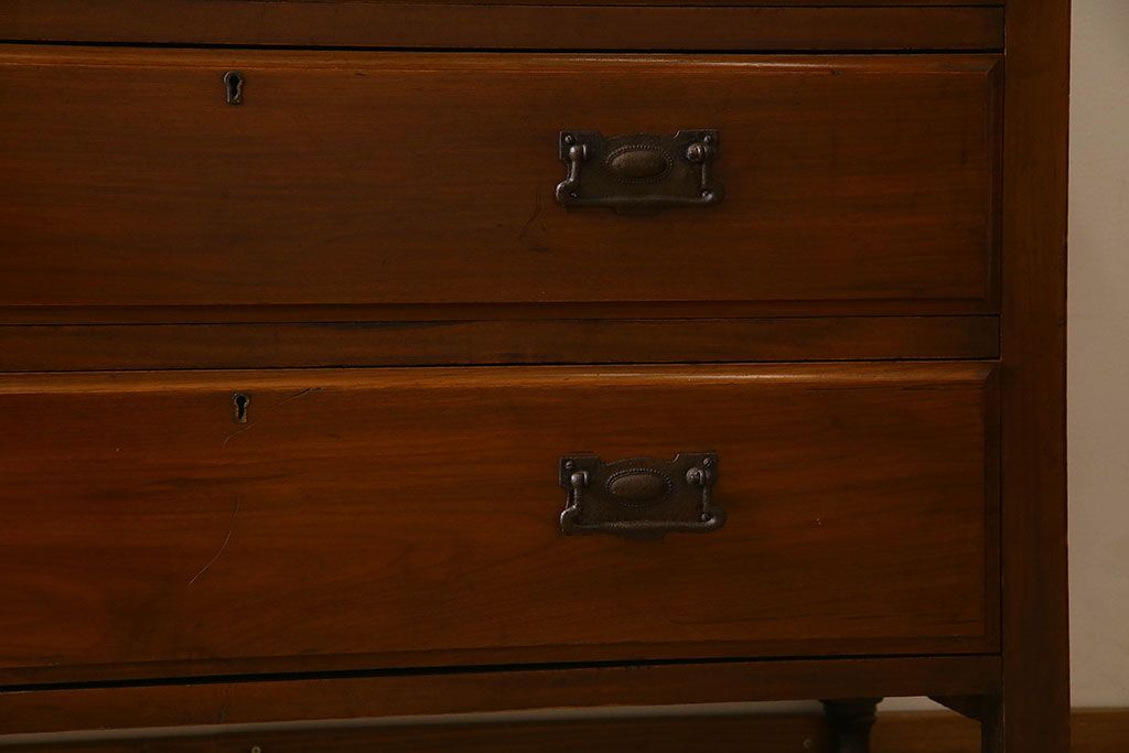 アンティーク家具 イギリスアンティーク ウォールナット材 お洒落な取っ手が素敵なチェスト(引き出し)
