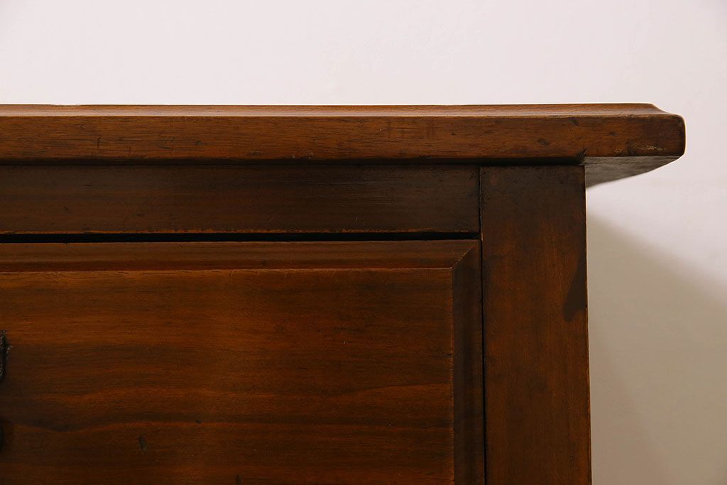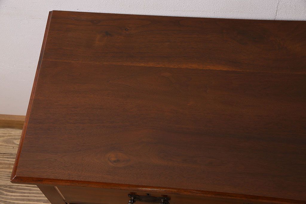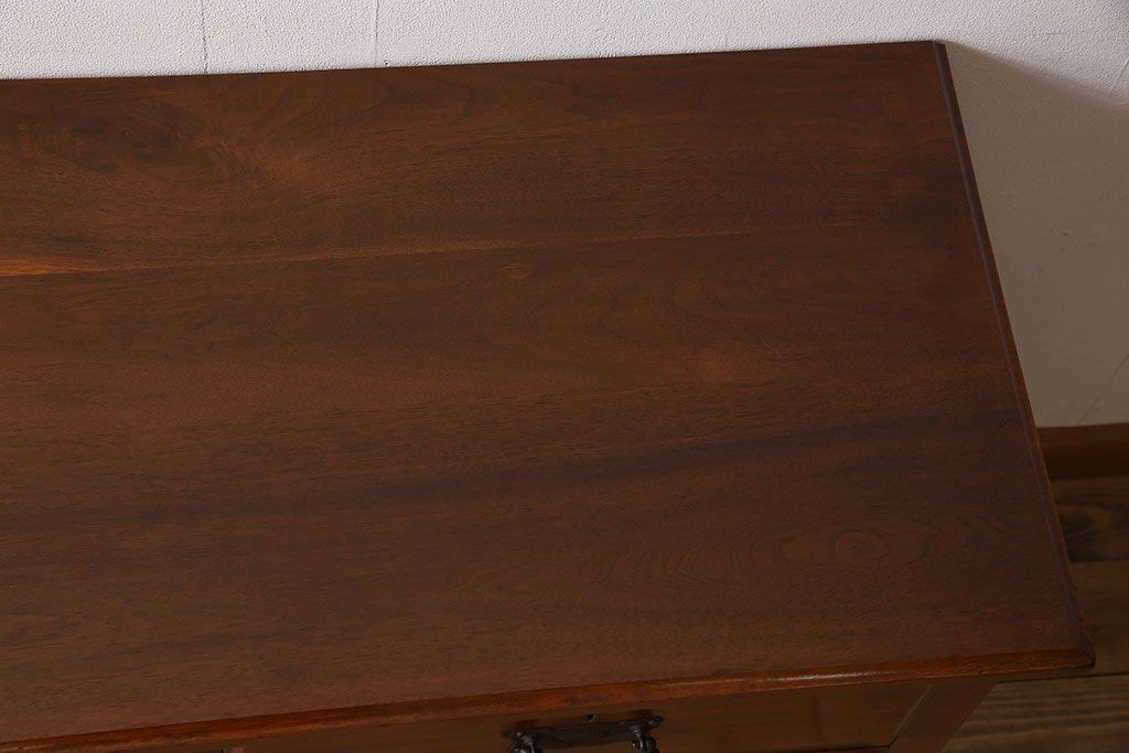 ラフジュ工房> チェスト・引き出し> ローチェスト > アンティーク家具 イギリスアンティーク ウォールナット材 お洒落な取っ手が素敵なチェスト(引き出し)
