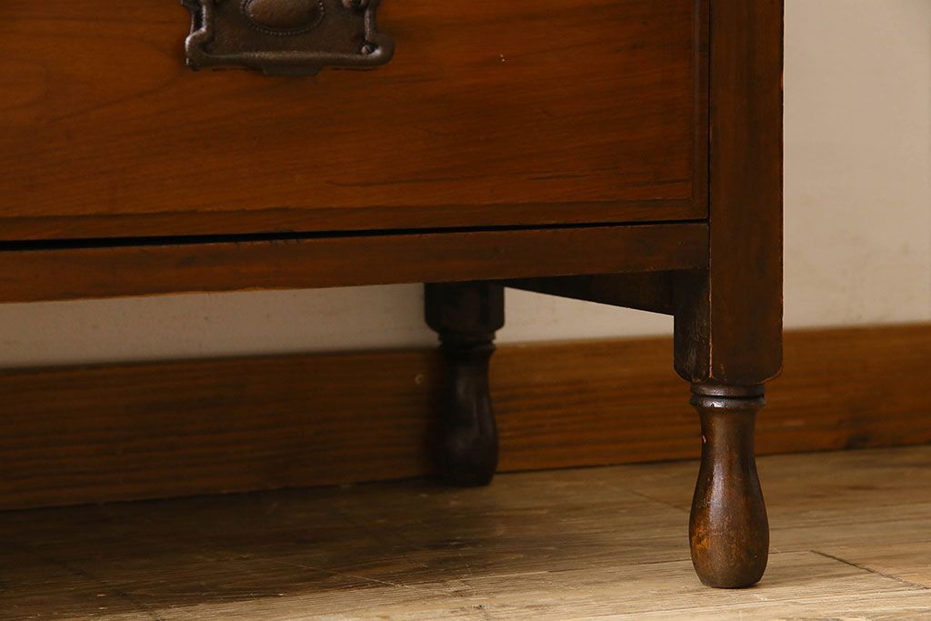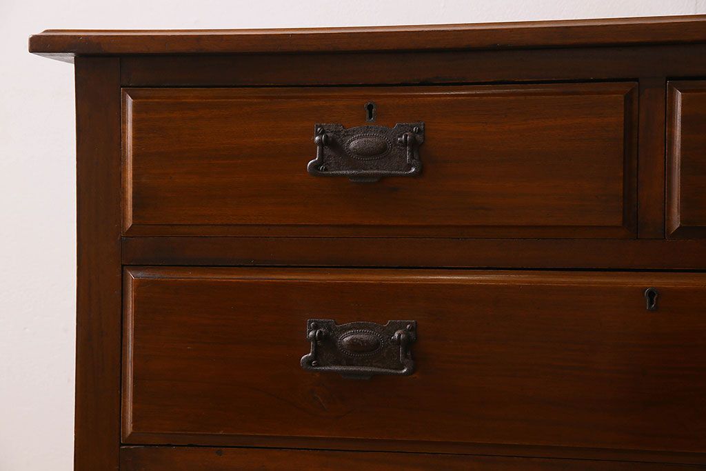 ラフジュ工房> チェスト・引き出し > アンティーク家具 イギリスアンティーク ウォールナット材 お洒落な取っ手が素敵なチェスト(引き出し)