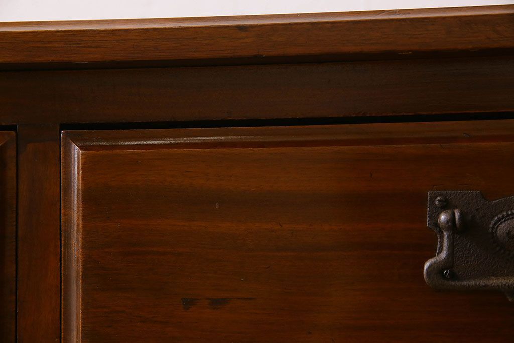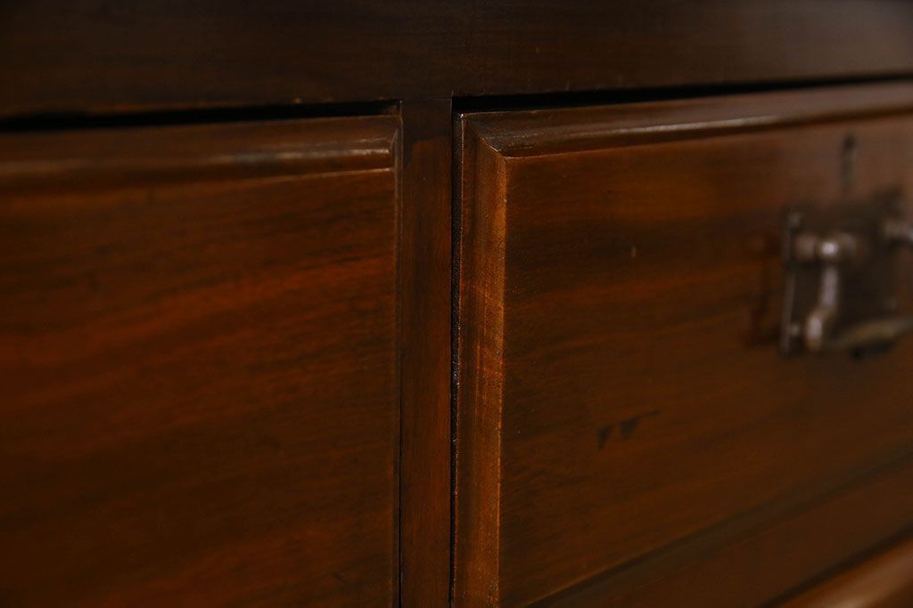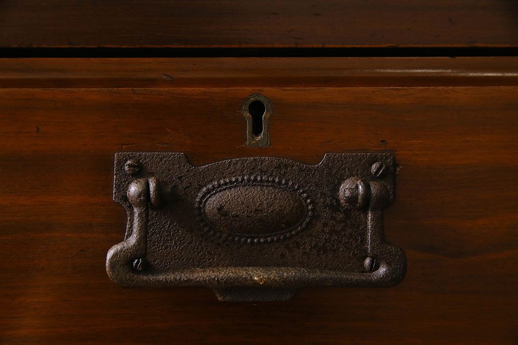 ラフジュ工房> キャビネット・戸棚> サイドボード > アンティーク家具 イギリスアンティーク ウォールナット材 お洒落な取っ手が素敵なチェスト(引き出し)