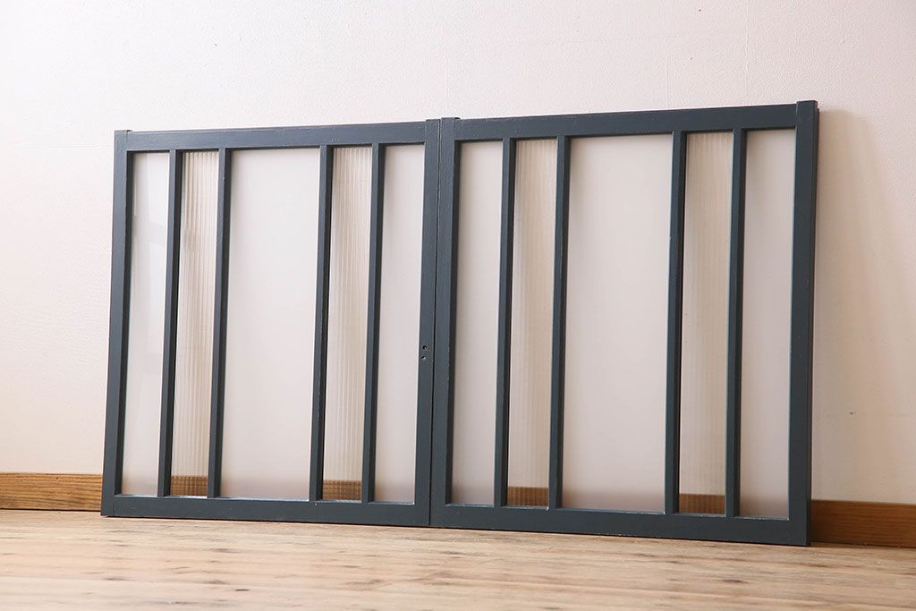 ペイント建具 すり・モールガラス入り!アンティークガラス戸2枚セット(窓)です。