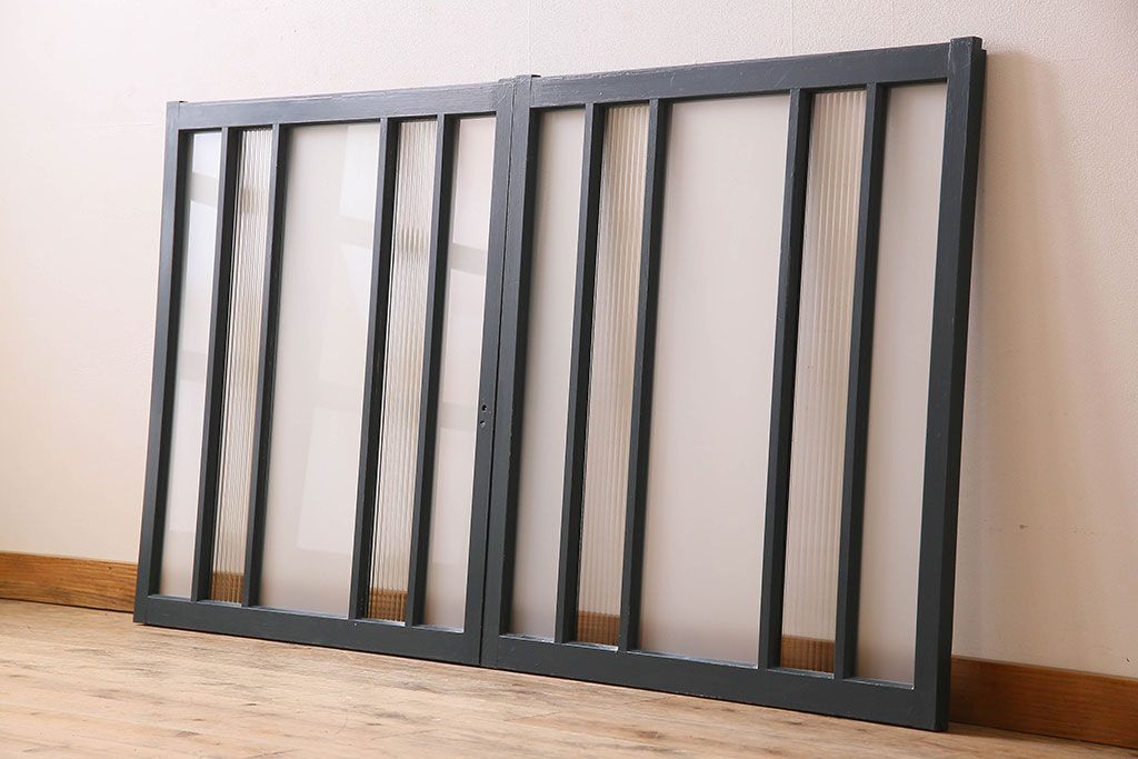 ペイント建具 すり・モールガラス入り!アンティークガラス戸2枚セット(窓)