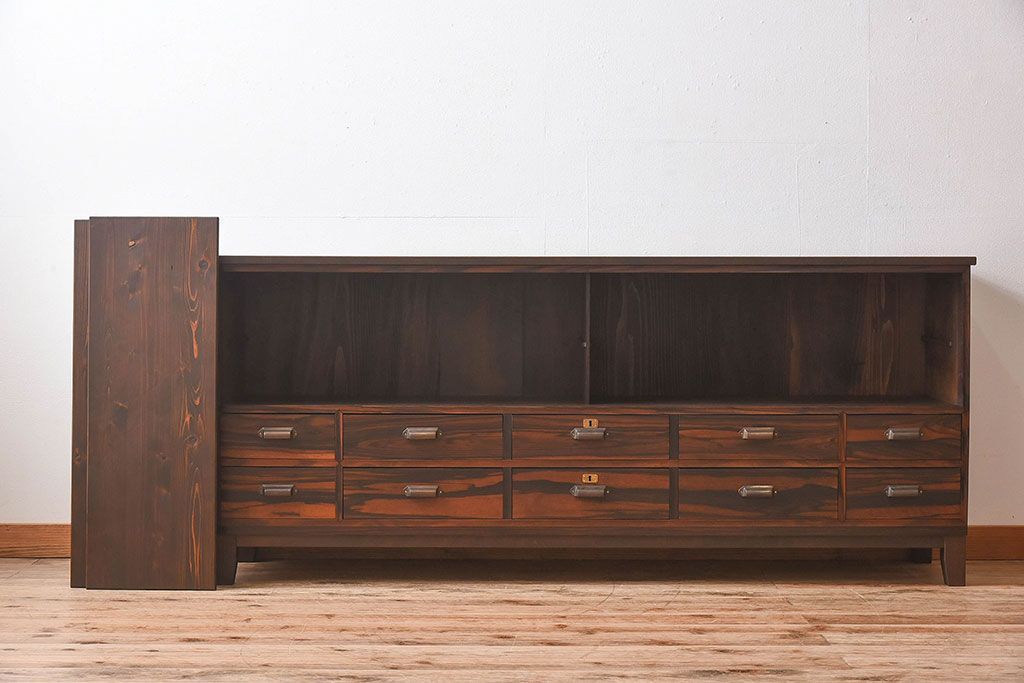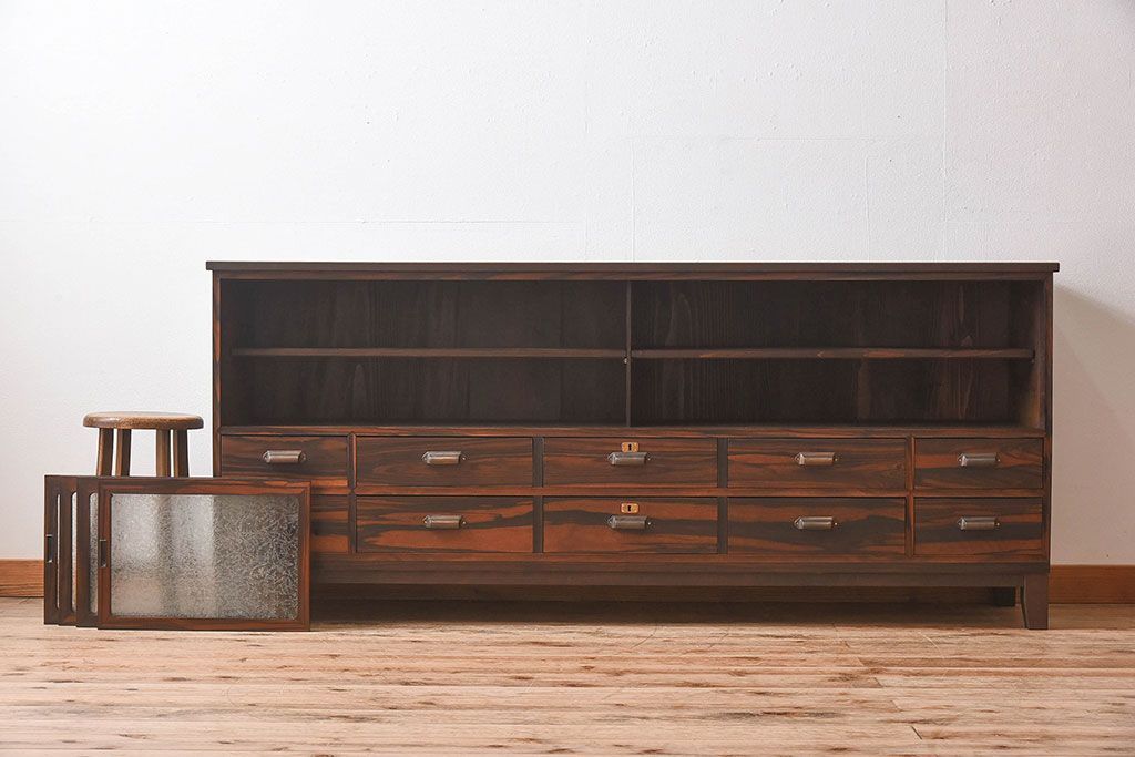昭和期の収納棚に天板と脚を取り付けてリメイクした、