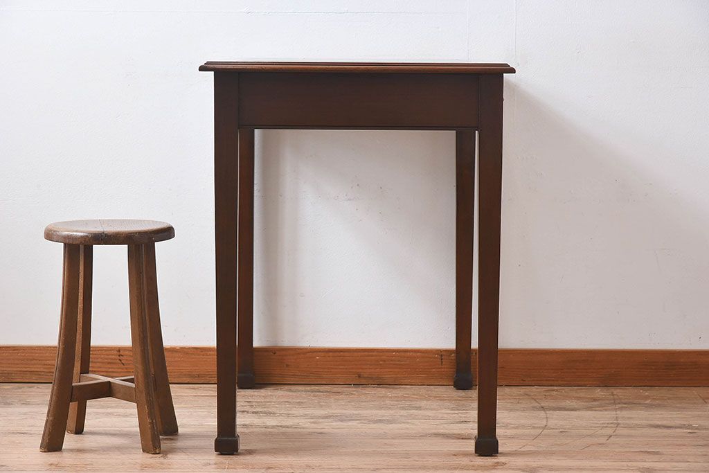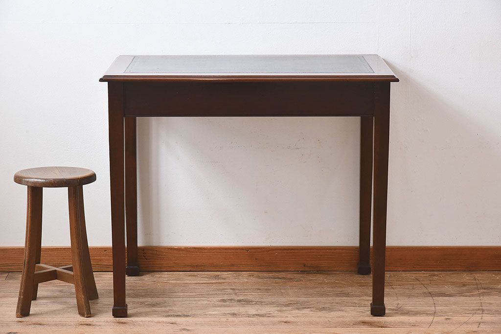 ラフジュ工房> デスク> 子供机 > アンティーク家具 イギリスアンティーク レザートップ 引き出し二杯付き!ウォールナット材の平机