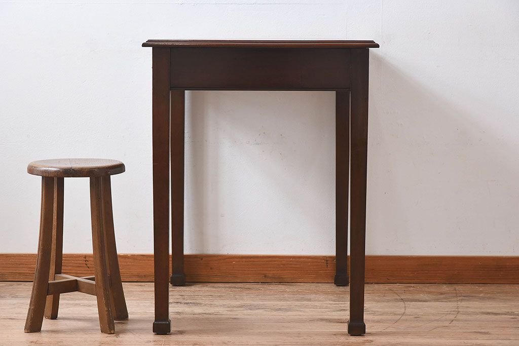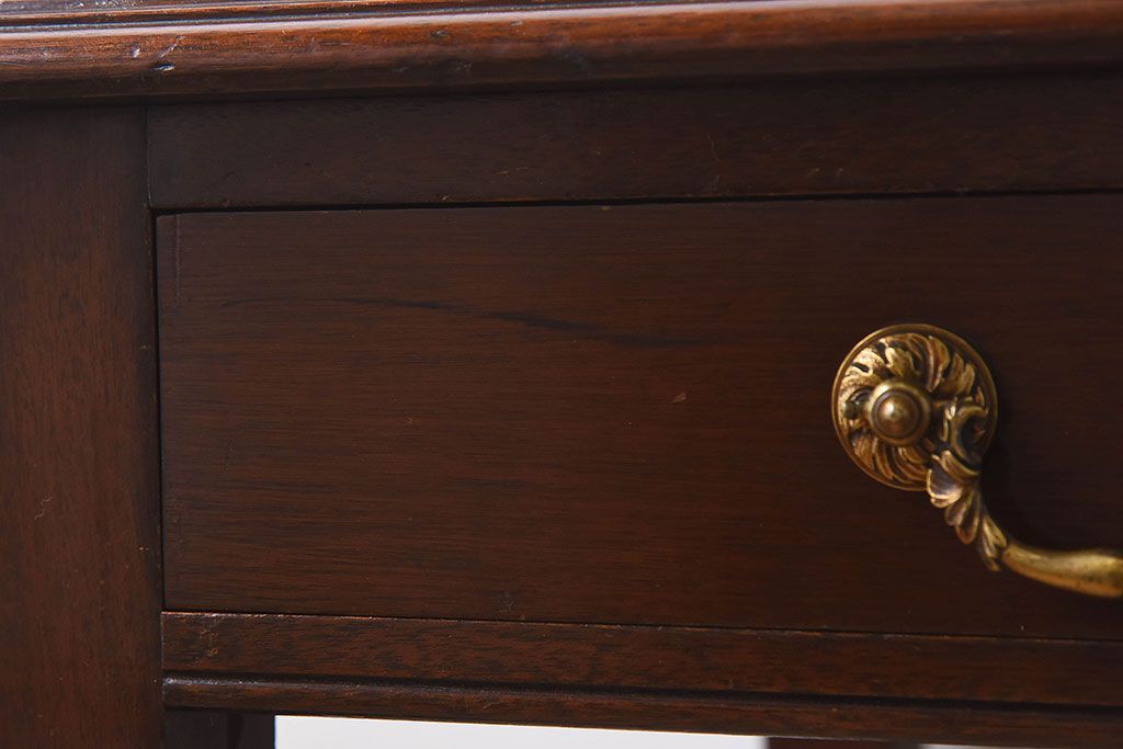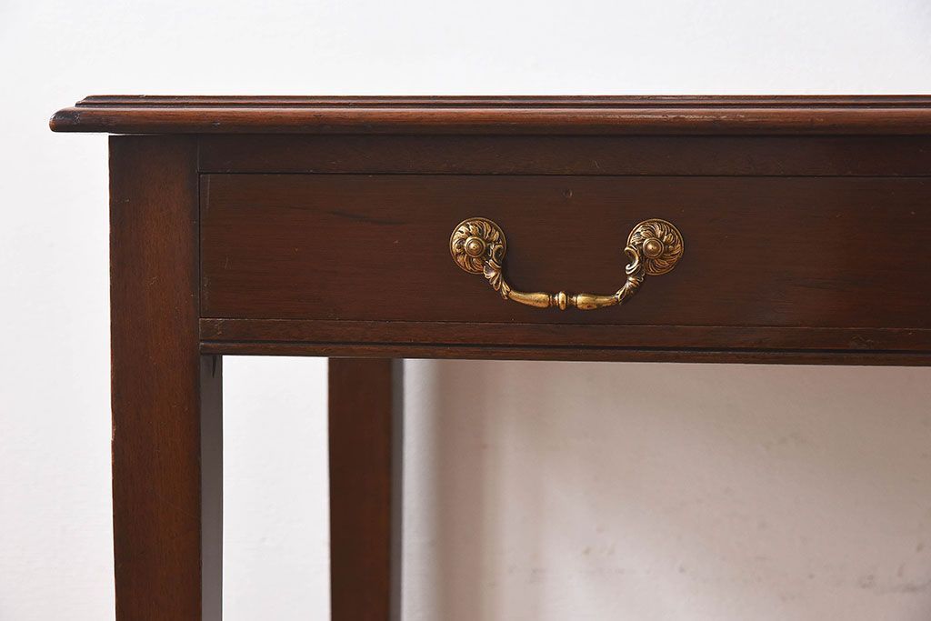 ラフジュ工房> テーブル> サイドテーブル > アンティーク家具 イギリスアンティーク レザートップ 引き出し二杯付き!ウォールナット材の平机