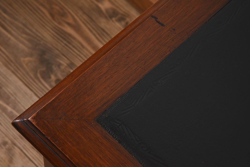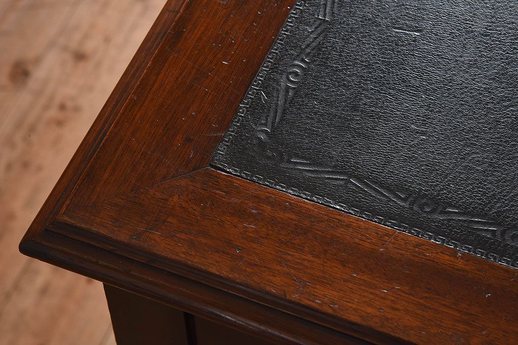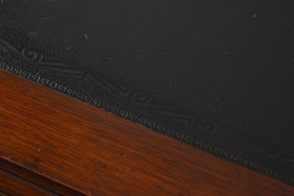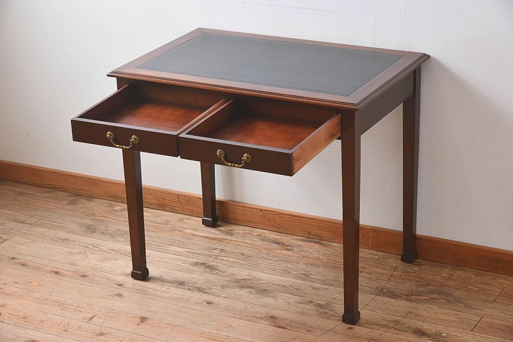 アンティーク家具 イギリスアンティーク レザートップ 引き出し二杯付き!ウォールナット材の平机