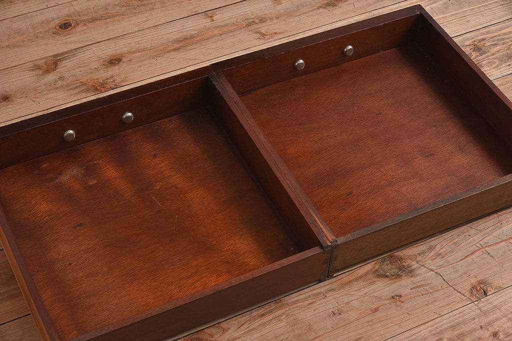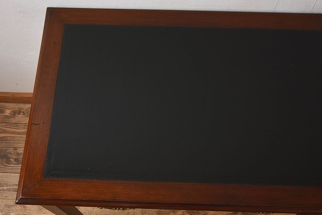 ラフジュ工房> デスク> 平机 > アンティーク家具 イギリスアンティーク レザートップ 引き出し二杯付き!ウォールナット材の平机