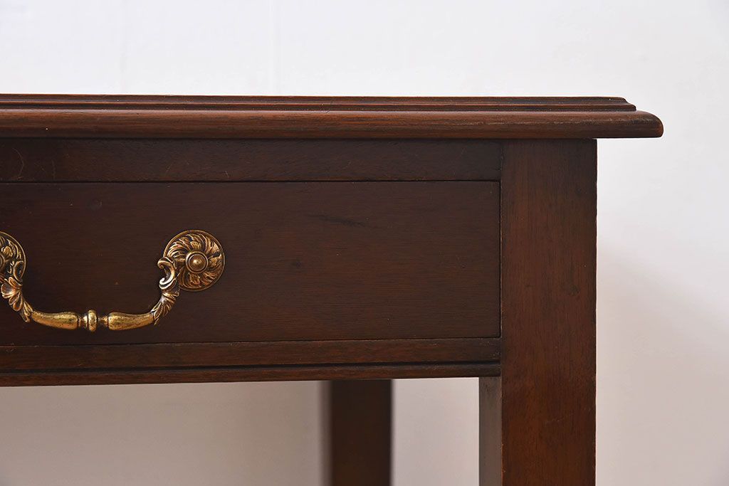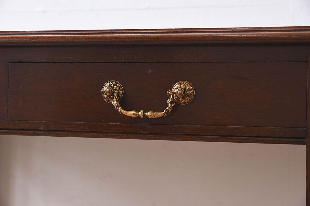 ラフジュ工房> デスク> ワークデスク > アンティーク家具 イギリスアンティーク レザートップ 引き出し二杯付き!ウォールナット材の平机