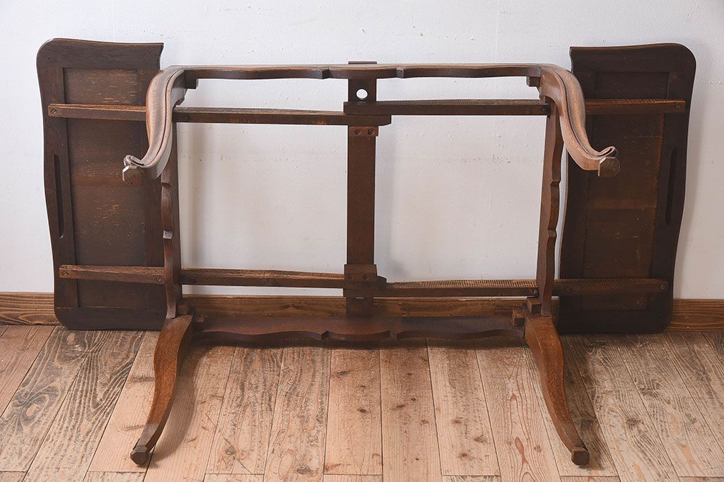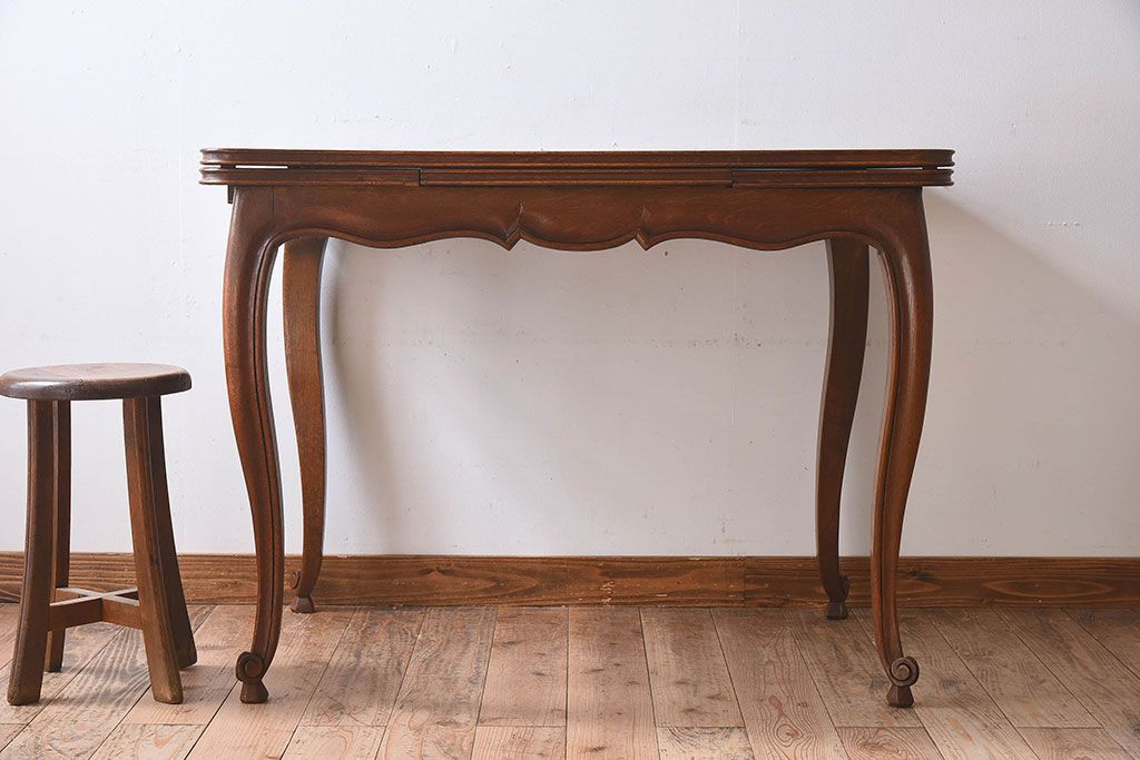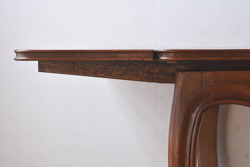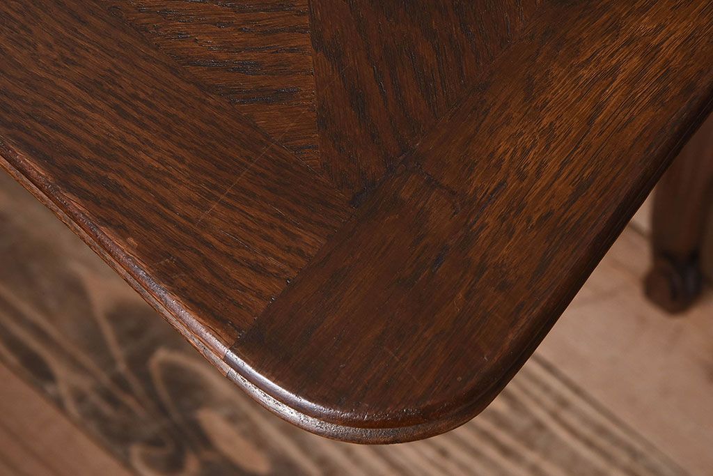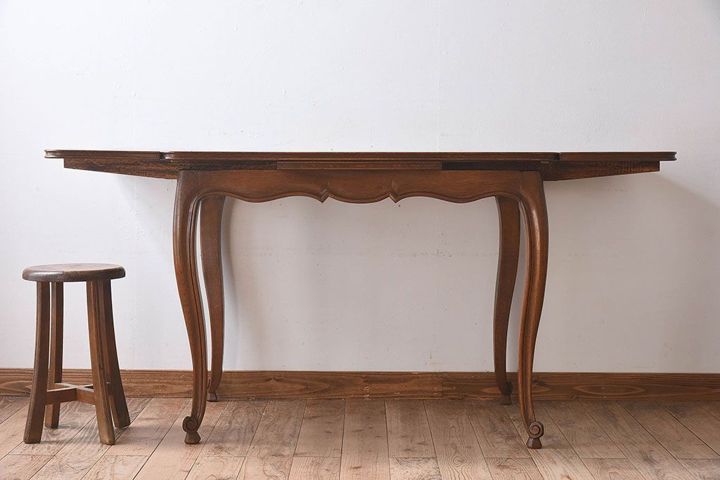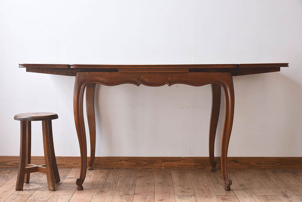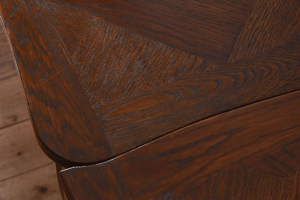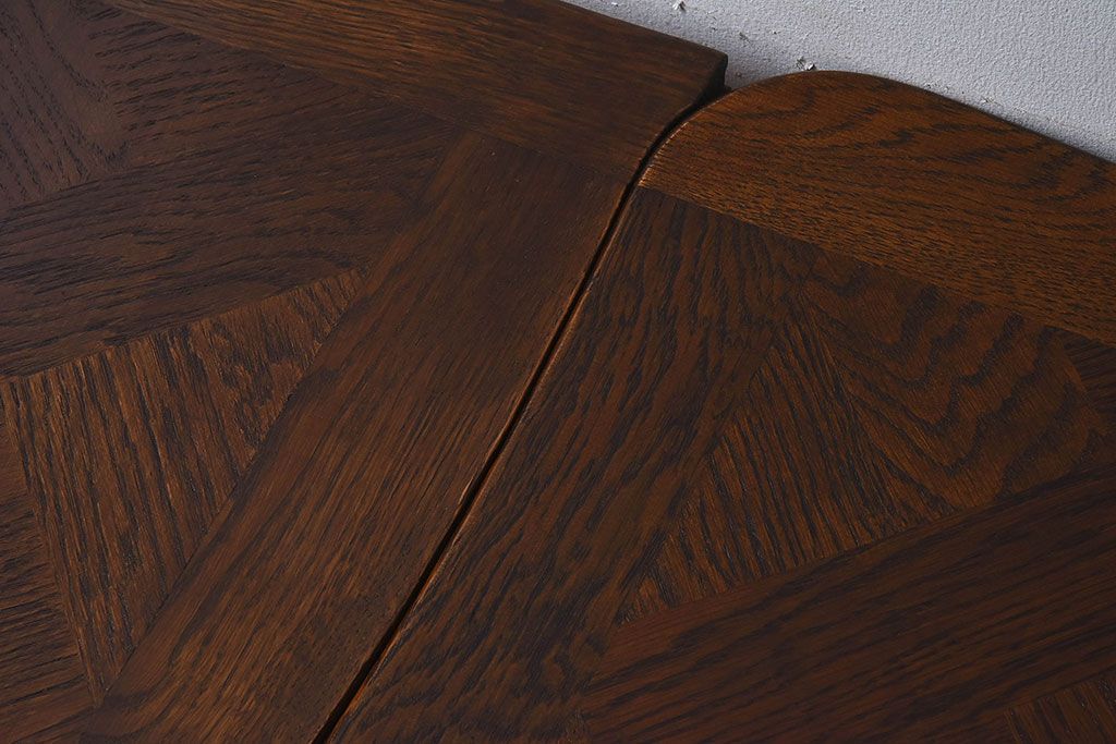 アンティーク家具 フランスアンティーク オーク材 パーケット天板と猫脚のデザインが素敵なエクステンションテーブル