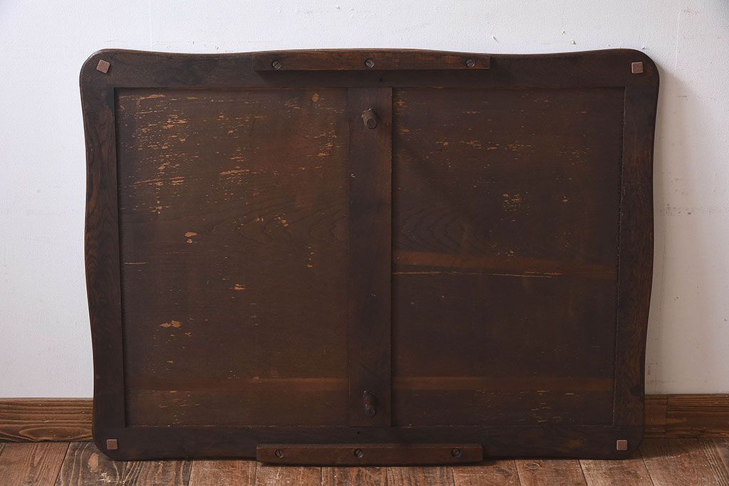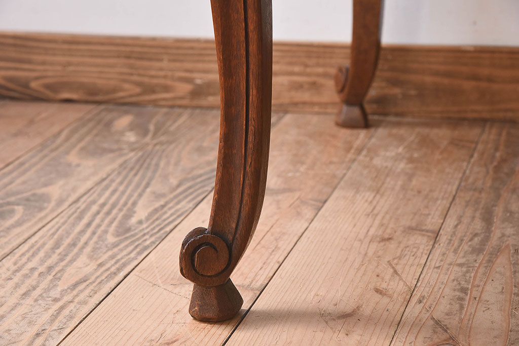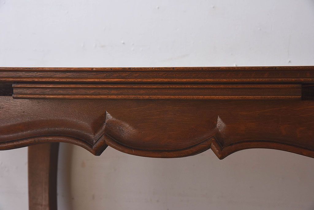 ラフジュ工房> テーブル> 作業台 > アンティーク家具 フランスアンティーク オーク材 パーケット天板と猫脚のデザインが素敵なエクステンションテーブル