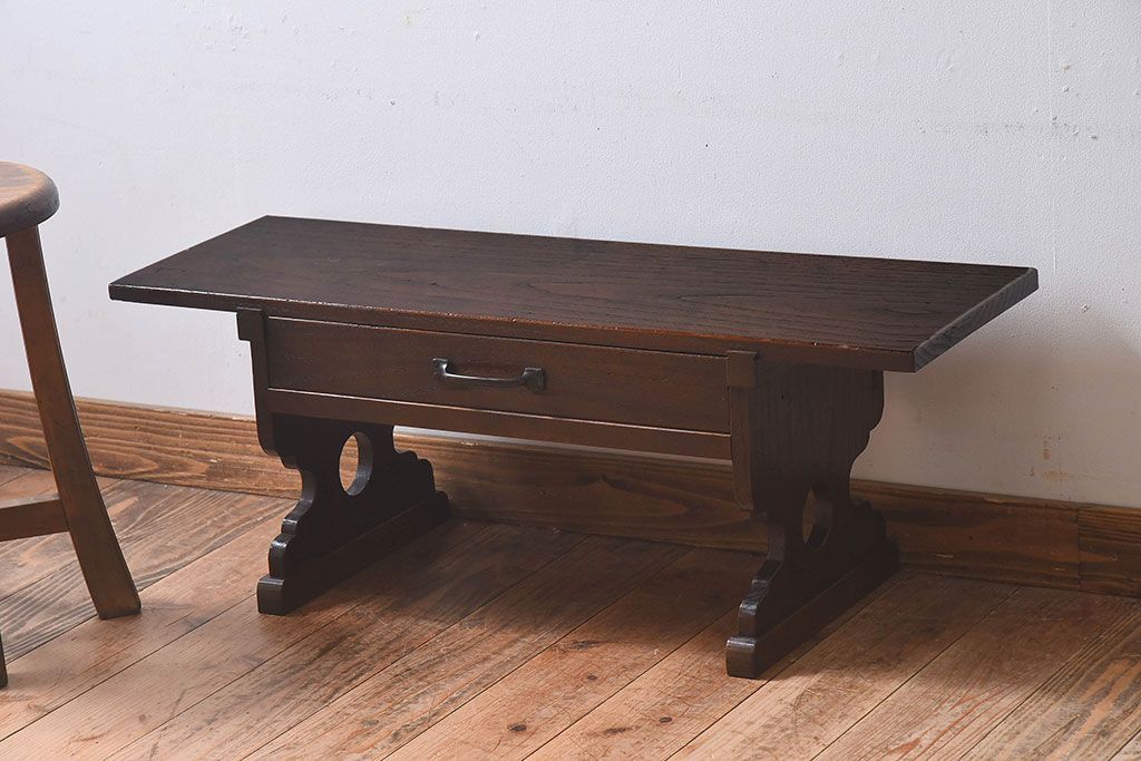和製アンティーク 栗材一枚板!表情豊かな木目が素敵な文机です。