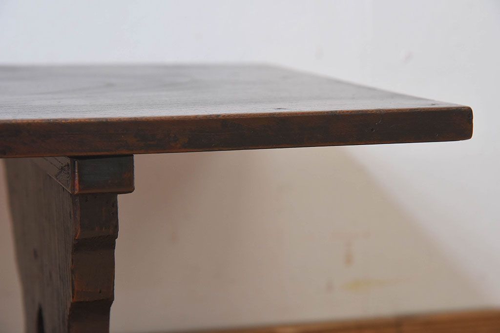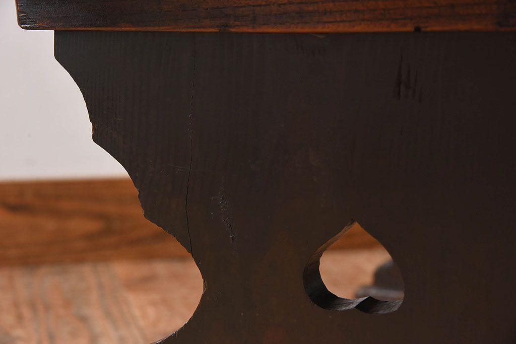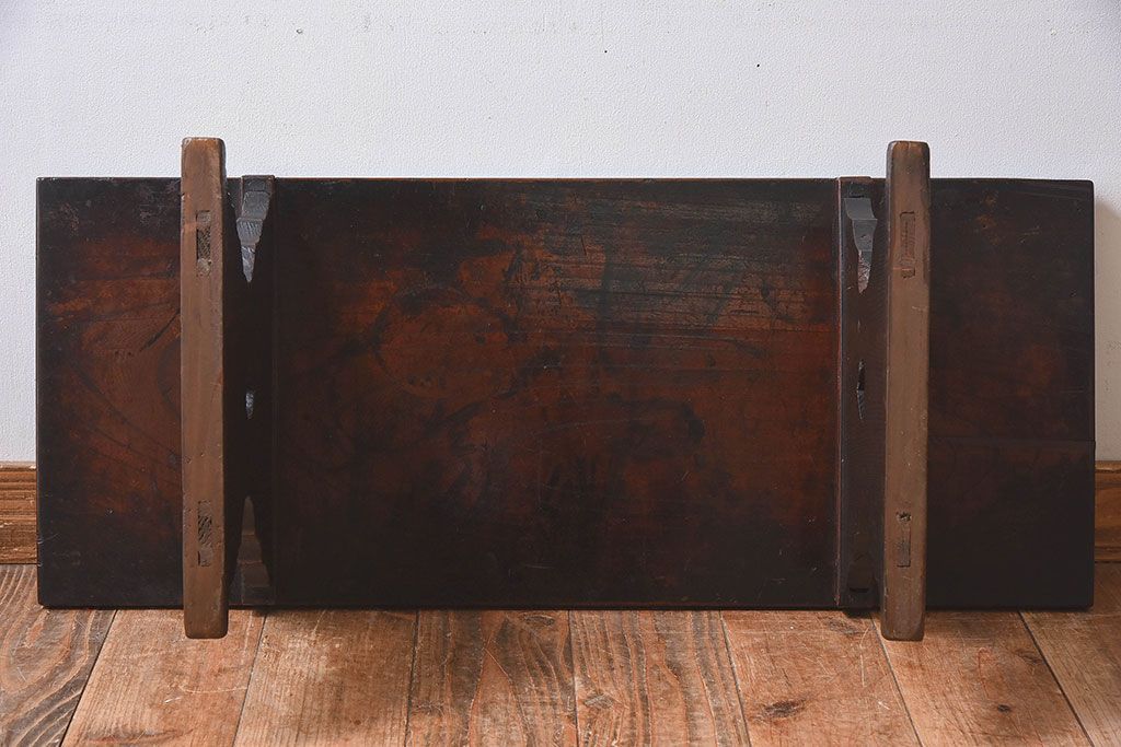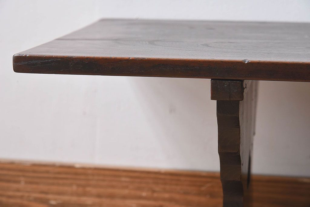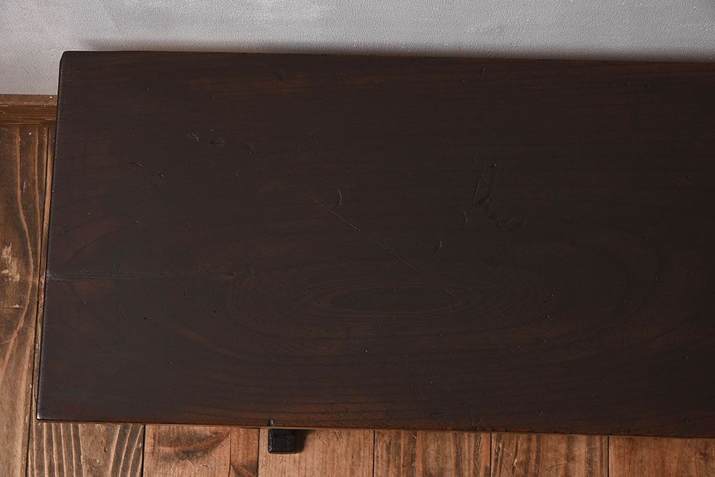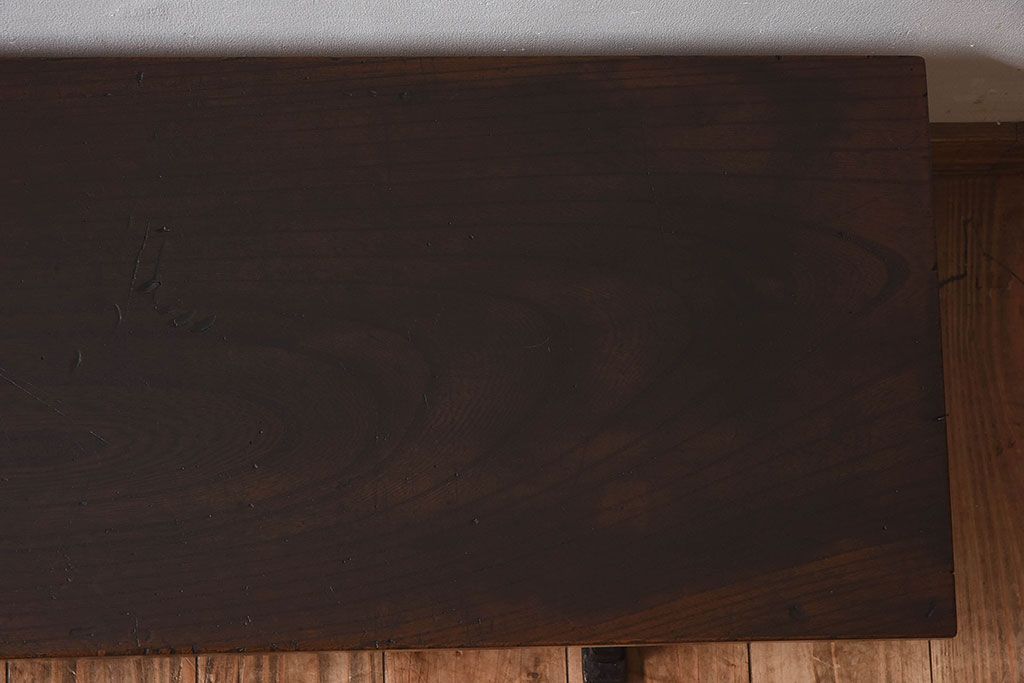 アンティーク雑貨 総ケヤキ材 天板一枚板!古い木の質感が味わい深い文机(1)