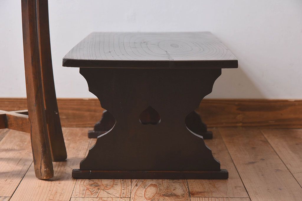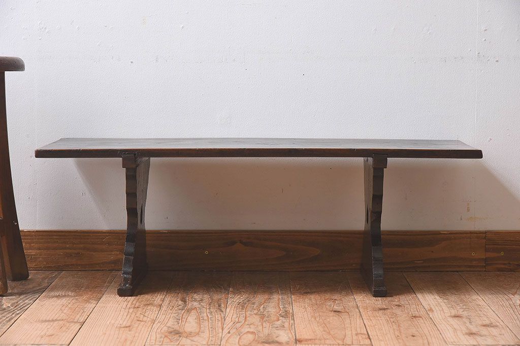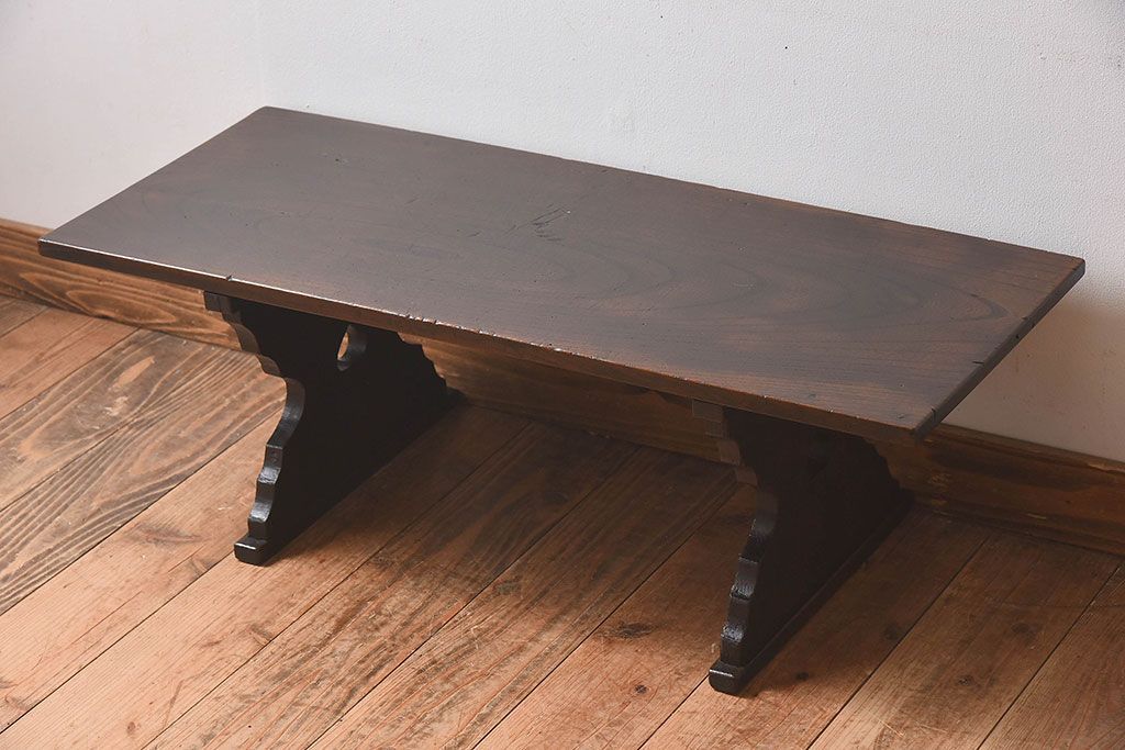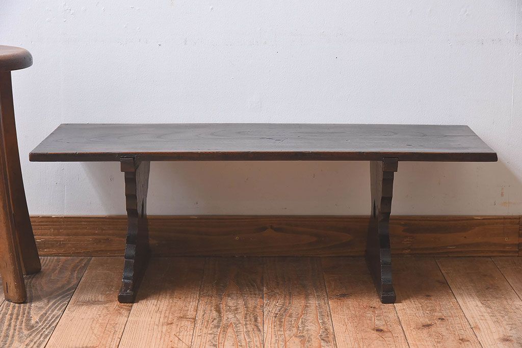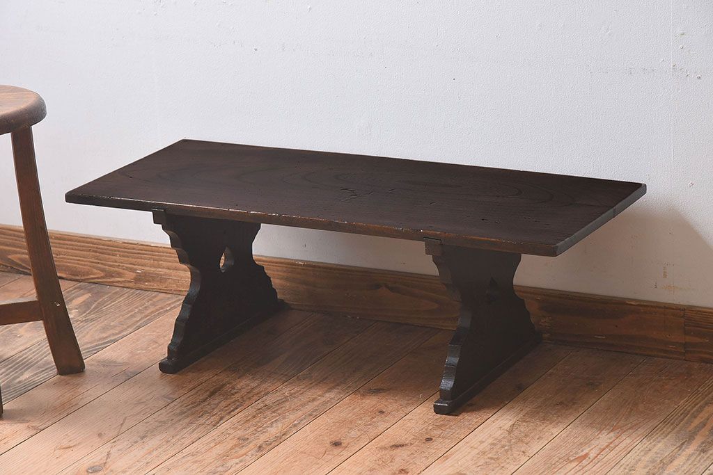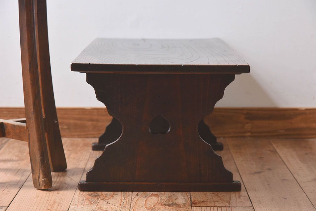 アンティーク雑貨 総ケヤキ材 天板一枚板!古い木の質感が味わい深い文机(1)
