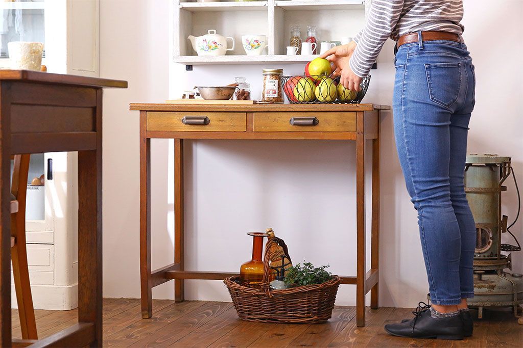 ラフジュ工房> テーブル> 作業台 > レトロ家具 昭和レトロ 栓材 使い勝手の良い小振りな平机(コンソールテーブル)