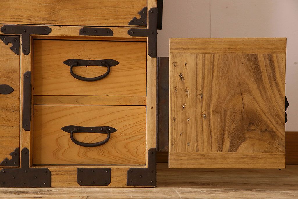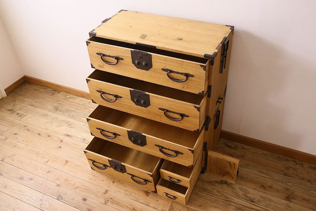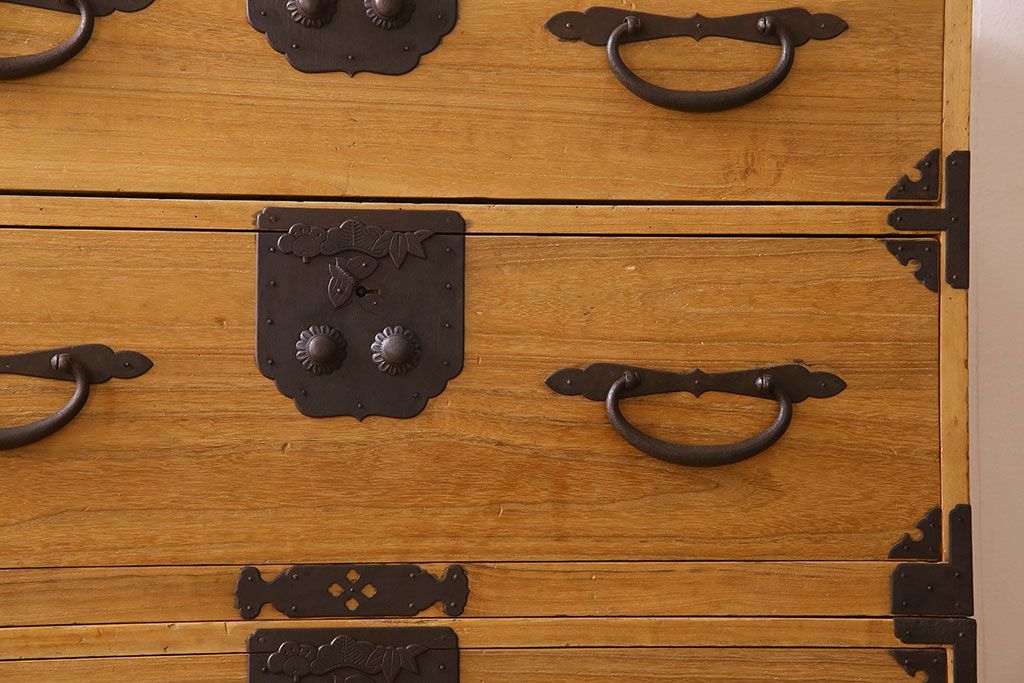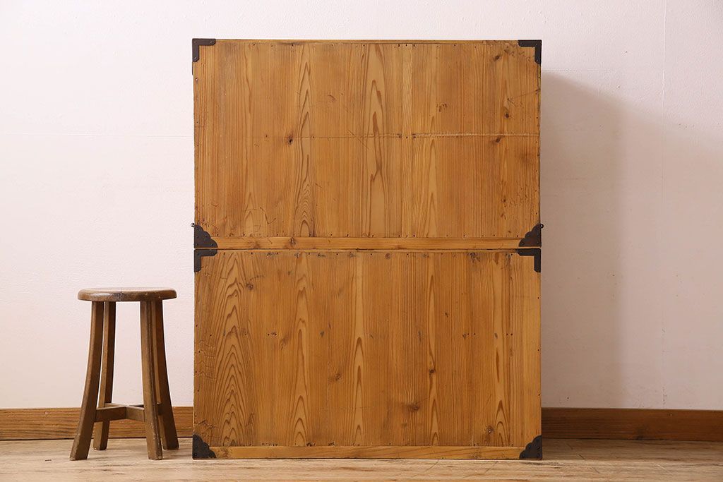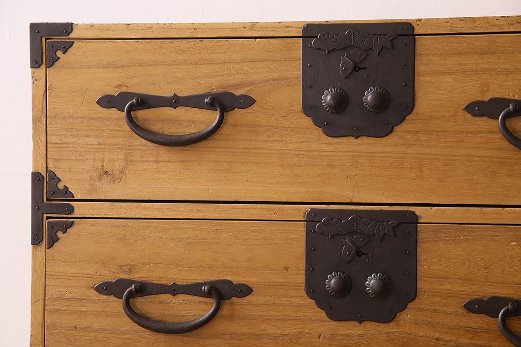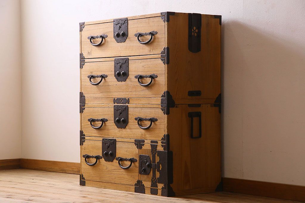 ラフジュ工房> 和箪笥 > アンティーク家具 和製アンティーク 前面桐材の小振りな重ね二本松箪笥(衣装箪笥、桐箪笥、桐たんす)