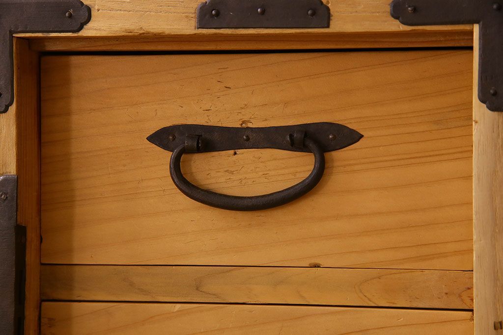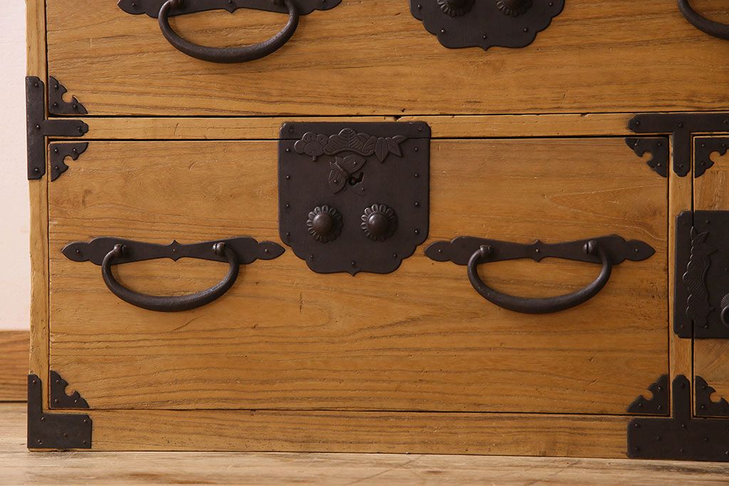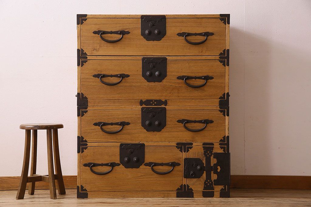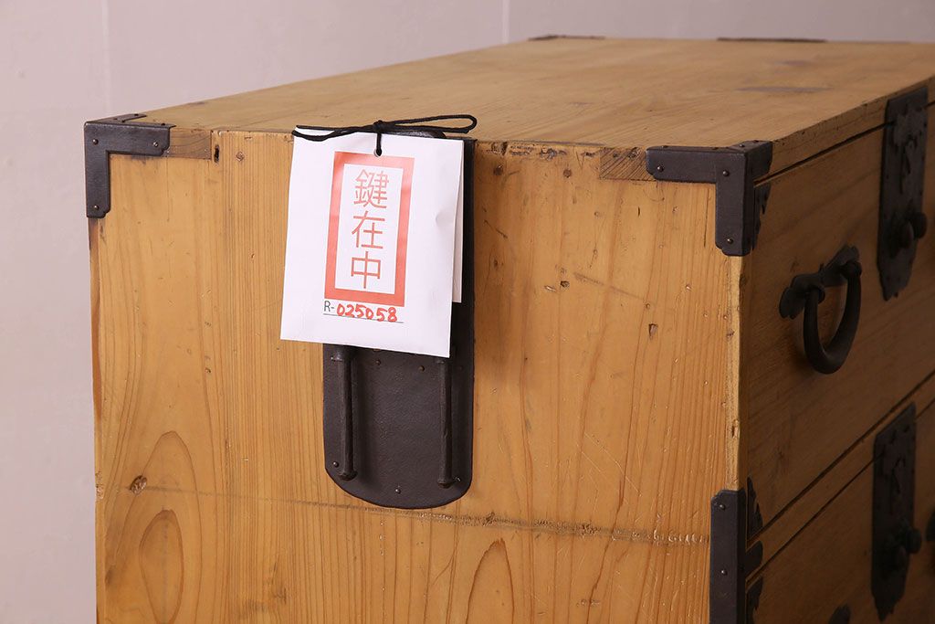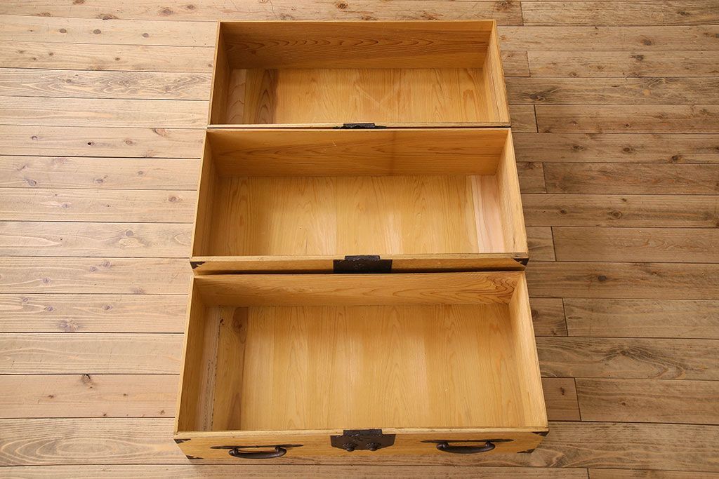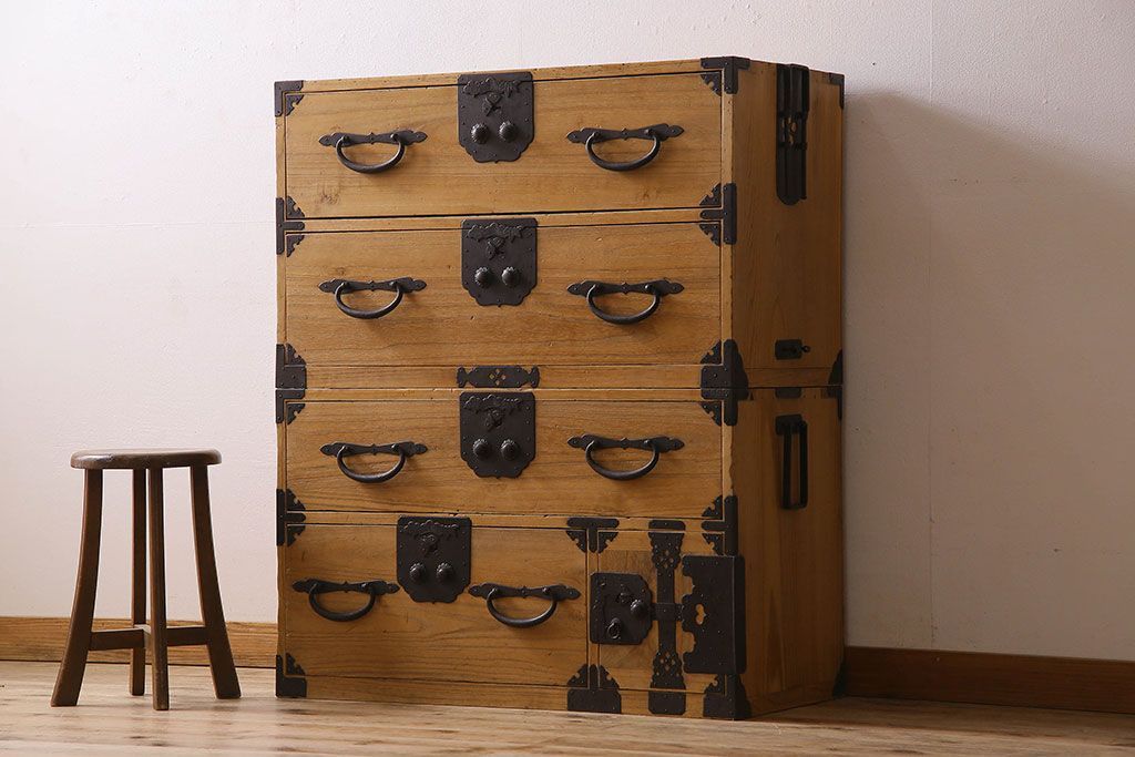 ラフジュ工房> 和箪笥 > アンティーク家具 和製アンティーク 前面桐材の小振りな重ね二本松箪笥(衣装箪笥、桐箪笥、桐たんす)