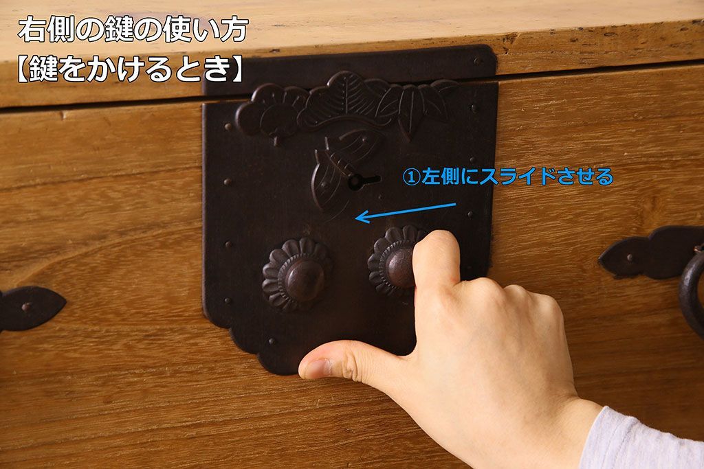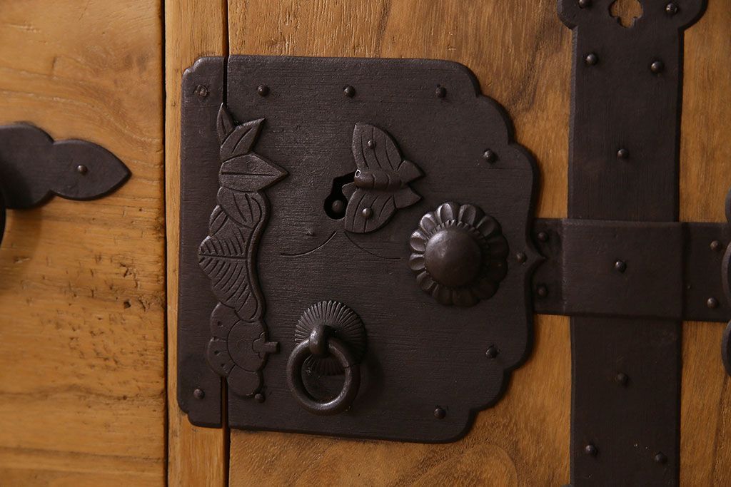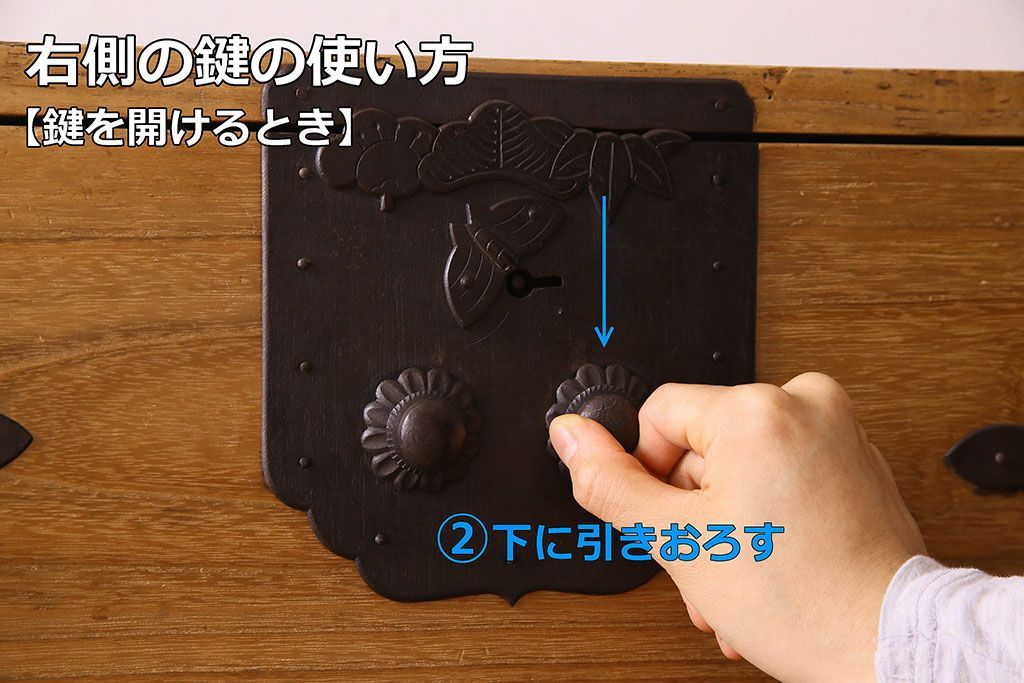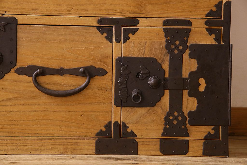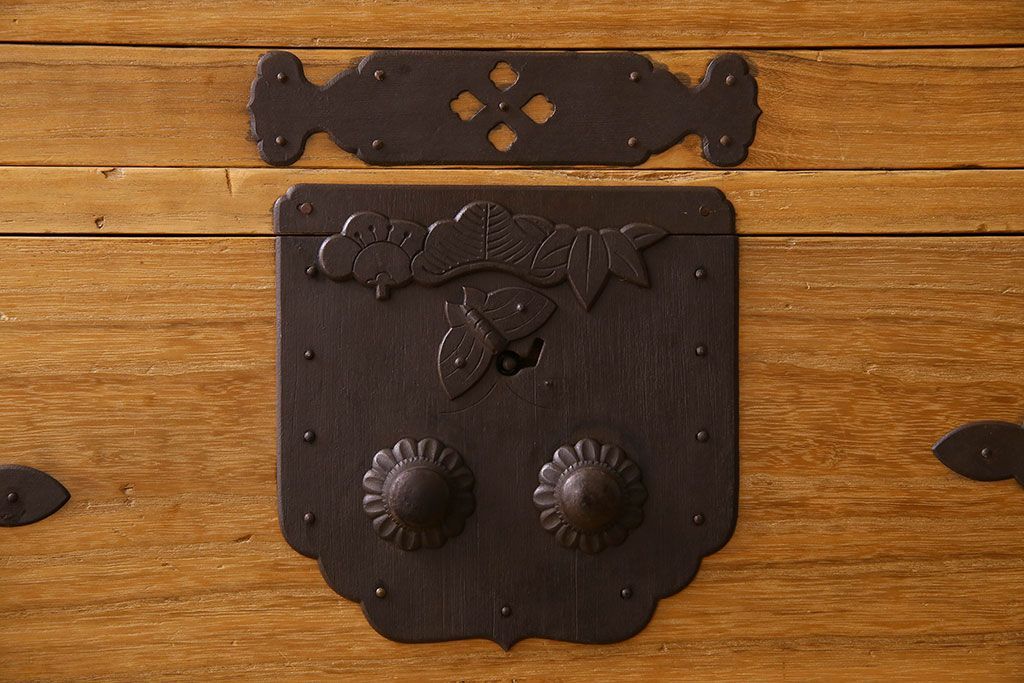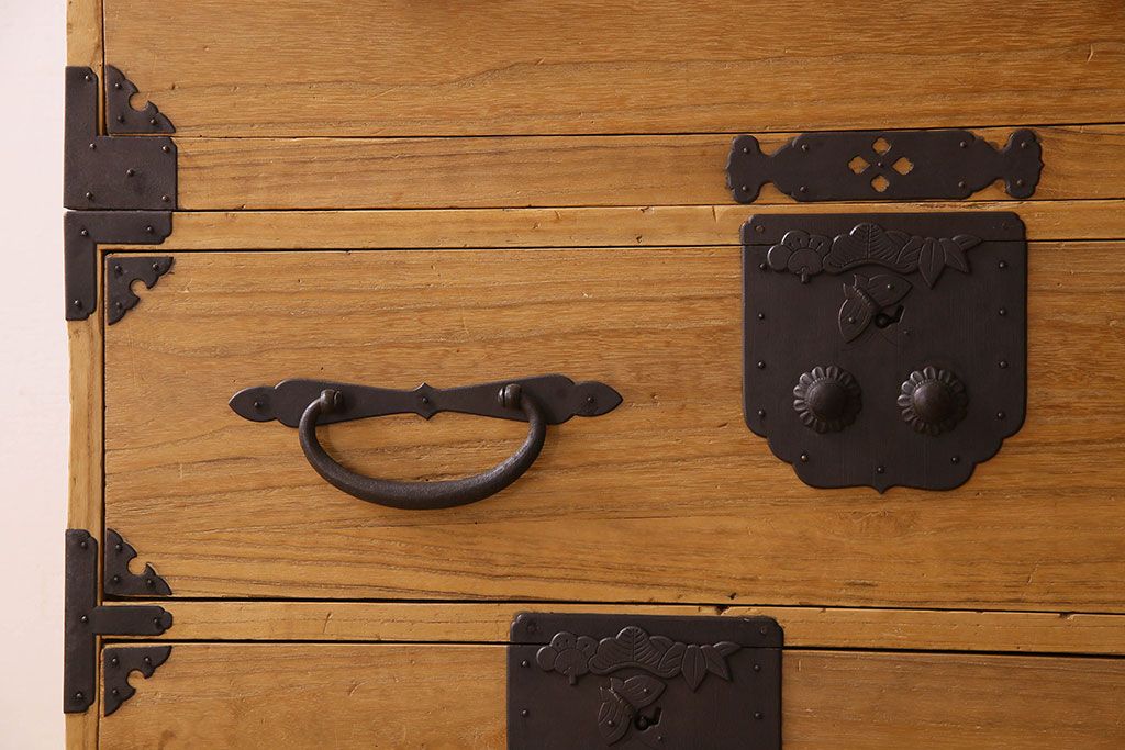 ラフジュ工房> 和箪笥 > アンティーク家具 和製アンティーク 前面桐材の小振りな重ね二本松箪笥(衣装箪笥、桐箪笥、桐たんす)