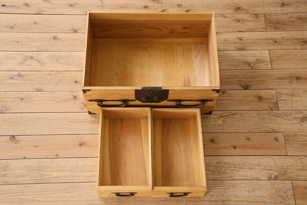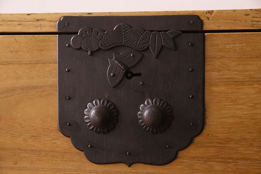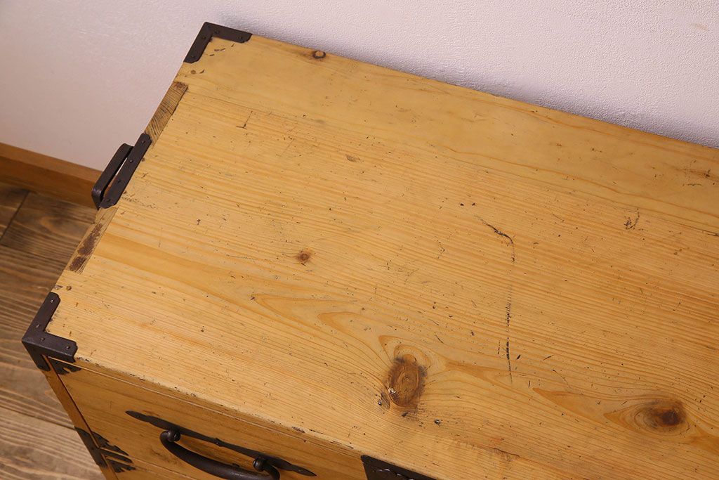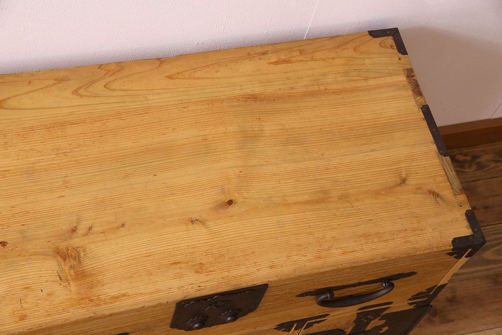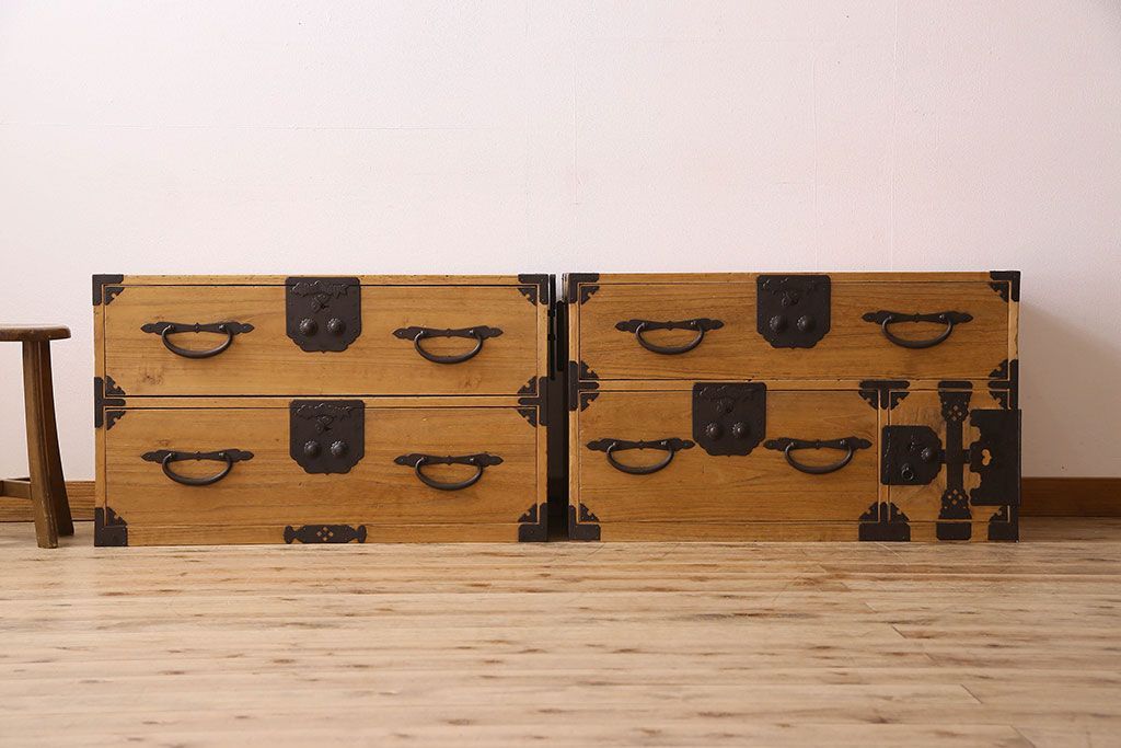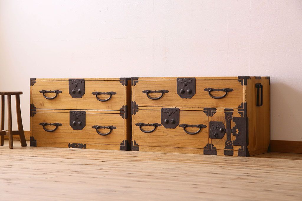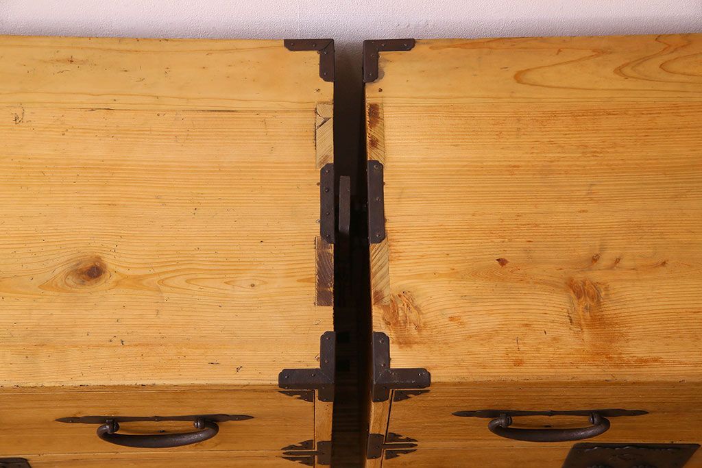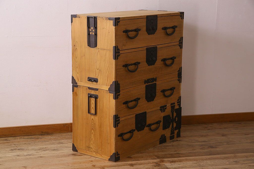 アンティーク家具 和製アンティーク 前面桐材の小振りな重ね二本松箪笥(衣装箪笥、桐箪笥、桐たんす)